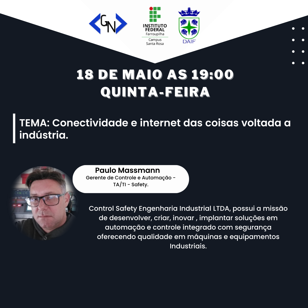 Quinta, 18/05: Paulo Massmann - Conectividade e internet das coisas voltada à indústria.