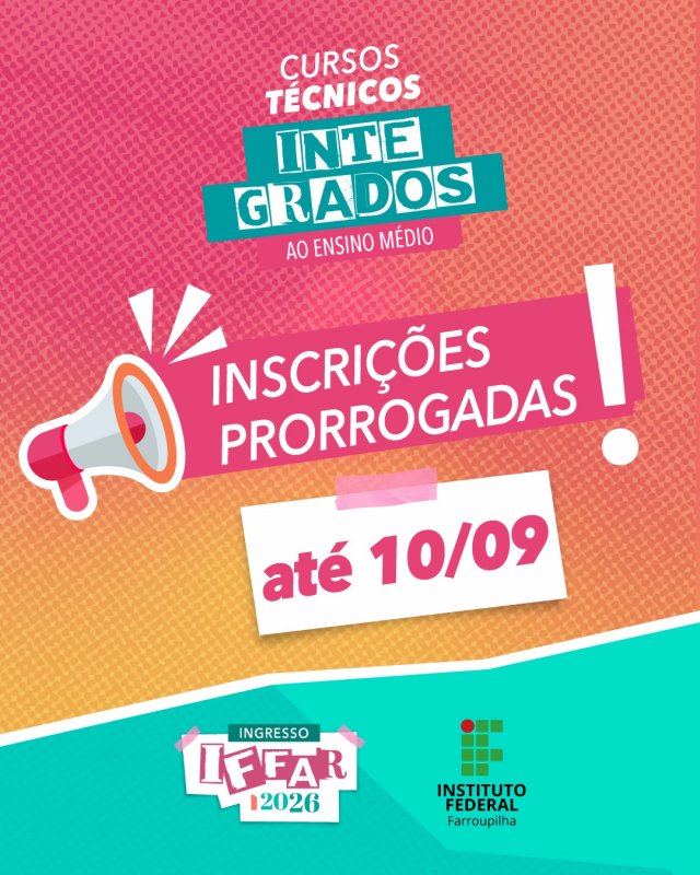 Mais uma chance para se inscrever no Processo Seletivo 2026 dos Cursos Técnicos Integrados do IFFar: as inscrições foram prorrogadas até quarta-feira, 10 de setembro