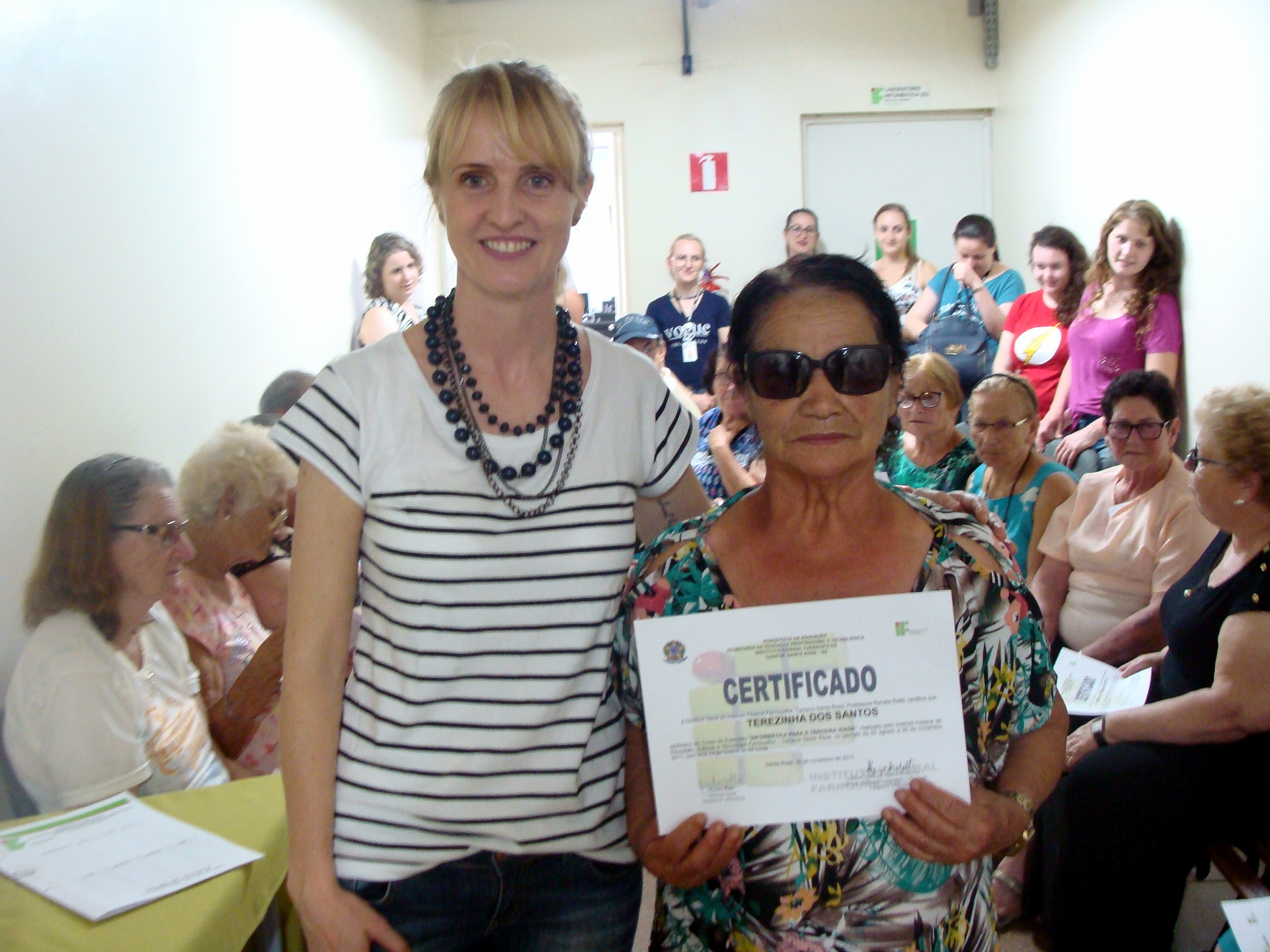 Os certificados foram entregues durante o coquetel que contou com a presença da diretora-geral do IFFar – Campus Santa Rosa, Renata Rotta, da diretora de Pesquisa, Extensão e Produção, Adriana Michelotti, do coordenador de Proteção Social Especial do município, Eduardo Richter, da psicóloga, Tailene C. P. Bonotto e da Assistente Social, Scheila Adriani Richter, ambas vinculadas ao CRAS.