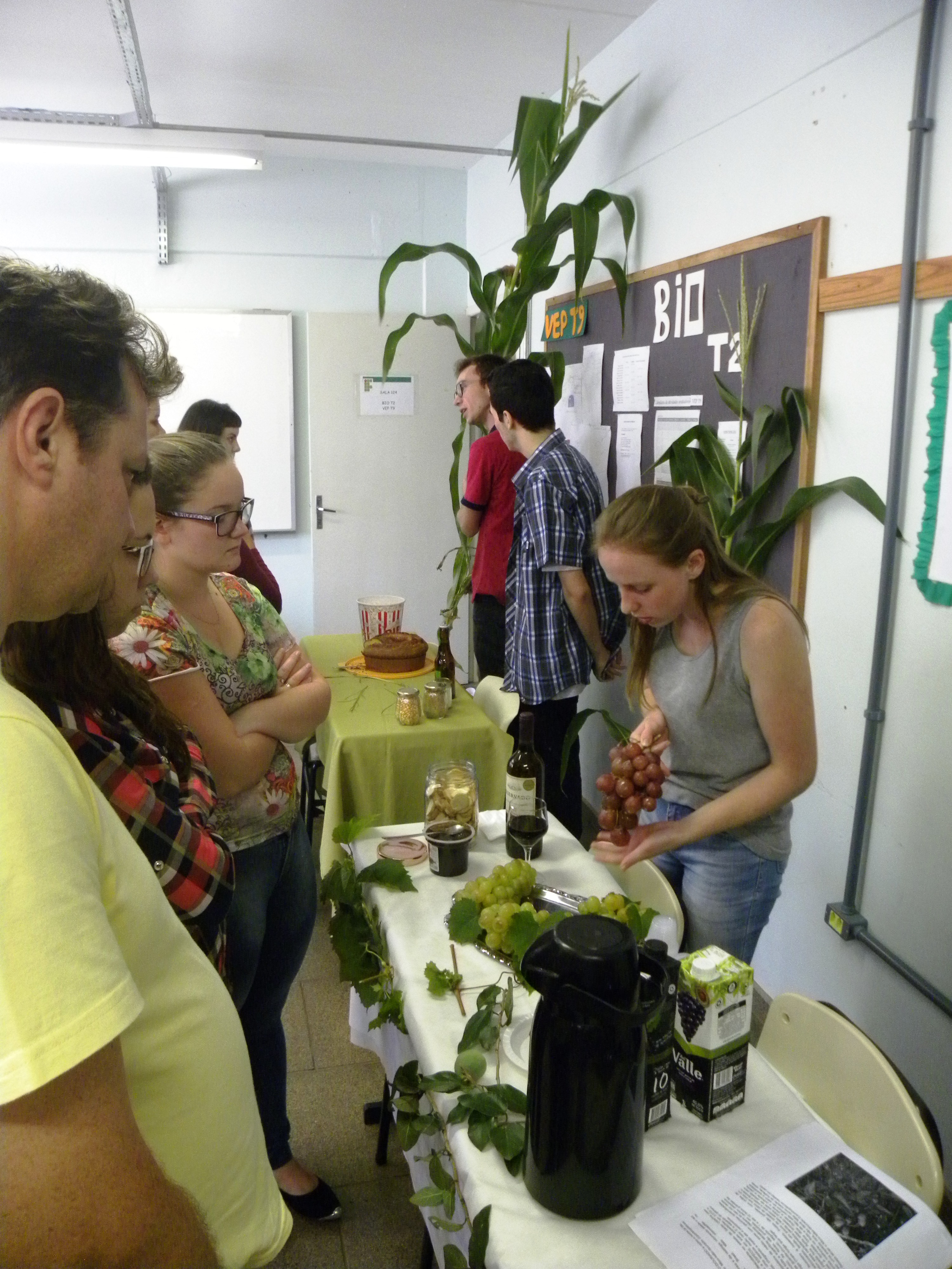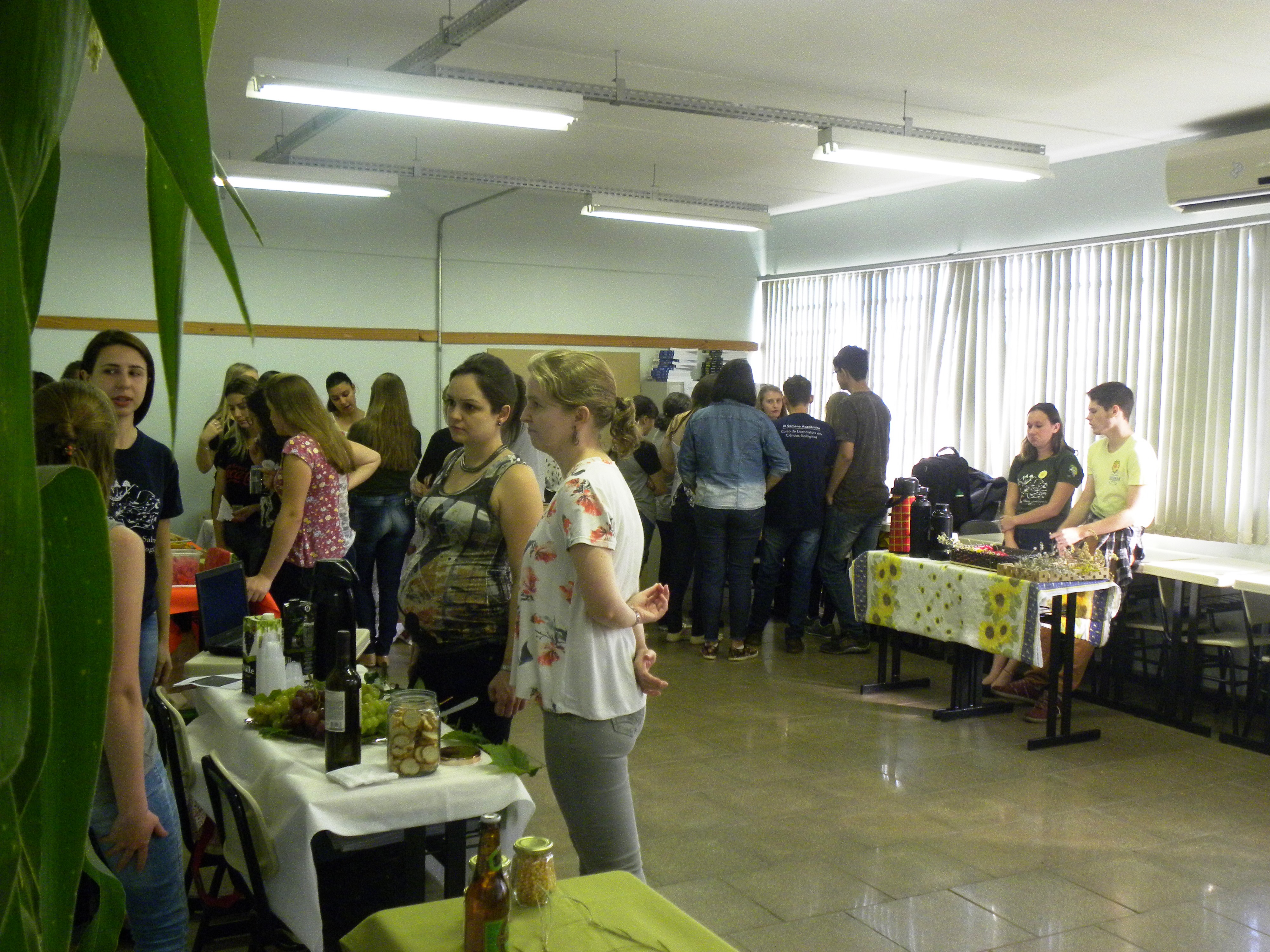 Os acadêmicos da segunda turma da Licenciatura em Ciências Biológicas participaram da I Mostra de Botânica do IFFar - Campus Santa Rosa, organizada pela professora Tatiana Löwe, dentro da disciplina Botânica II. Em grupos, os estudantes tiveram que explicar sobre uma família de plantas, suas características, onde são encontradas, sua importância para a sociedade e peculiaridades. Então, foram expostos exemplares de espécies e produtos derivados das famílias Solanaceae (batata, pimenta, tomate, por exemplo); Asteraceae (margarida, girassol); Rubiaceae (café); Rosaceae (roseira, macieira, pssegueiro); Cucurbitaceae (melancia, chucu, pepino, abóbora); Vitaceae (videiras); Fabaceae (soja, feijões) e Poaceae (milho, trigo, bambu).