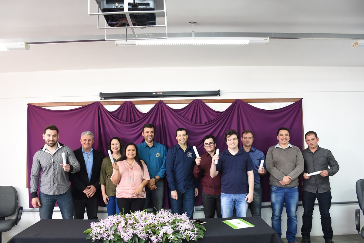 Nesta sexta-feira, dia 5 de outubro, o Instituto Federal Farroupilha - Campus São Vicente do Sul realizou a solenidade de colação de grau de gabinete de Elisete Terezinha Matias Cezar e Mateus dos Santos Giacomelli, em Licenciatura em Ciências Biológicas; Evandro Delevatti, em Licenciatura em Química; Marney Abadie Pivetta e Rogério da Rosa Argiles, em Análise e Desenvolvimento de Sistemas; e Celso Roberto Losekann, em Irrigação e Drenagem.