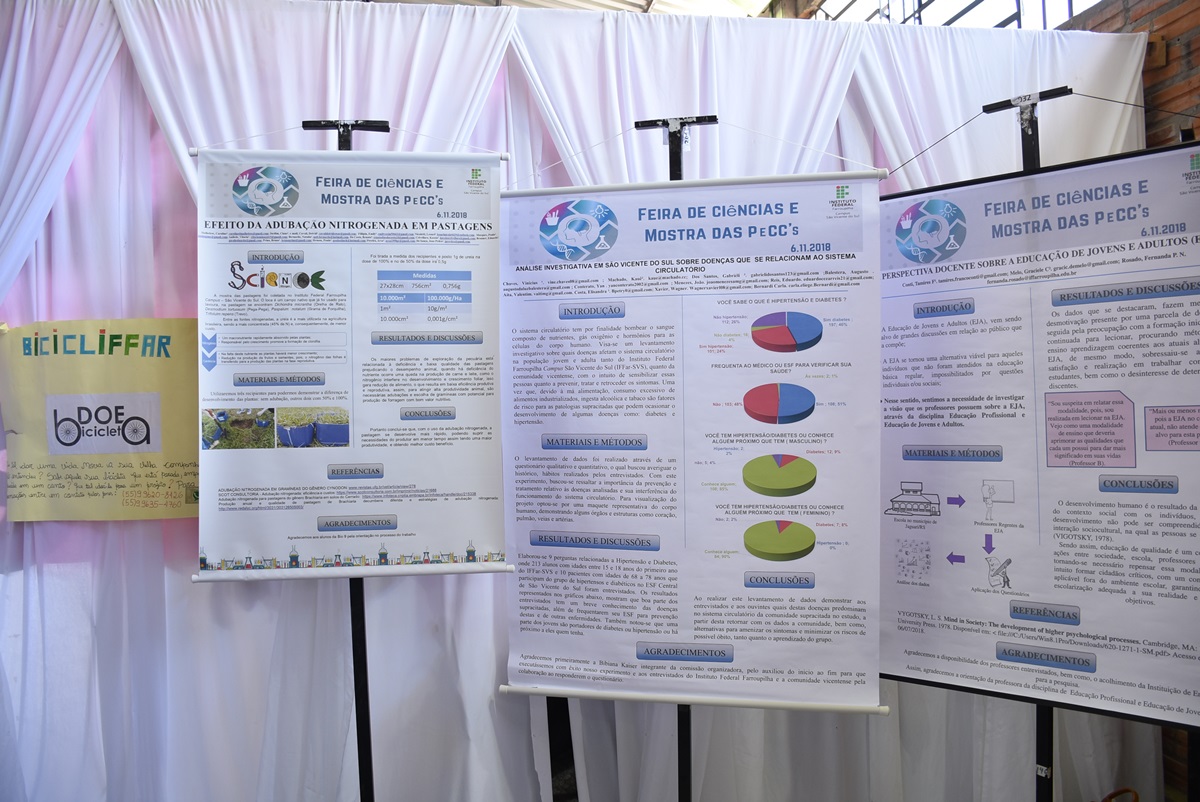 Na tarde da sexta-feira, dia 9, estudantes participantes da II Feira de Ciências Interdisciplinar e I Mostra das PeCC's, edição de 2018, levaram alguns experimentos e trabalhos para demonstração. Já no sábado, o PET Biologia expôs banners do grupo, além de mostrar o último livro lançado. Intitulado “Programa de Educação Tutorial: recursos didáticos para o Ensino de Biologia”, a obra reúne artigos de acadêmicas sobre reflexões acerca das atividades de ensino, pesquisa e extensão desenvolvidas na instituição.