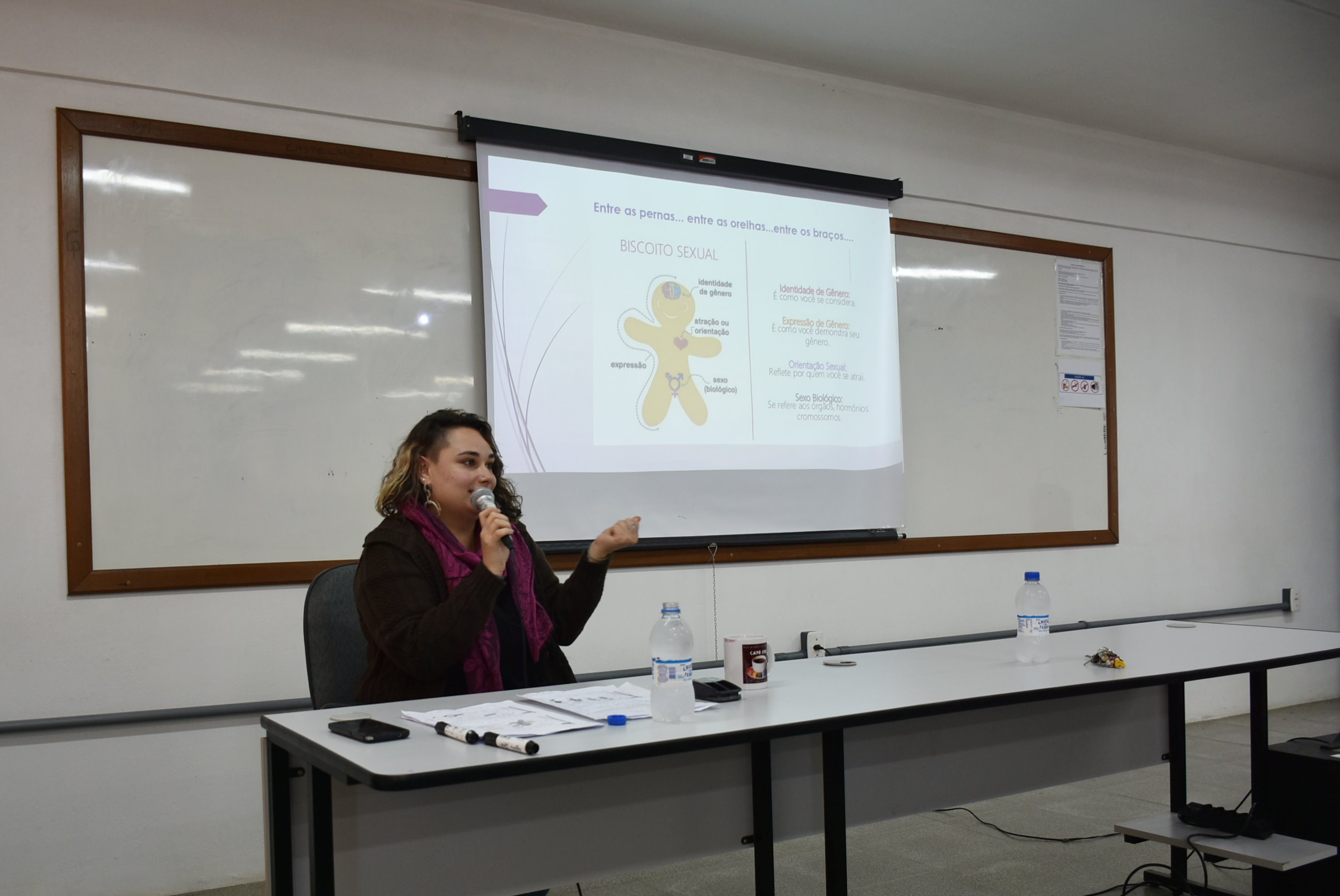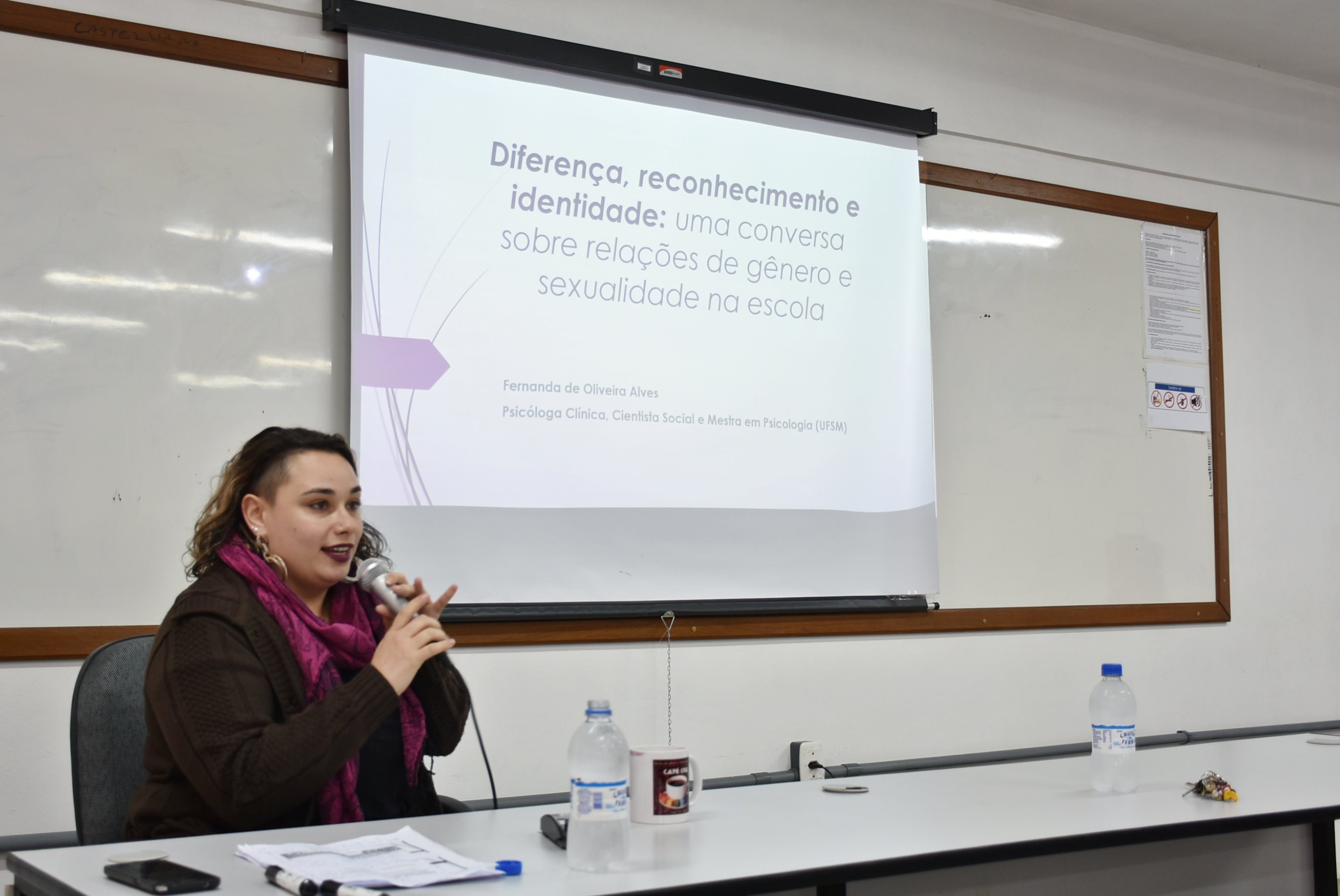 Na oportunidade, Fernanda apresentou reflexões sobre como o modelo de sexualidade heteronomativa cria apenas um tipo de sujeito que é visível e legítimo socialmente. Ao determinar uma linha definidora entre sexo-gênero-desejo-prática sexual, esse modelo exclui as múltiplas representações de identidades sexuais e/ou de gênero da atualidade, como, por exemplo: gays, lésbicas, transgêneros e pessoas intersexo. As identidades não normativas passam, então, a ter dificuldades de serem ajustadas, pois o modelo exige um alinhamento “normal” e coerente entre sexo, gênero e sexualidade.