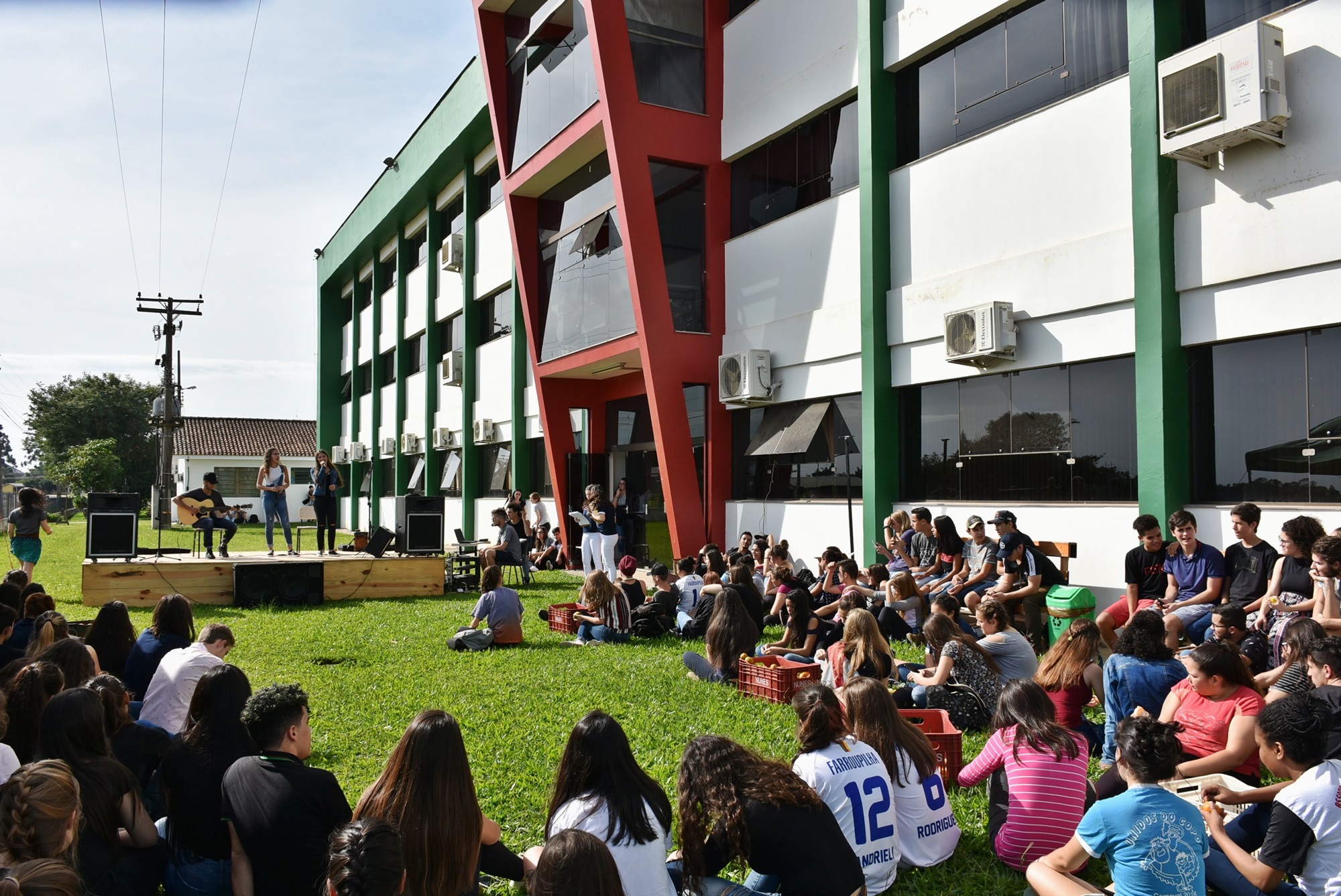 A atividade proporcionou à comunidade escolar um momento para lagartear ao sol, tomar mate, saborear bergamotas e laranjas, além de prestigiar apresentações artísticas - musicais e de dança - de talentos do próprio campus.