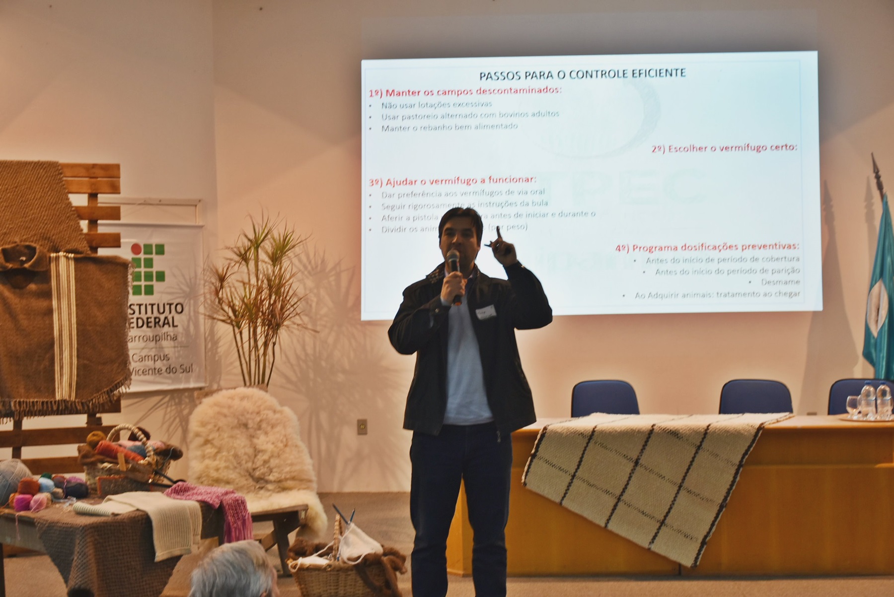 Pela manhã, após esclarecimentos sobre a Associação Brasileira de Criadores de Ovinos/ARCO, duas palestras foram proferidas. A primeira foi ministrada pelo médico veterinário Tiago Gallina Corrêa e discorreu sobre os problemas e soluções da verminose ovina; já a segunda versou sobre a produção de lã de qualidade, com o médico veterinário Ronaldo Carpes da Costa.