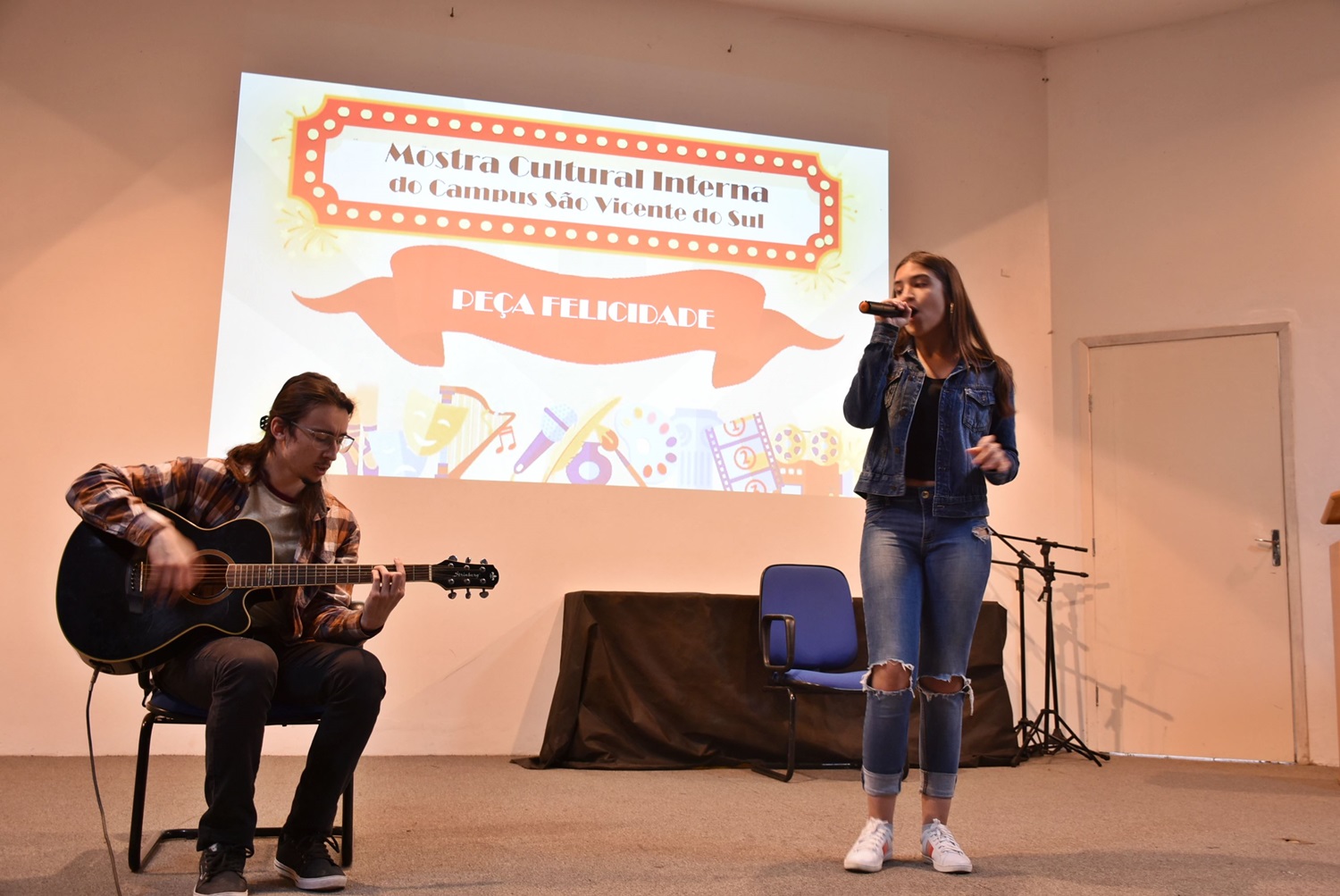 Na tarde de segunda-feira, dia 30 de setembro, o Campus São Vicente do Sul realizou sua Mostra Cultural Interna, que apresentou à comunidade escolar diversas formas de expressão artístico-cultural desenvolvidas por estudantes. Organizado pela Diretoria de Ensino, Coordenação de Assistência Estudantil e pelo Núcleo de Artes e Cultura do do IFFar-SVS, o evento buscou promover a integração de estudantes e servidores através de apresentações e exposições de diferentes linguagens artísticas.