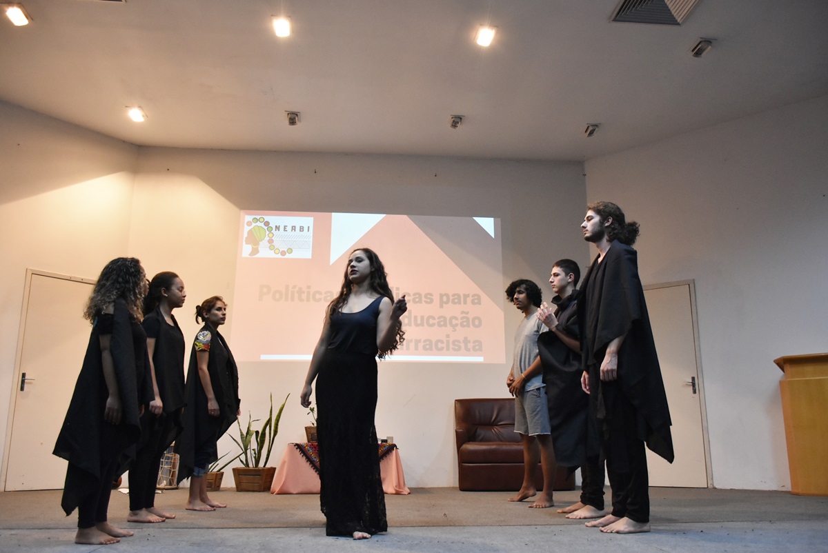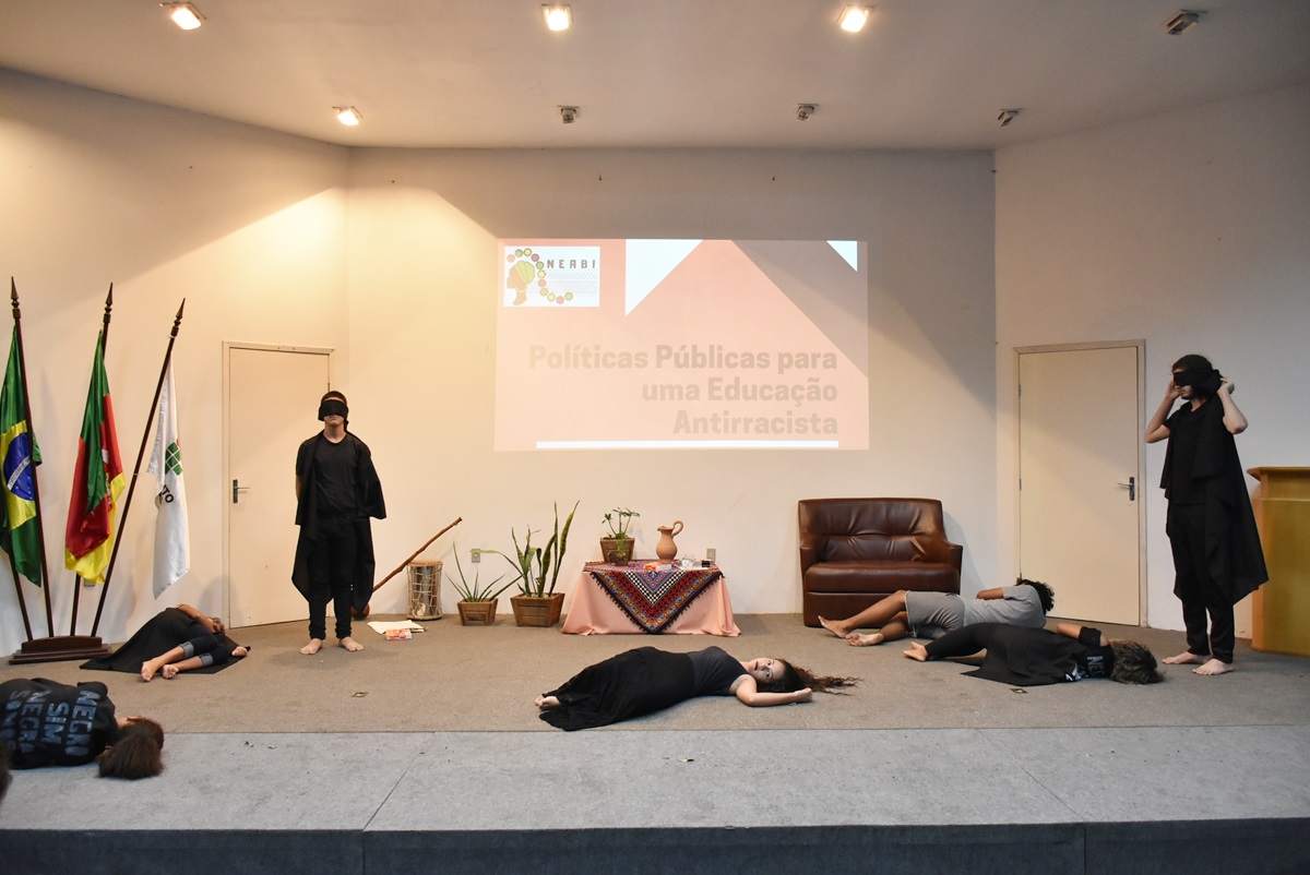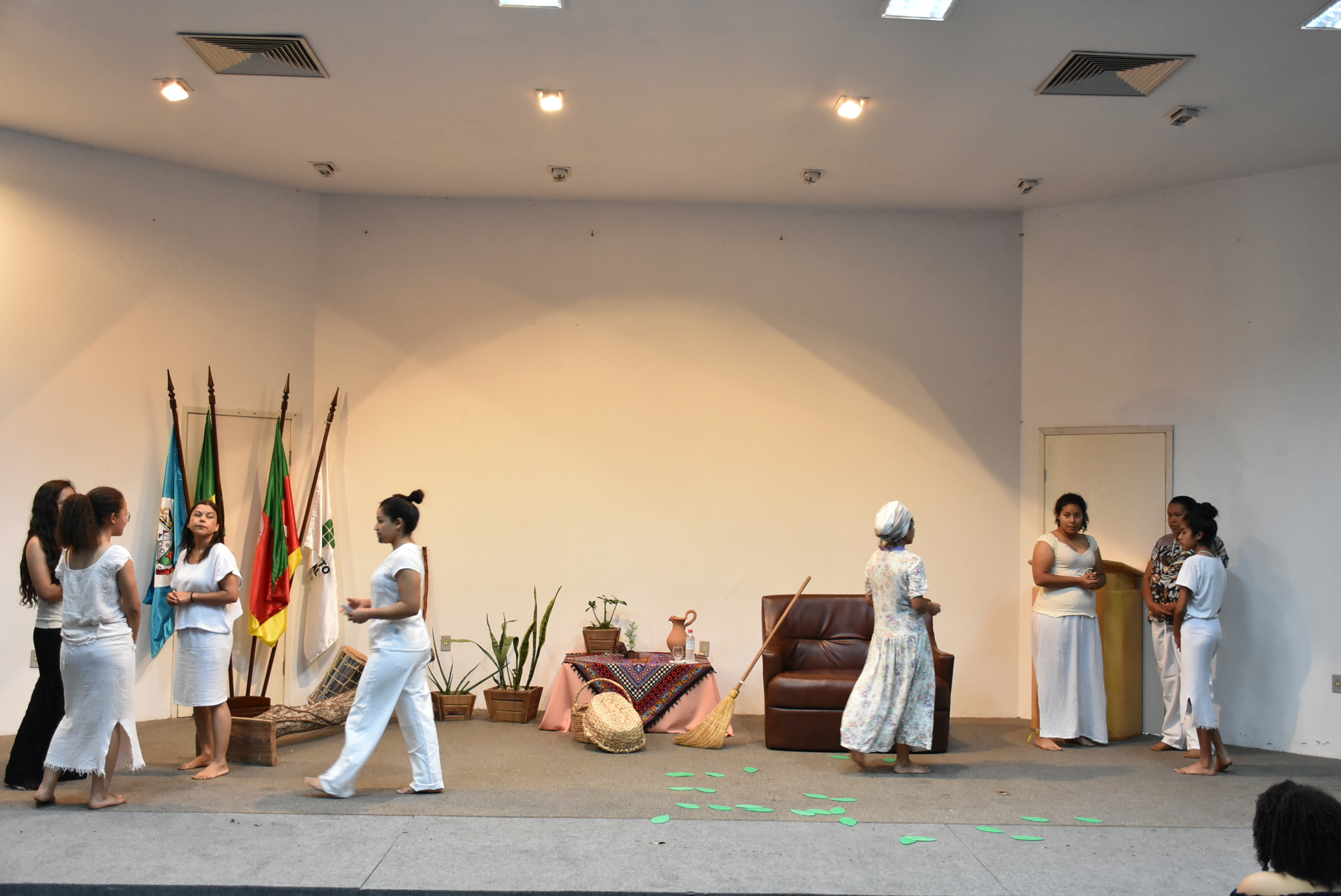 Na oportunidade, também houve a estreia da encenação “Teatro afro centrado: A escravidão”, promovido pelo Coletivo Nagô. A proposta do grupo é discorrer sobre três períodos históricos da trajetória do negro: A escravidão, a pós abolição e o negro nos dias atuais. Nesta primeira parte, foi representada: a tradição oral africana através da narrativa das griôs, a vinda da África para o brasil, o trabalho das mulheres escravizadas, a sabedoria para o uso de plantas medicinais, a influência das palavras africanas no Português falado no Brasil e a resistência negra diante da escravidão. Como projeto de extensão, o espetáculo vai percorrer escolas do município.