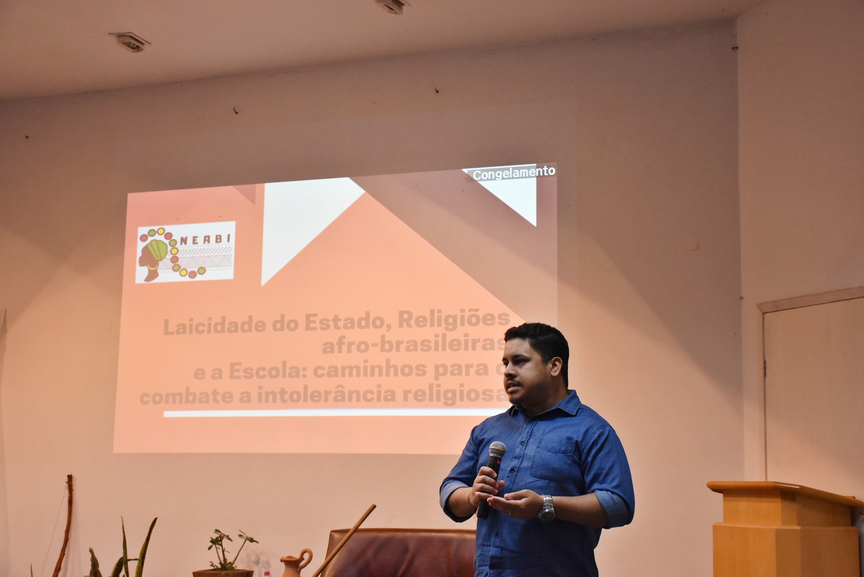 Já na manhã de quarta-feira, 20, oficialmente o Dia Nacional da Consciência Negra, aconteceu palestra sobre laicidade do Estado e religiões afro-brasileiras, com Gilvan Silveira Moraes, mestre em História pela UFSM e Bàbálaòrìsà do Ylê Alaketu Reino Jeje-Ijesá de Odé. Mais do que trazer esclarecimentos sobre muitos aspectos da nossa cultura que possuem influências africanas, Gilvan buscou desmistificar conceitos e tabus acerca da religiosidade africana e afro brasileira, a fim de apontar caminhos que combatam a intolerância religiosa.
