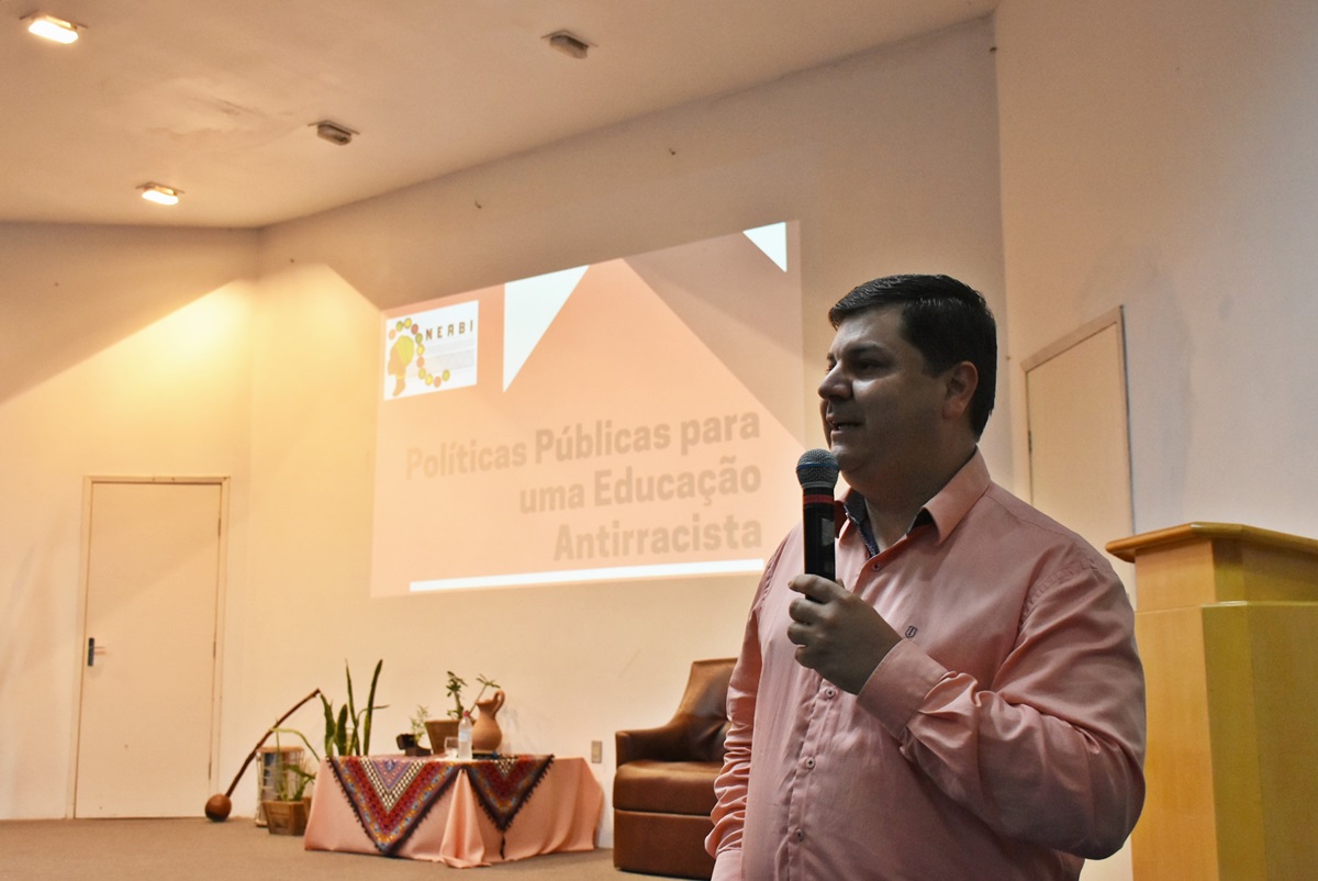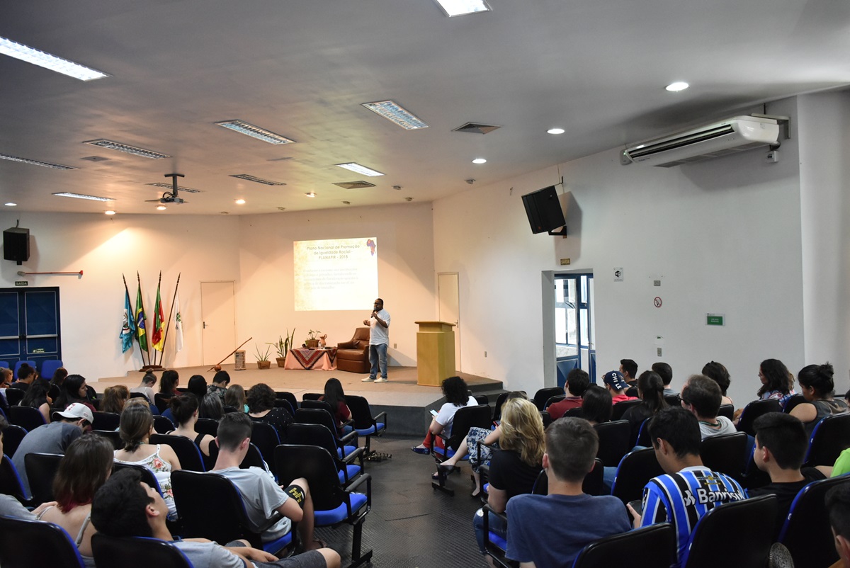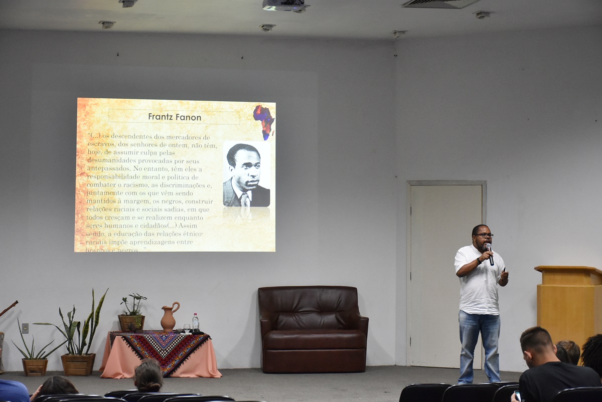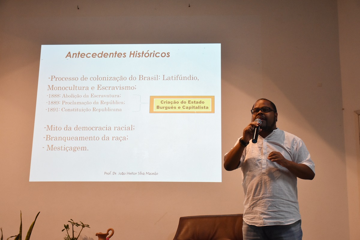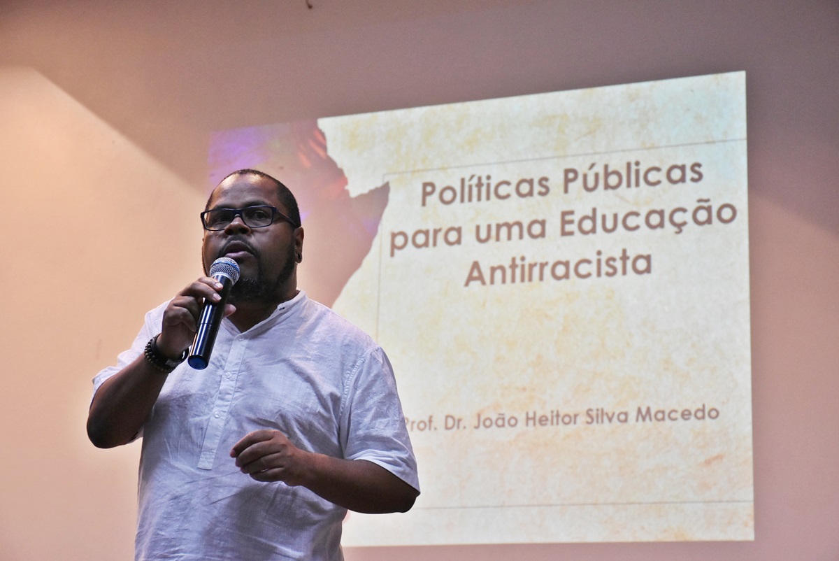 Na terça-feira, 19, houve, nos turnos tarde e noite, palestra sobre políticas públicas para uma educação antirracista, com João Heitor Silva Macedo, doutor em História pelo Programa de Pós-Graduação em História da UFSM com Tese em Cultura, Educação e Ensino de História para o combate ao racismo. Além de apresentar os antecedentes históricos que criaram o mito da democracia racial brasileira, ele apontou – começando com o marco legal que é a lei nº 10.639/03 - a evolução de diretrizes e avanços que marcam as esferas governamentais para a educação das relações étnico-raciais. O objetivo maior de João Heitor foi apontar os mecanismos existentes no cenário brasileiro atual para que o movimento negro possa se apropriar e fortalecer sua luta por igualdade racial.