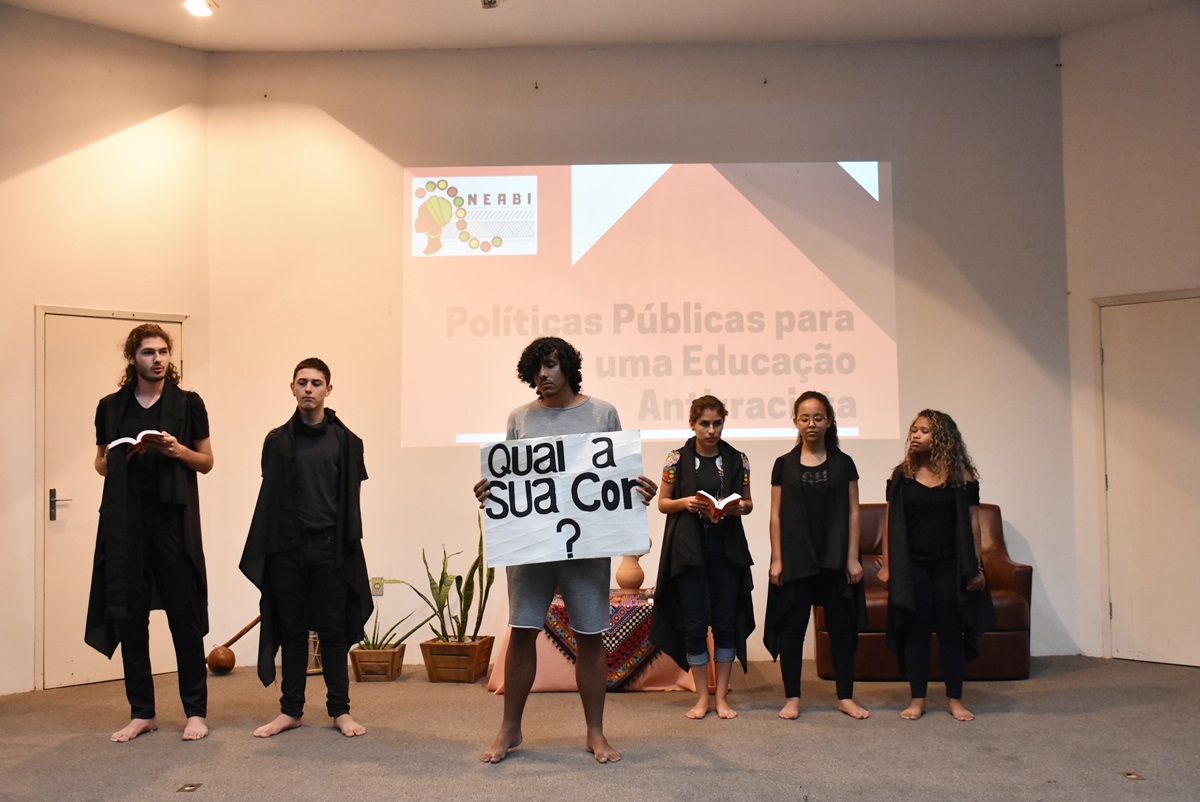 Na abertura oficial do evento, houve a apresentação “Negro sim, negro somos!”, que é baseada na peça “Negra Sou”, do Grupo Cabe na Sacola e na teatralização do poema “Gritaram-me negra”, da afro peruana Victoria Santa Cruz. Os participantes são todos estudantes das turmas do ensino médio e tiveram orientação da profª Claudia Alves dos Santos.