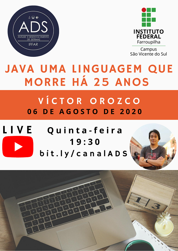A 8ª live do Papo de TI ADS SVS, promovido por docentes do Eixo Tecnológico “Informação e Comunicação” do Instituto Federal Farroupilha – Campus São Vicente do Sul, terá como tema "Java, uma linguagem que morre há 25 anos".