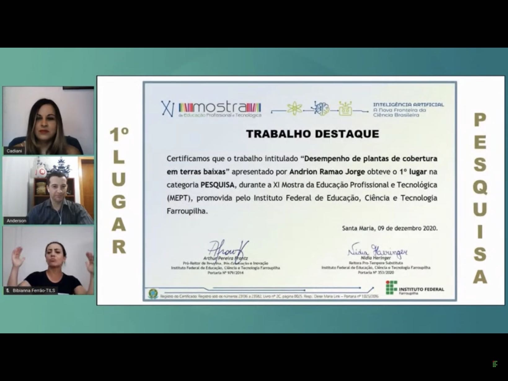 - 1º Lugar - "Desempenho de plantas de cobertura em terras baixas", do acadêmico Andrion Ramão Jorge e orientação do prof. Eduardo Anibele Streck.