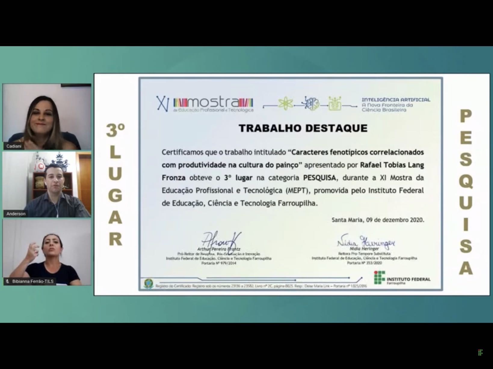 - 3º Lugar - "Caracteres fenotípicos correlacionados com produtividade na cultura do painço", do acadêmico Rafael Tobias Lang Fronza e orientação do prof. Eduardo Anibele Streck.
