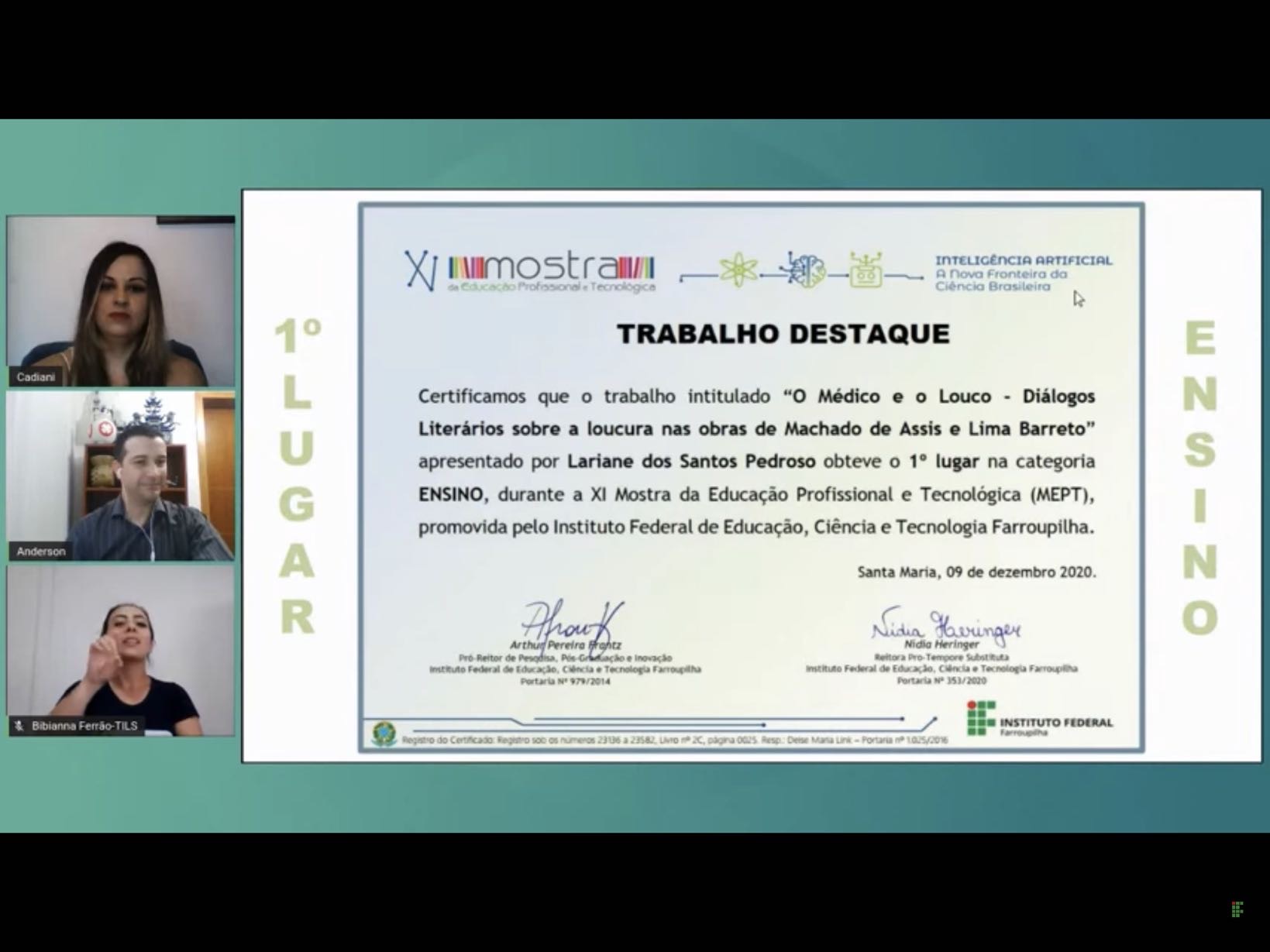 - 1º Lugar - " O Médico e o Louco - Diálogos Literários sobre a loucura nas obras de Machado de Assis e Lima Barreto", da aluna Lariane dos Santos Pedroso e orientação da professora Ana Cláudia de Oliveira da Silva.