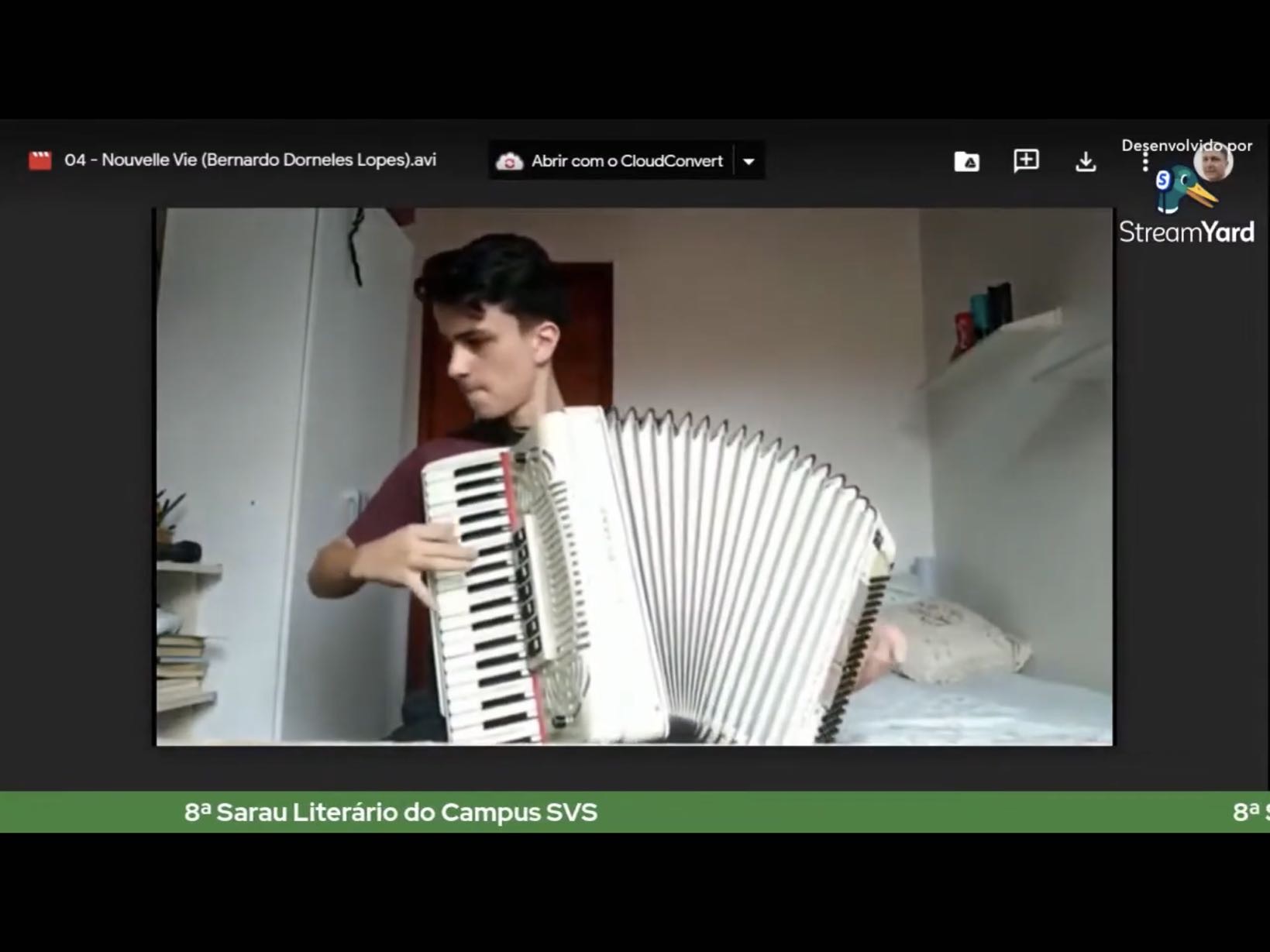 Na noite da última quinta-feira, dia 9 de setembro, aconteceu a 8ª edição do Sarau Literário, tradicional evento artístico do Instituto Federal Farroupilha - Campus São Vicente do Sul. Mesmo de forma online - já no 2º ano neste formato - a comunidade escolar esteve reunida para o show de talentos que tem a fama de ser um dos mais animados da instituição.