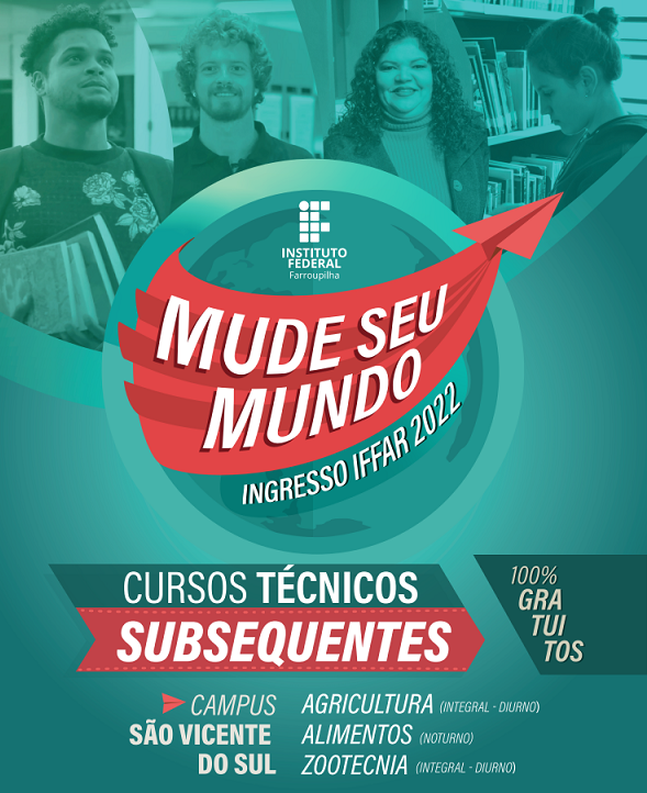 O Instituto Federal Farroupilha (IFFar) lançou nesta quarta-feira (13) o edital de abertura do processo seletivo 2022 dos cursos técnicos subsequentes, voltados para quem já concluiu ou conclui neste ano o Ensino Médio. Essa modalidade oportuniza formação profissional técnica. As inscrições são gratuitas, assim como os cursos, e podem ser realizadas online até 15 de novembronesta página.