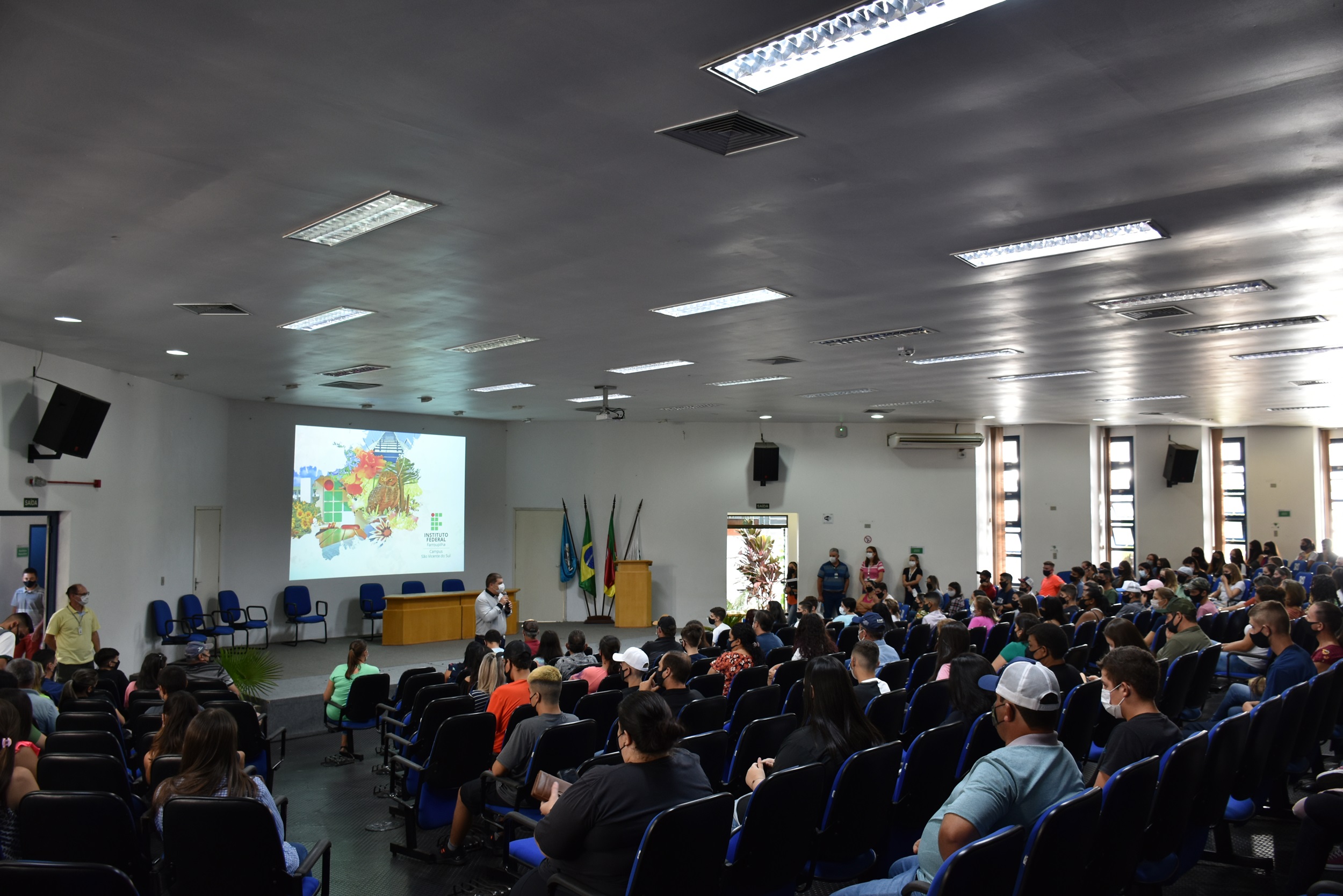 Calouros e calouras – que estavam acompanhados de um/a responsável -, receberam as orientações iniciais da equipe da Direção de Ensino, como o Setor de Assistência Pedagógica, Coordenação de Assistência Estudantil, assim como as Coordenações de cada curso.