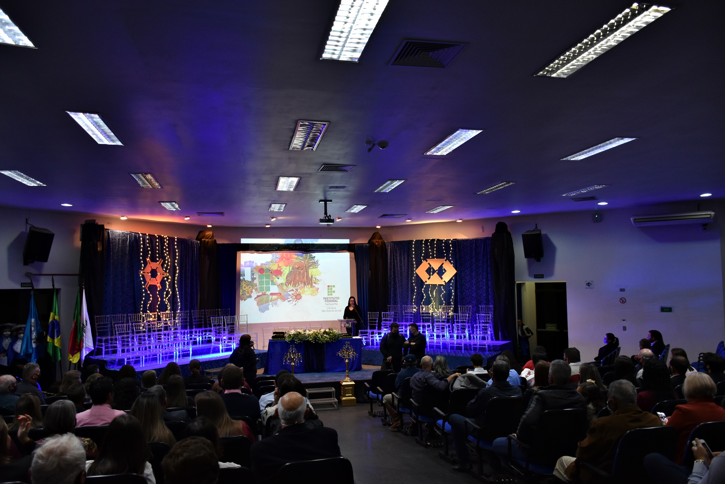 A solenidade contou com a presença do pró-reitor de Desenvolvimento Institucional do IFFar, Carlos Rodrigo Lehn; do diretor geral, Deivid Buttinger Dutra de Oliveira; do diretor de Ensino, João Flávio Cogo de Carvalho; além de formandos/formandas e seus familiares, professores/as homenageados/as, paraninfos/as, patronos e patronesses das turmas. A solenidade também contou com a presença de Cássio Bertazzo Fiorenza, representante do Conselho Regional de Engenharia e Agronomia do RS.