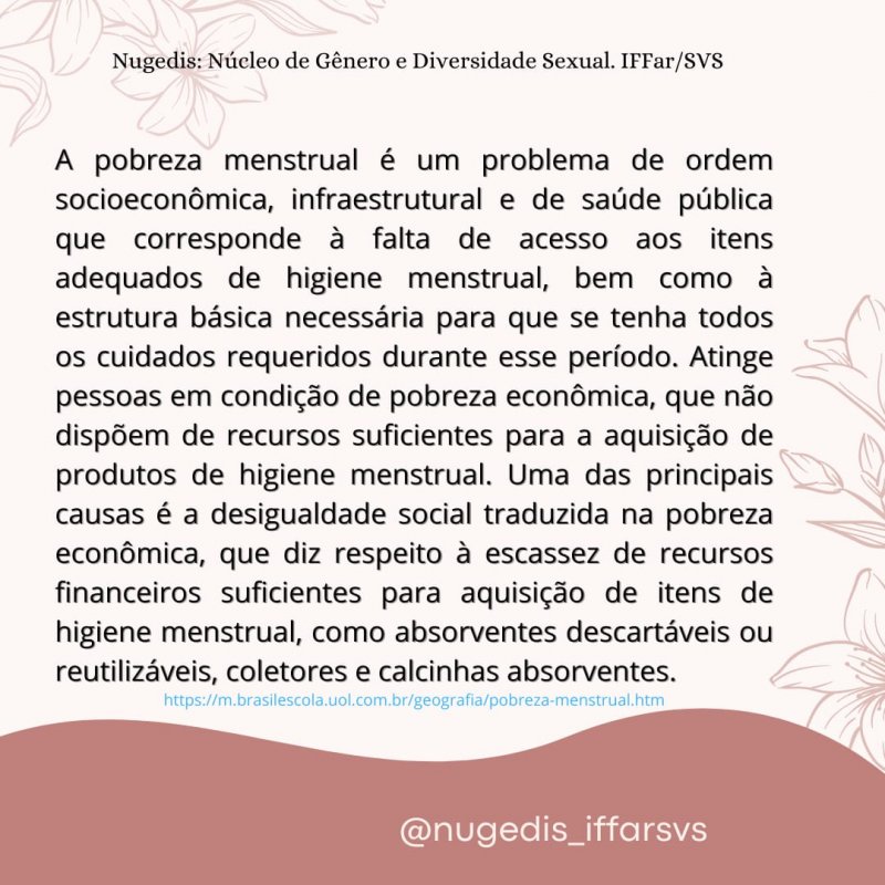 Saiba mais sobre Pobreza Menstrual no card abaixo, criado pelo Núcleo: