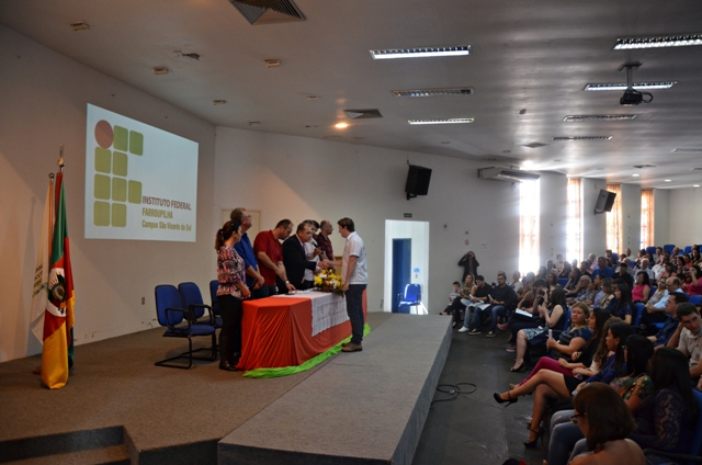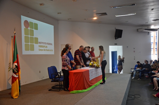 Realizou-se, no dia 14.10.2016, a Formatura de Gabinete de 5 Cursos Superiores, do IFFAR Câmpus São Vicente do Sul. Ao todo foram 23 formandos dos cursos de Tecnologias em: Análise e Desenvolvimento de Sistemas, Irrigação e Drenagem e Gestão Pública e Licenciaturas em: Ciências Biológicas e Quimica.