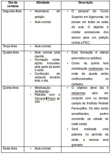 OBS.: Cancelamento da formação em Ações Inclusivas no Campus.
