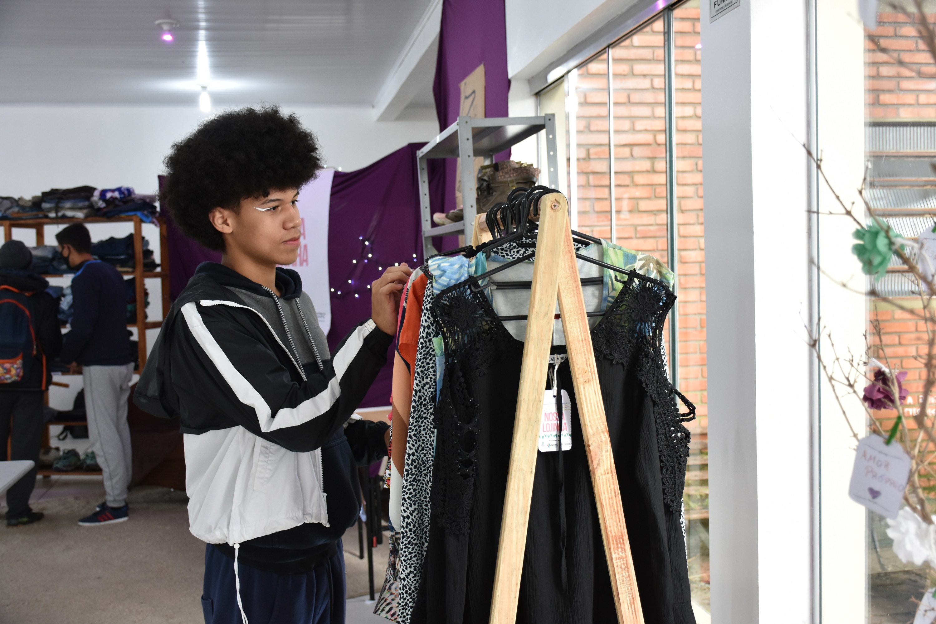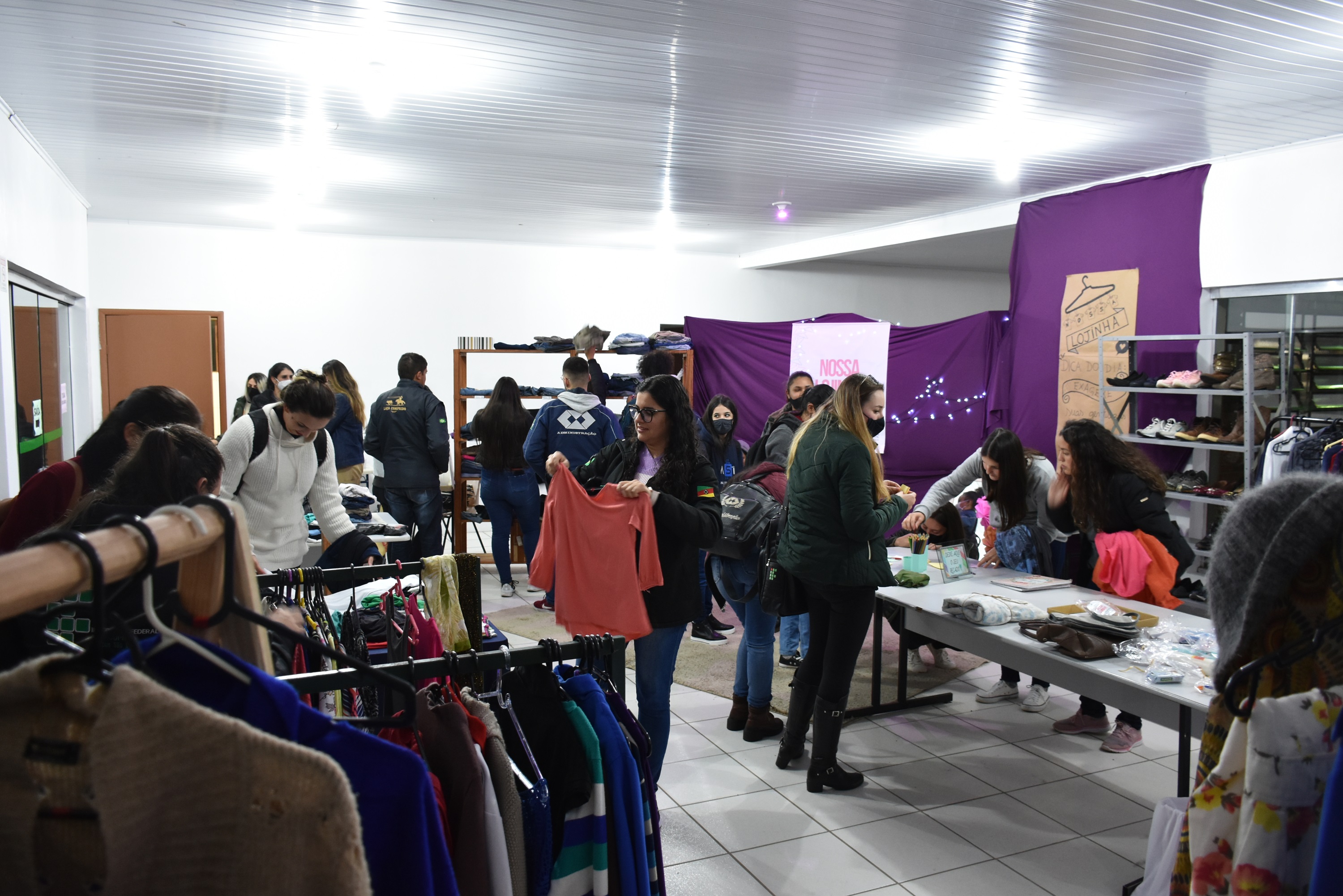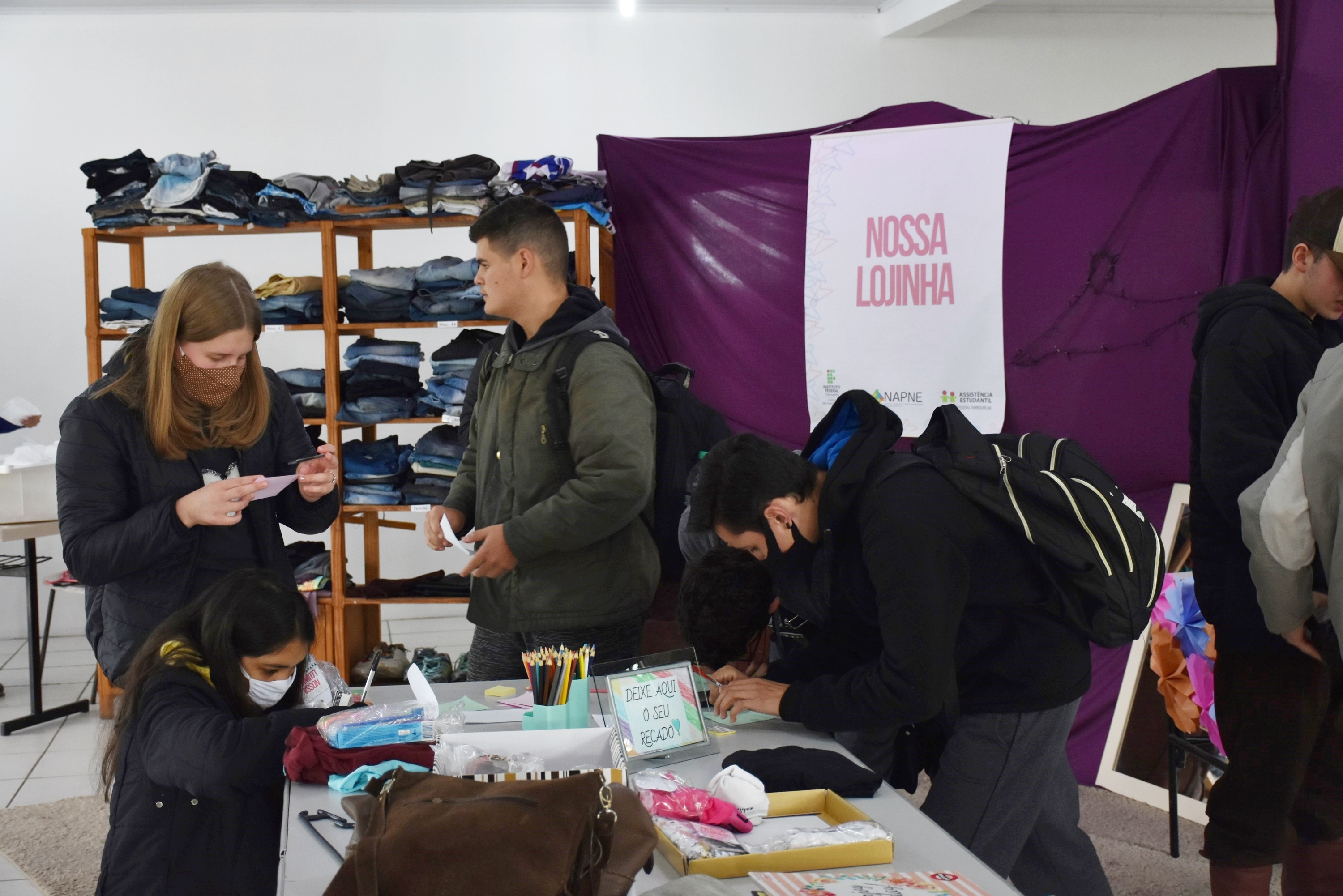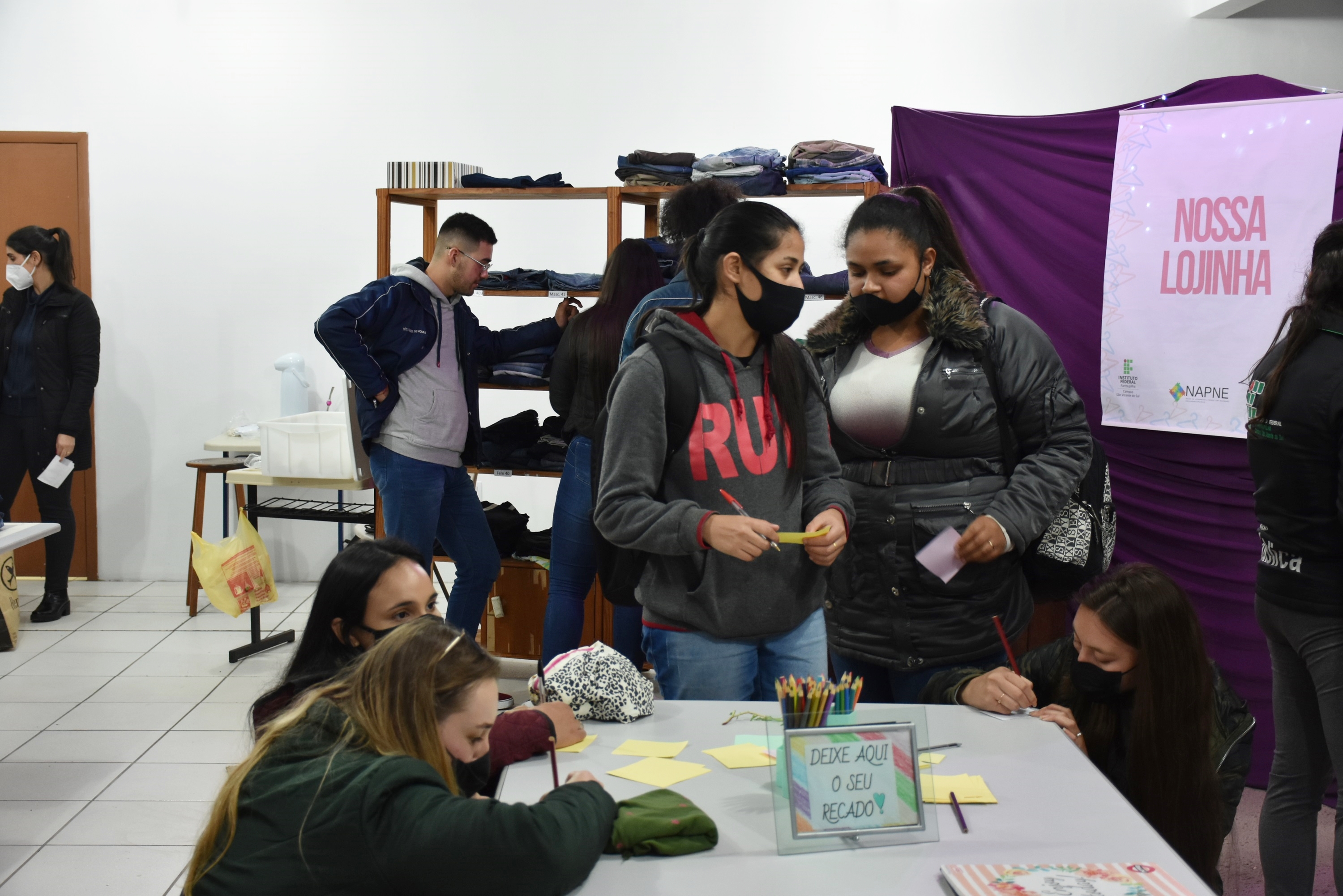 A Nossa Lojinha funcionou das 12h às 21 horas e disponibilizou os itens arrecadados a toda classe discente. Cada estudante podia “comprar” - até três peças - e “pagar" deixando um recado positivo, manifestando, por exemplo, respeito, empatia e gentileza.