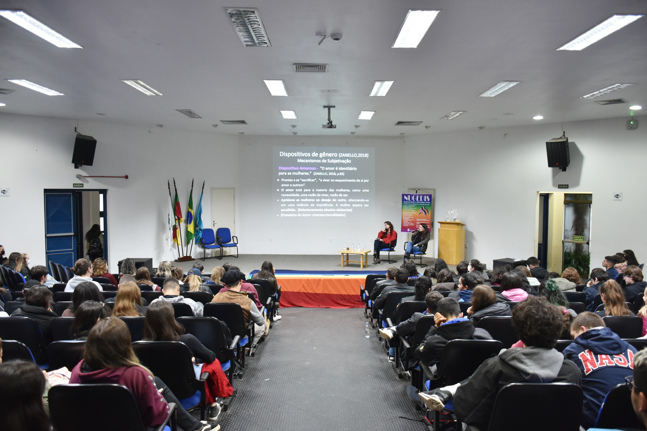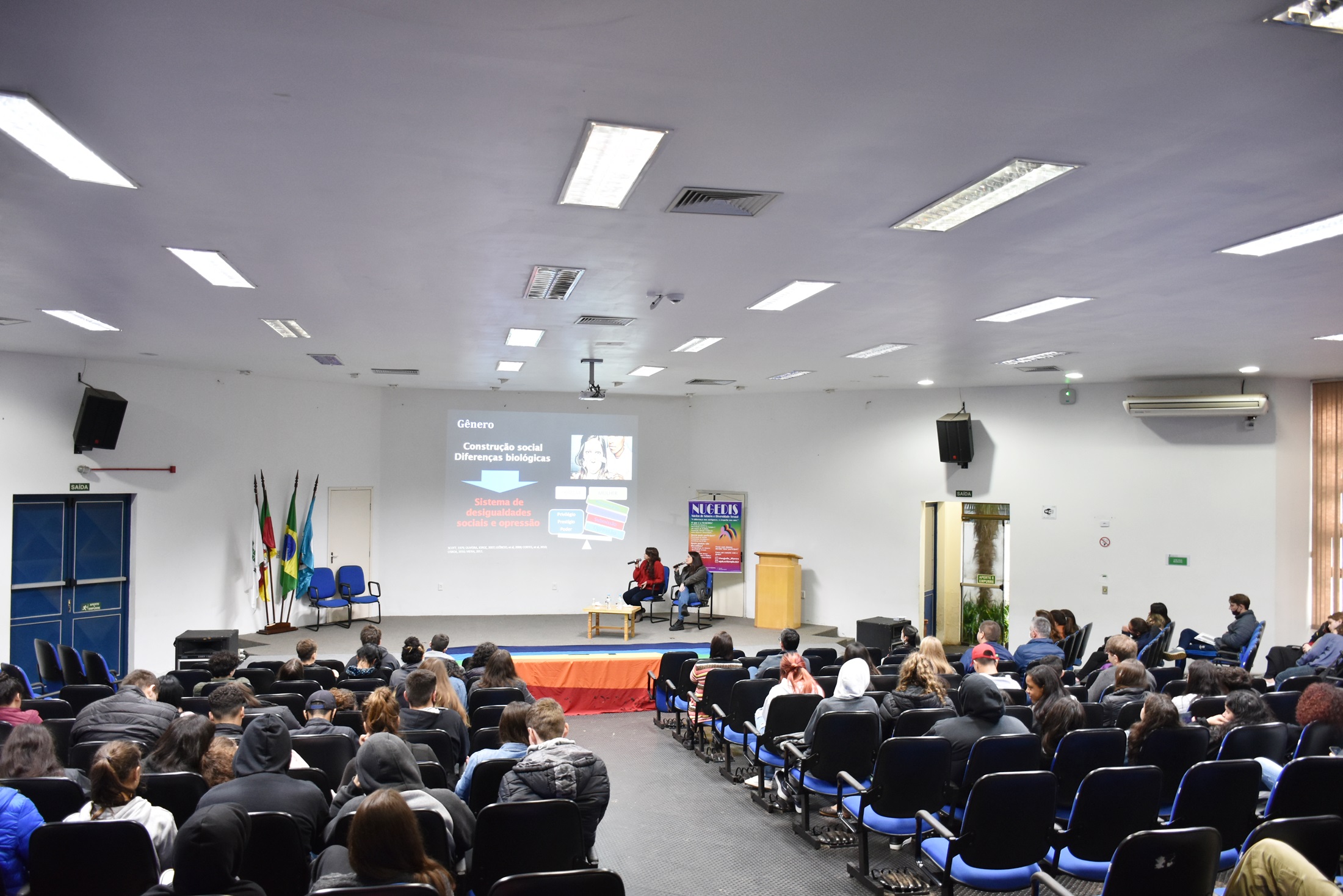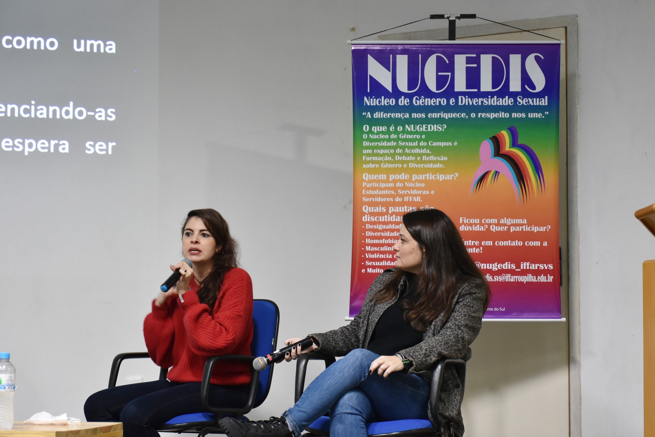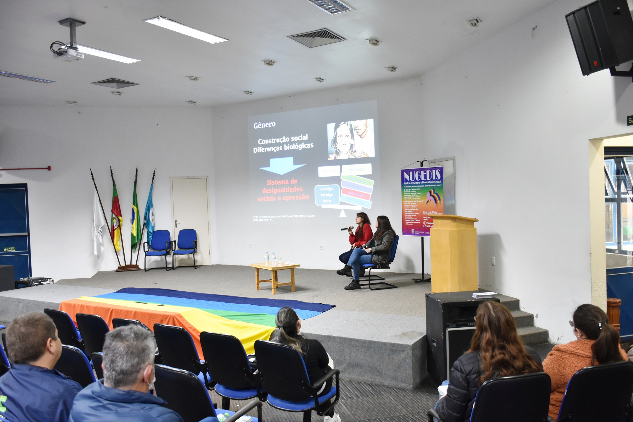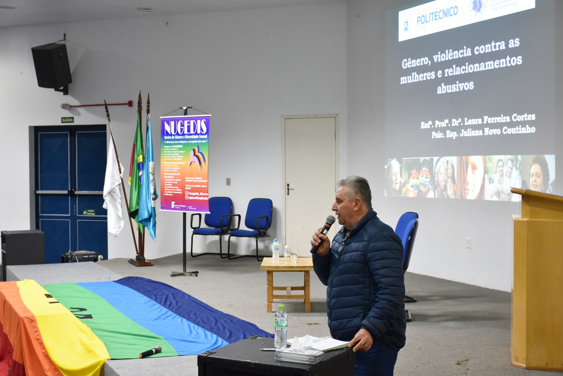O evento foi organizado pelo Núcleo de Gênero e Diversidade Sexual (NUGEDIS-SVS) e Direção de Ensino e teve como ministrantes Laura Ferreira Cortes, enfermeira e coordenadora do Fórum de Enfrentamento à Violência contra as Mulheres de Santa Maria; e Juliana Novo Coutinho, psicóloga e especialista em Estudos de Gênero.