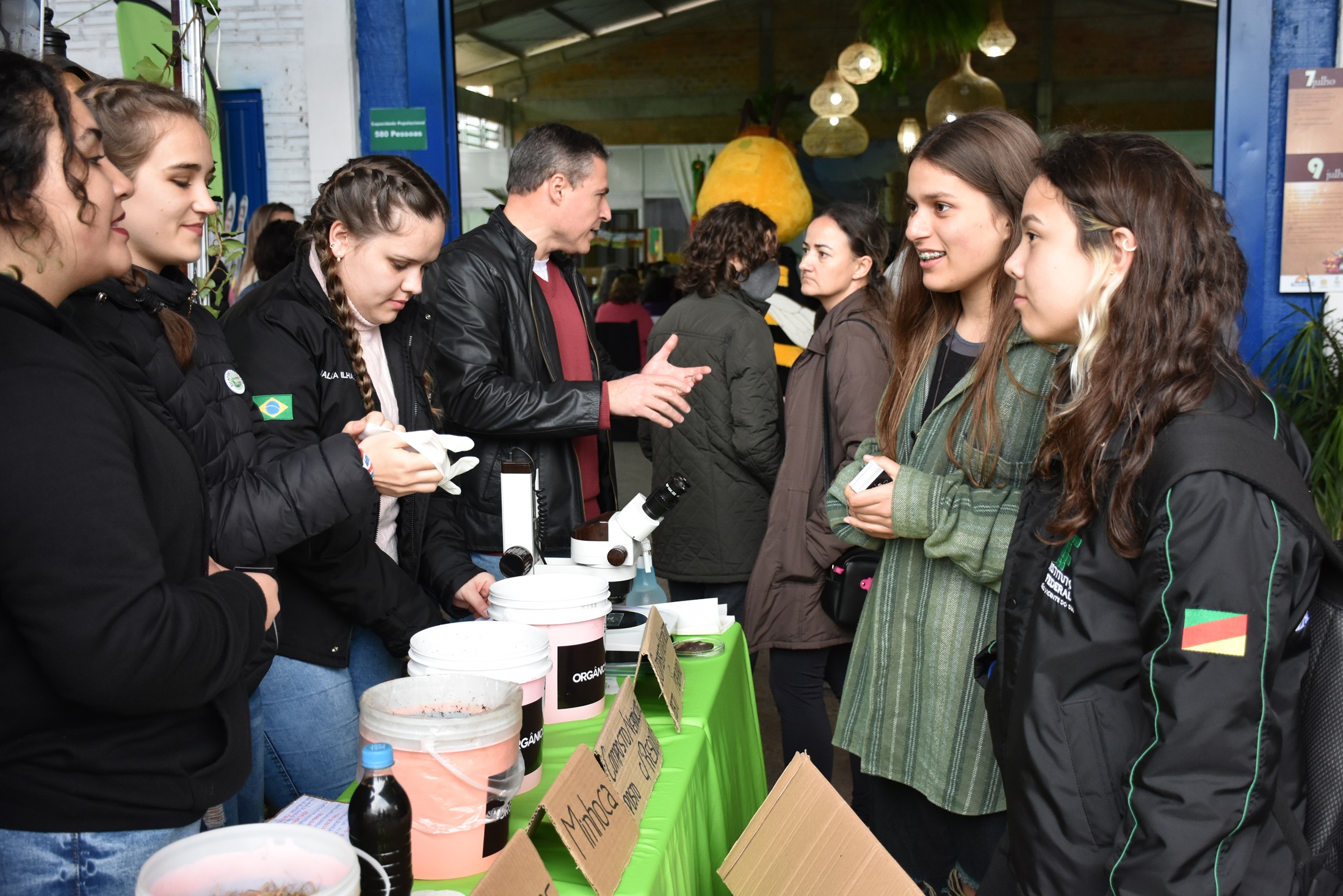 -Oficina de Compostagem Doméstica, oferecida pelos estudantes da turma de 3ª ano do Curso Técnico Integrado em Alimentos.