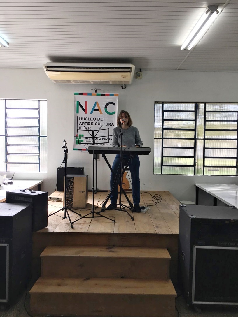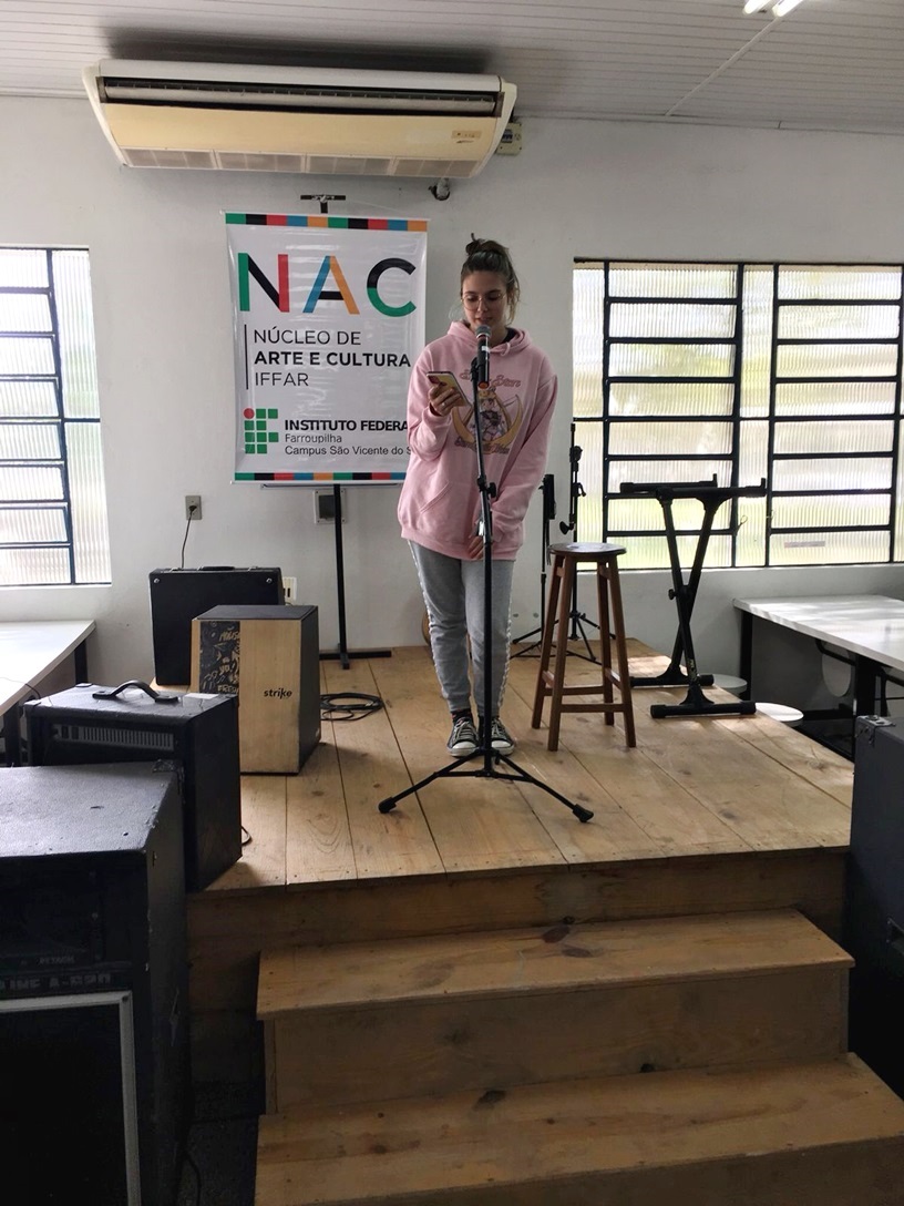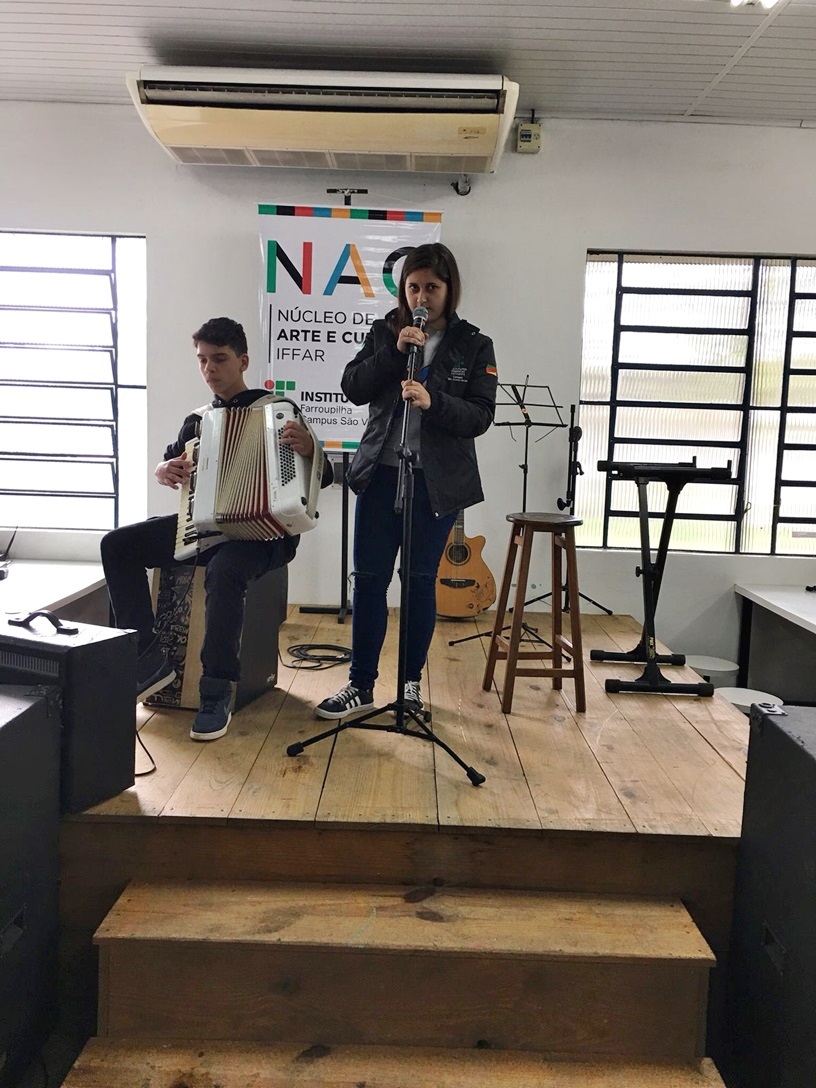 Na última terça-feira, dia 12 de julho, o refeitório do Campus São Vicente do Sul foi palco do evento “Música no Cardápio”, que ocorreu no horário do almoço e presenteou a comunidade acadêmica com apresentações de alguns talentos musicais da instituição.
