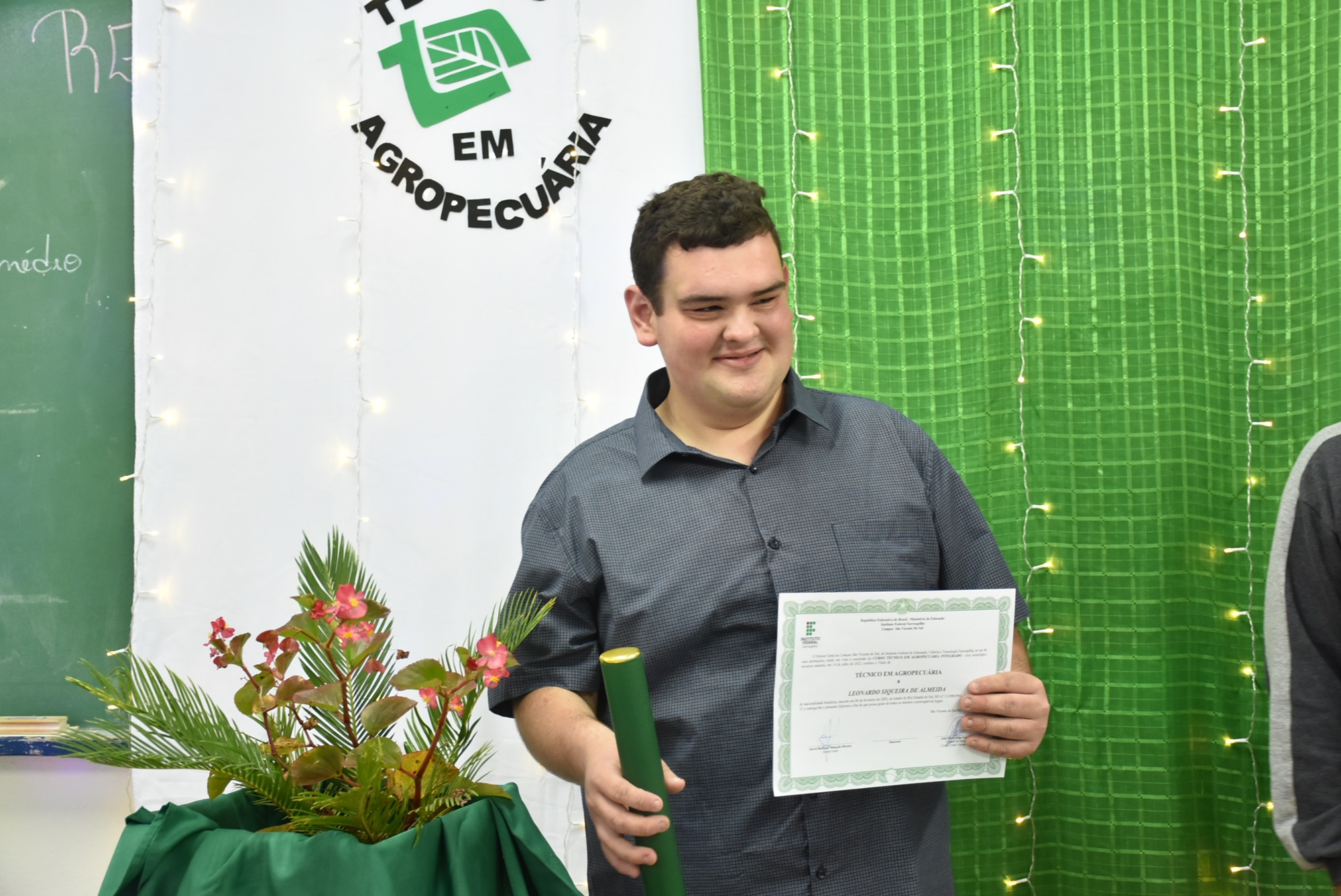Nesta sexta-feira, dia 2 de setembro, o Instituto Federal Farroupilha – Campus São Vicente do Sul realizou evento de formatura de Leonardo Siqueira de Almeida, 20 anos, estudante com deficiência intelectual e agora Técnico em Agropecuária formado.