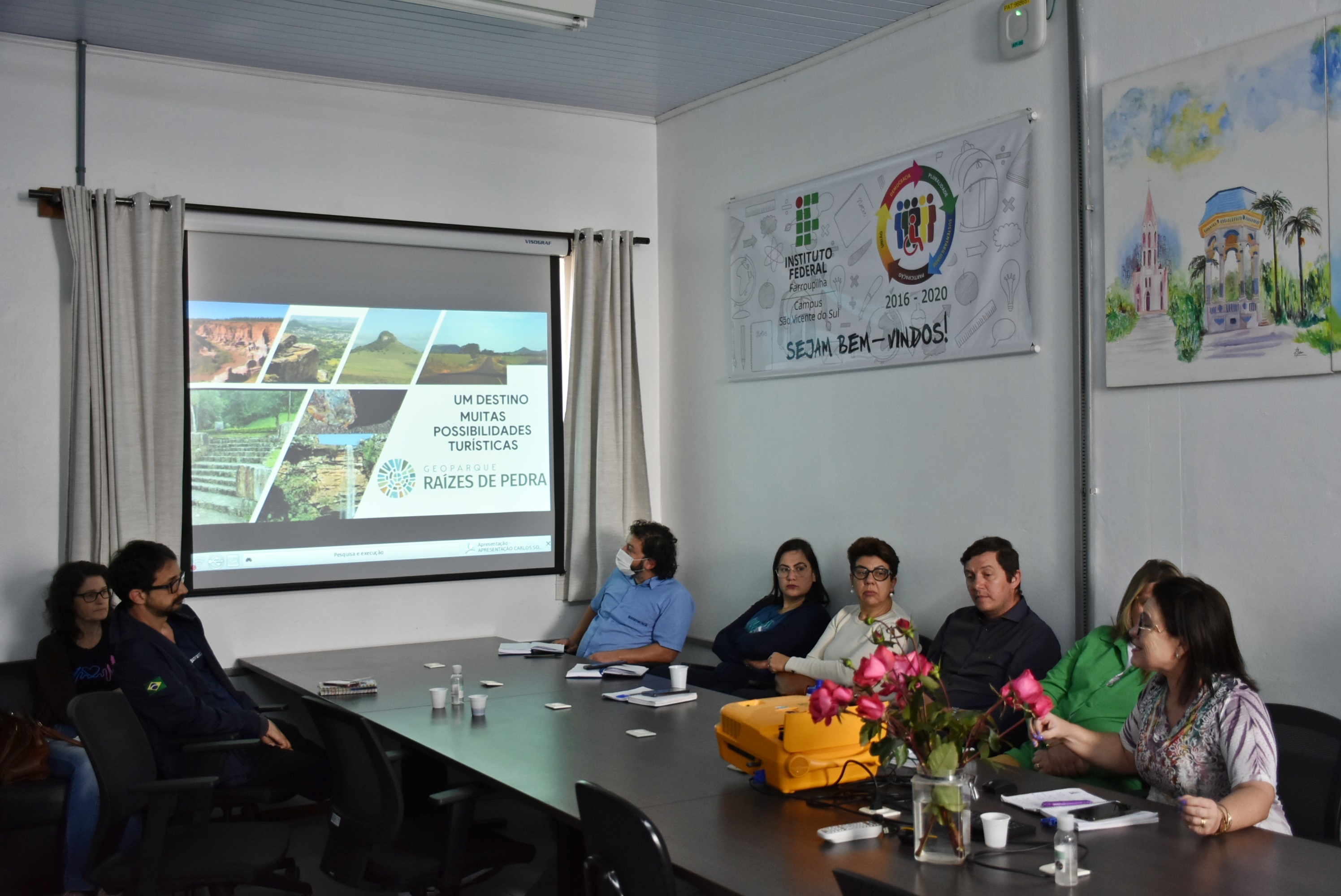 No dia 27 de setembro, última terça-feira, o Campus São Vicente do Sul foi sede de importante encontro sobre o andamento das atividades de organização do Geoparque Raízes de Pedra, que objetiva trazer visibilidade aos territórios e fomentar o turismo sustentável na área geográfica que abrange os municípios Jaguari, Mata, Nova Esperança do Sul, São Francisco de Assis, São Pedro do Sul e São Vicente do Sul.
