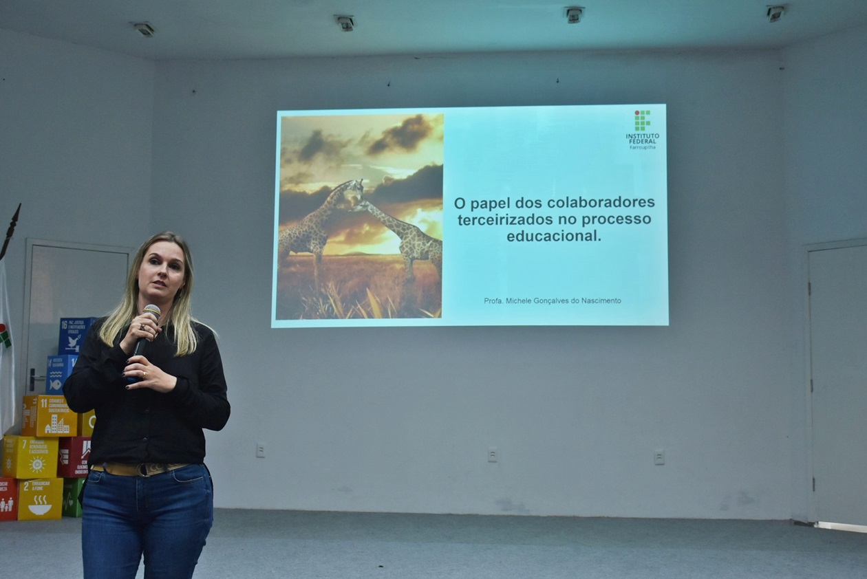A fala intitulada “O papel dos colaboradores terceirizados no processo educacional”, foi ministrada pela profª Michele Gonçalves do Nascimento e reforçou o papel essencial dos serviços prestados pelos terceirizados para o bom funcionamento da escola e o aumento da qualidade do clima organizacional.