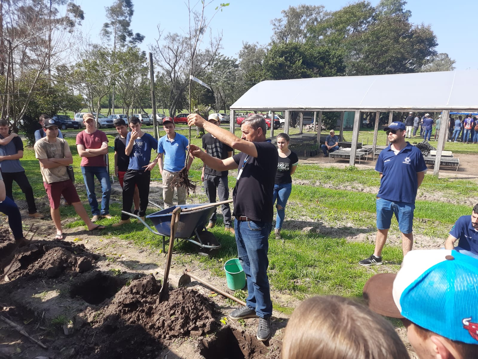 A programação envolvia o percurso por quatro estações demonstrativas: poda de Noz Pecan, muro frutal, plantio de mudas e poda de Videira. Os temas abordados nas estações foram os seguintes: “Poda em Nogueira”, ministrado pelo prof. Diniz Fronza, do Colégio Politécnico da UFSM; “Plantio de Mudas Frutíferas”, com Marcos Turchiello, eng. agr.e técnico da Emater de São Vicente do Sul; “Muro Frutal em Pessegueiro”, ministrado pelo prof. Eliseo Salvatierra Gimenes e “Poda em Videira” com prof. João Flávio Cogo Carvalho, ambos do Campus SVS.