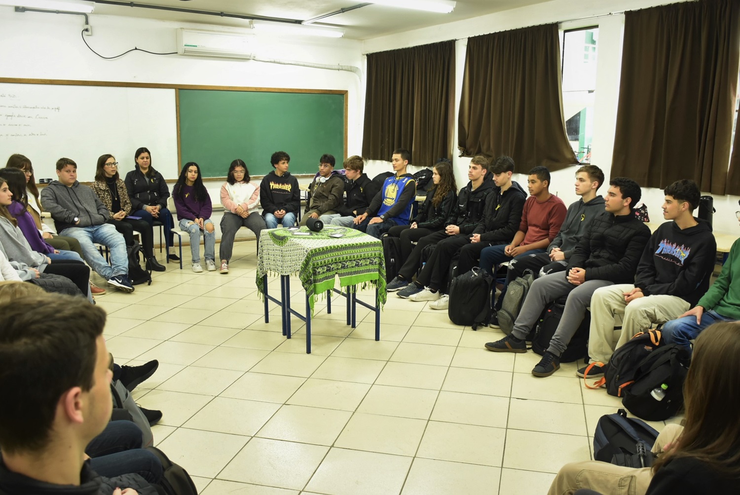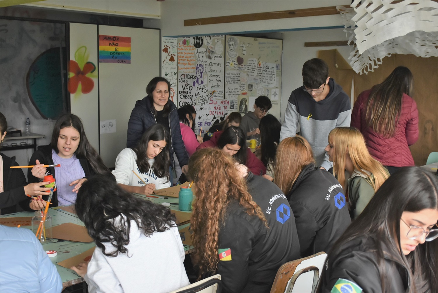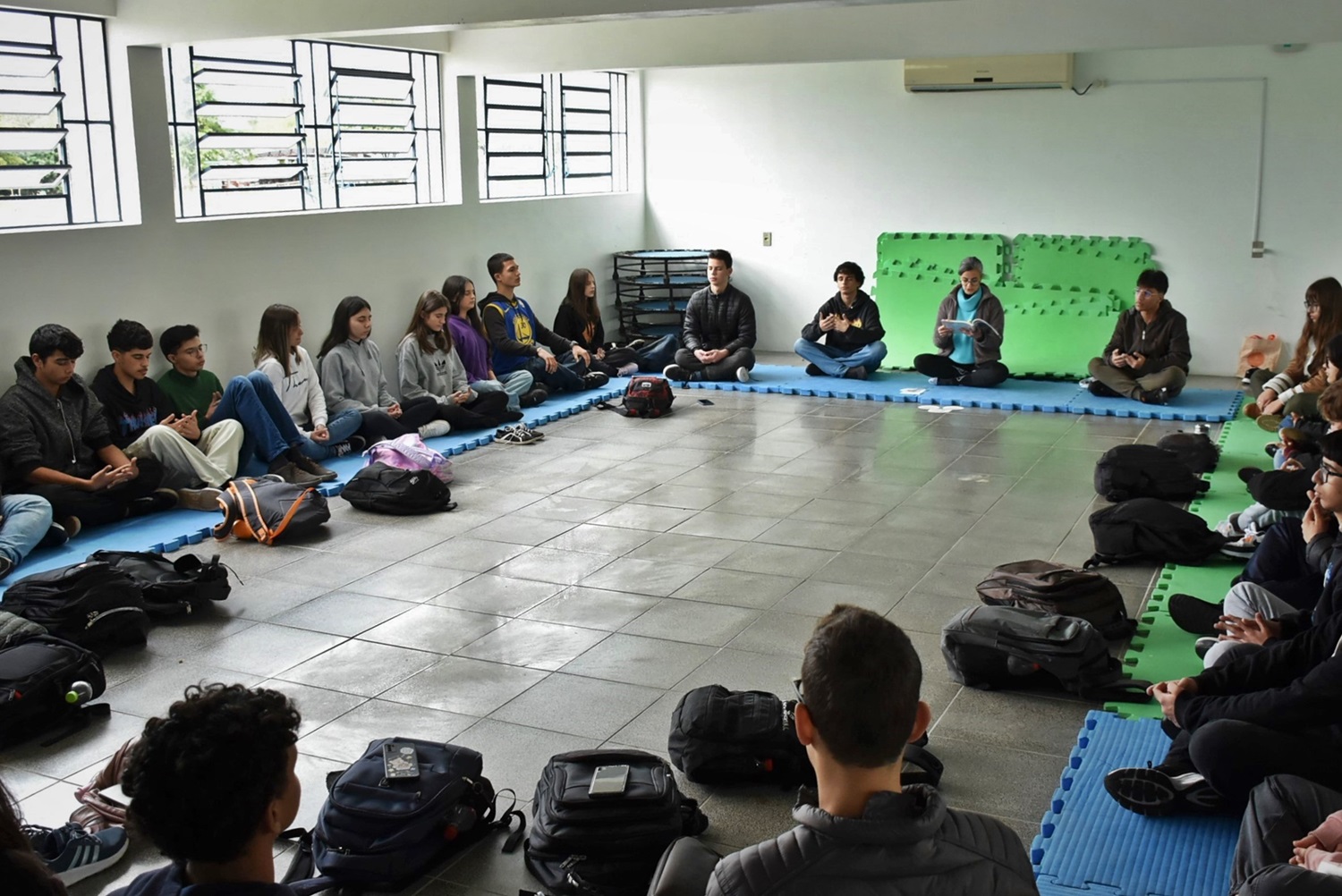 As iniciativas realizadas na instituição buscaram promover técnicas de bem-estar e de valorização da vida, apresentando diferentes formas de pensar e cuidar da saúde mental. Nesse contexto, foi oferecido às turmas dos 1º anos do Ensino Médio um “circuito de autocuidado”, com atividades de Yoga Nidra, Treino funcional, Mindfulness e Arteterapia.