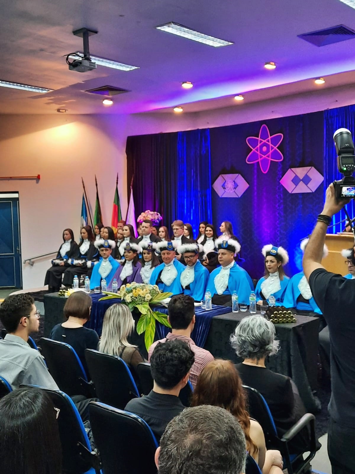Além dos(as) formandos(as), familiares e amigos, participaram da cerimônia Carlos Rodrigo Lehn, pró-reitor de Desenvolvimento Institucional e reitor substituto; diretor geral, Deivid Buttinger Dutra de Oliveira; diretor de Ensino, João Flávio Cogo de Carvalho; coordenadores/as dos cursos, professores/as paraninfos/as, patronos e patronesses das turmas, e demais homenageados.