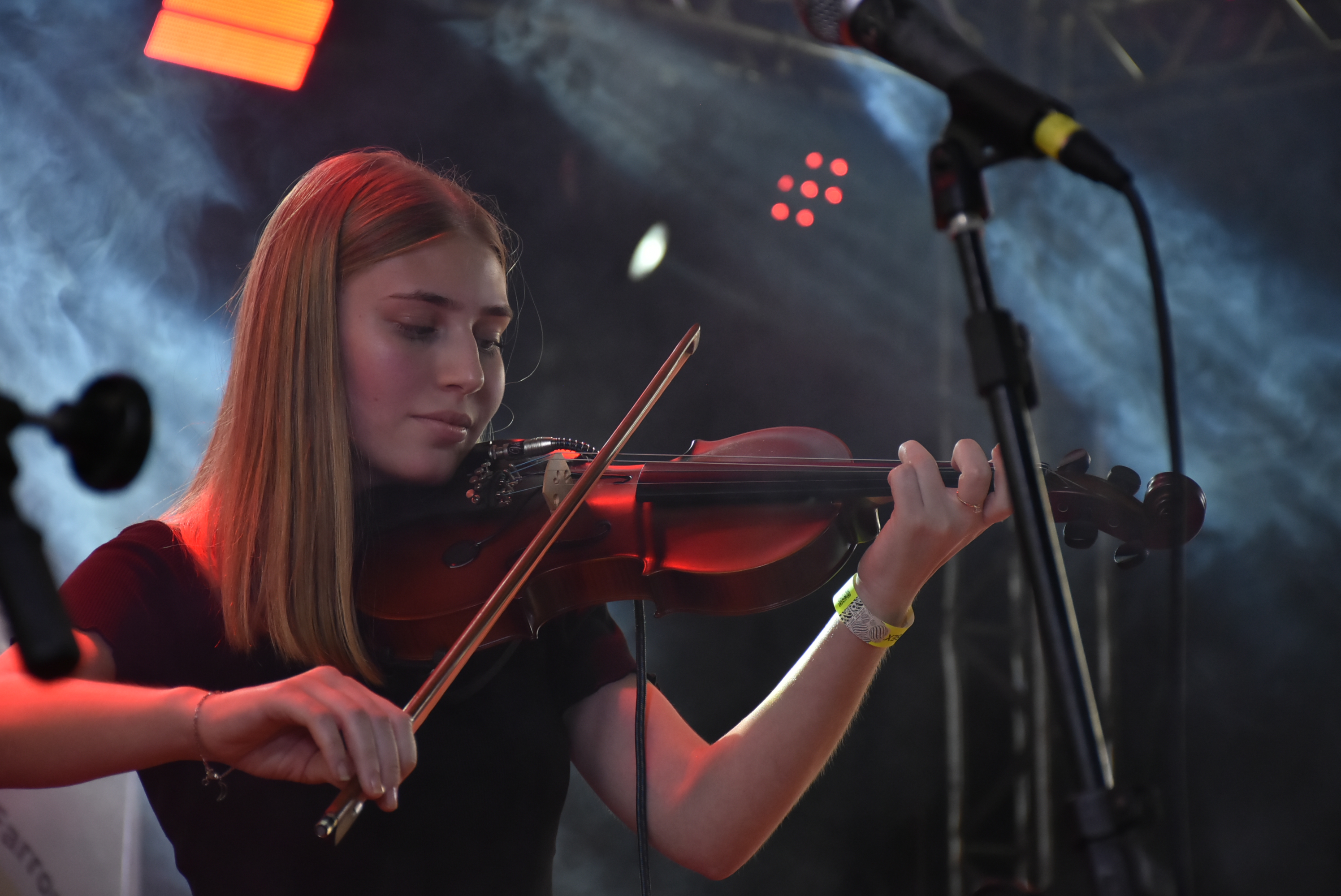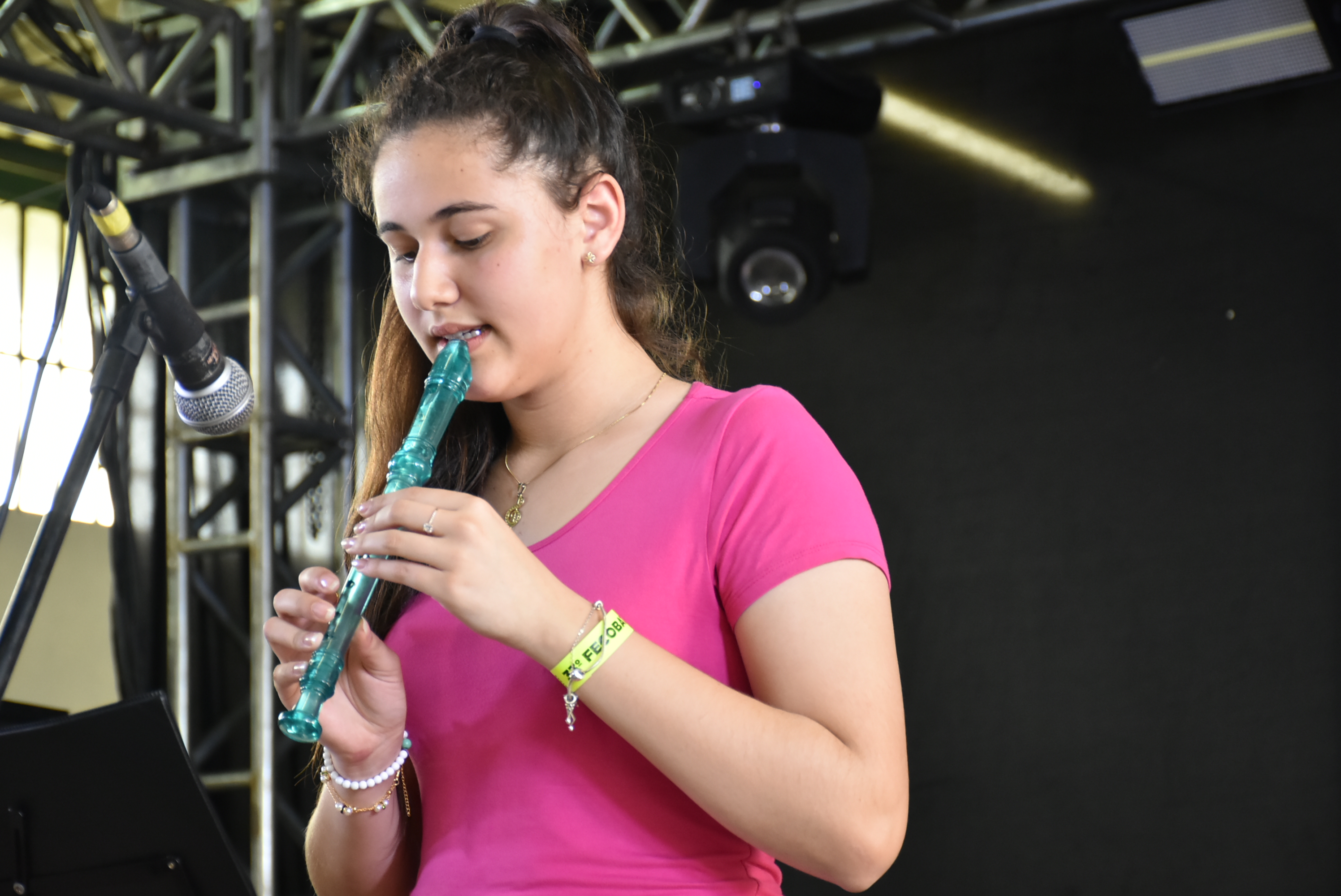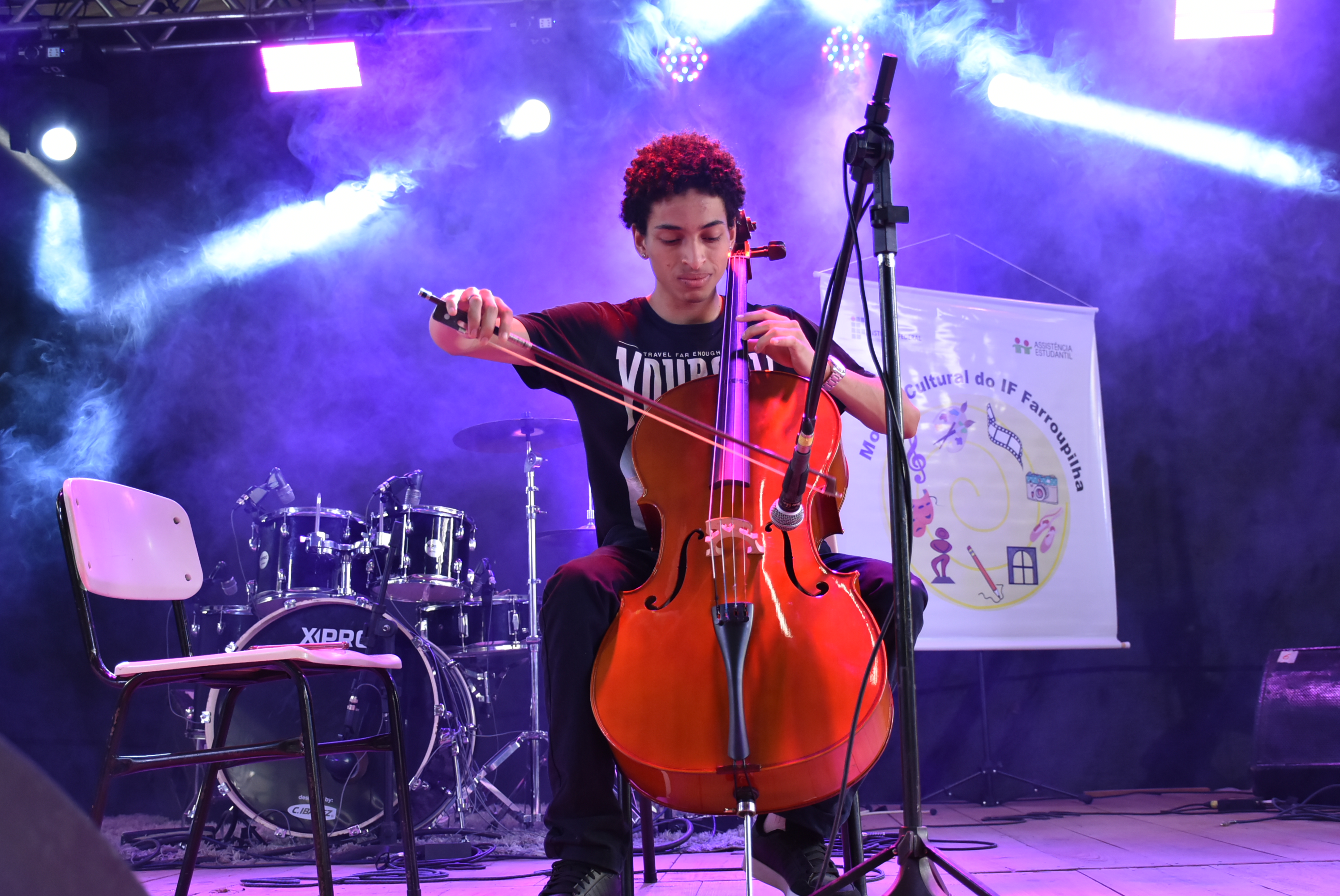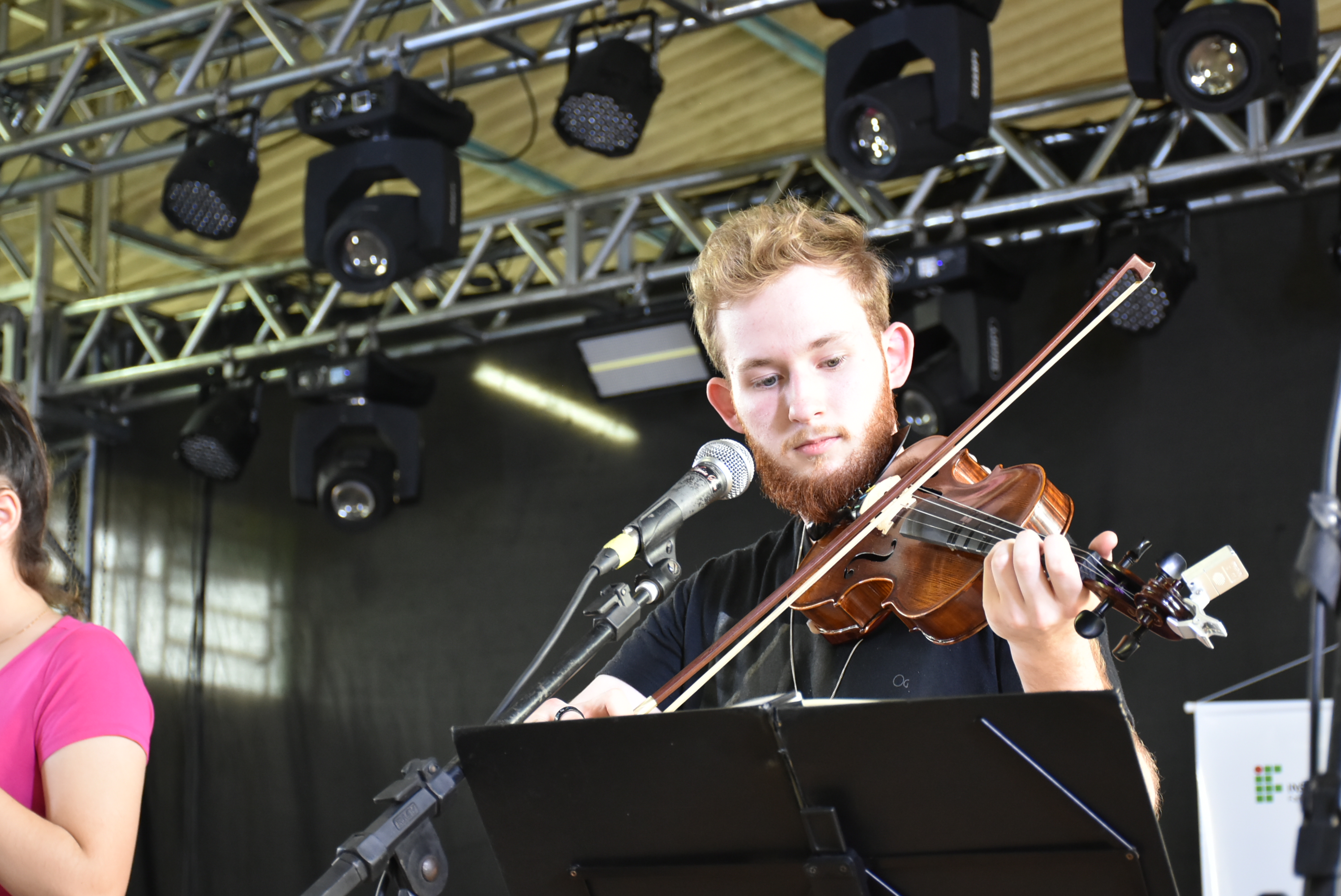 Foto: aluna do IFFar toca violino durante a XI Mostra Cultural no Campus São Vicente do Sul