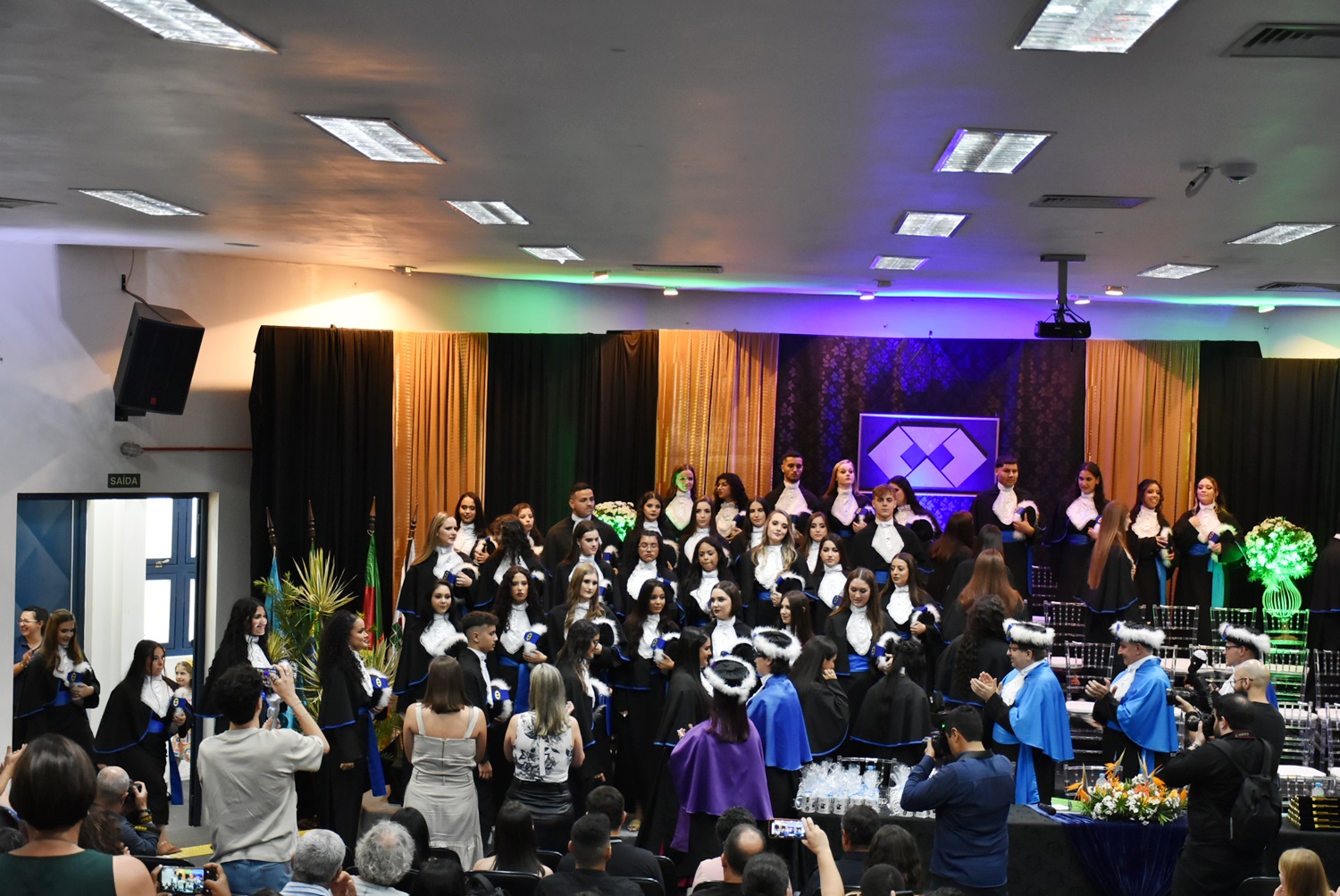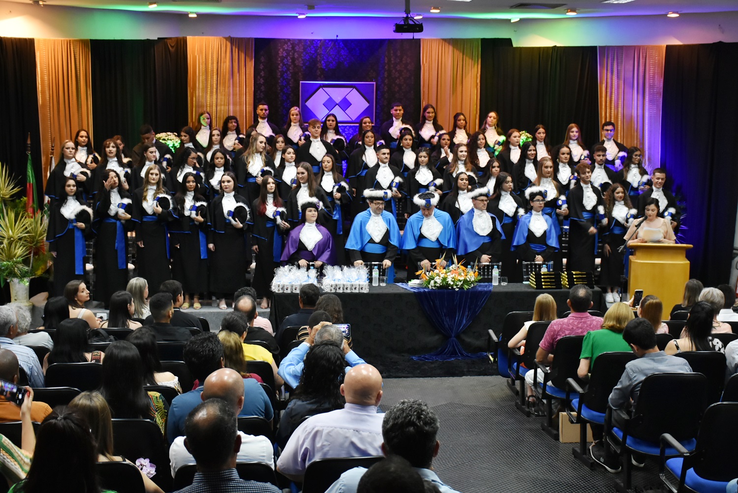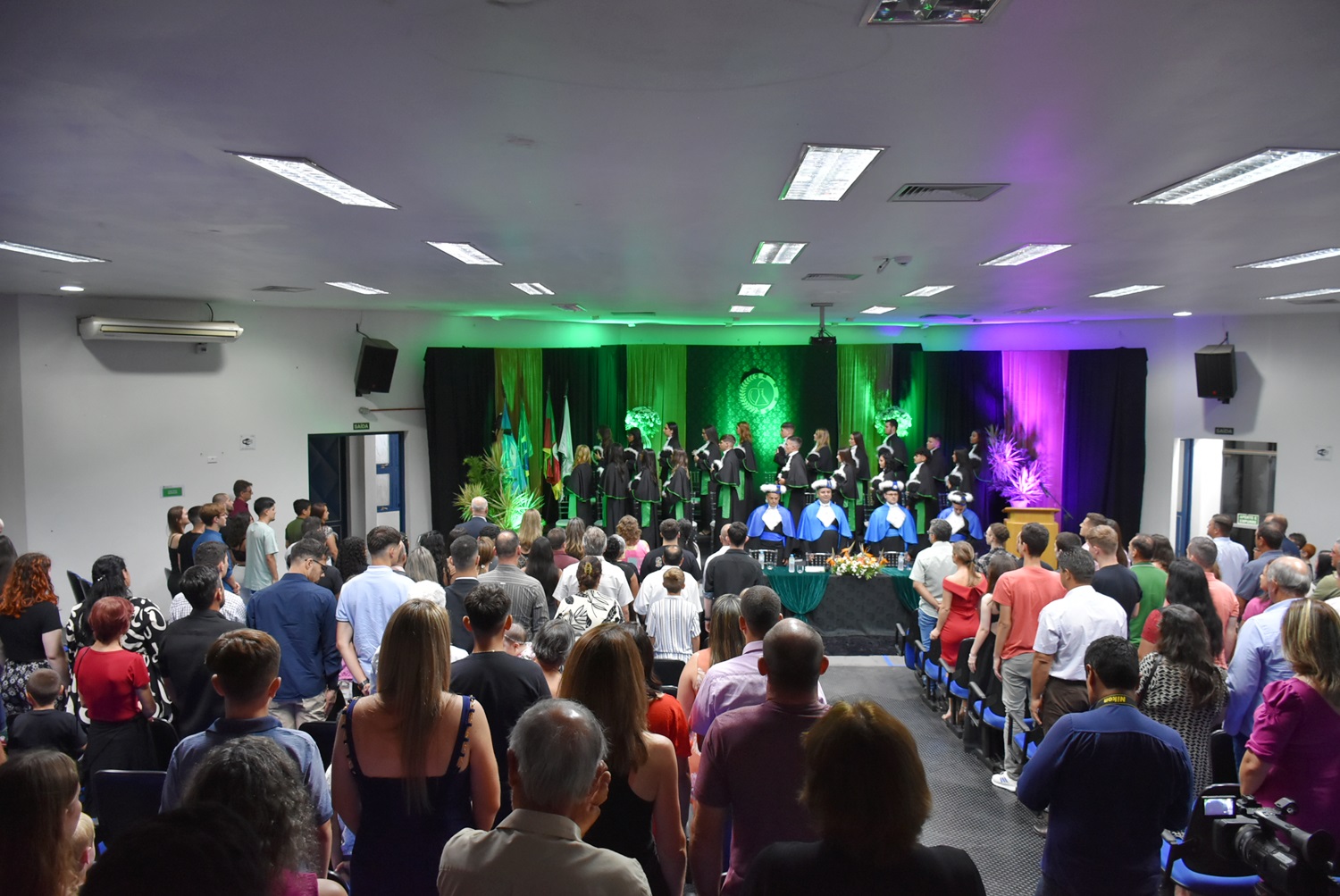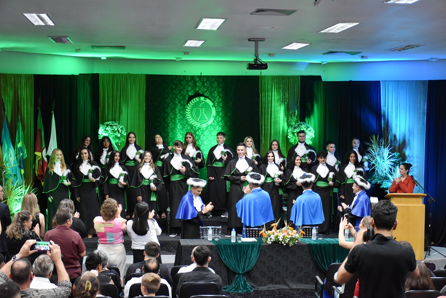 As solenidades ocorreram no Auditório Central da instituição e contaram com a participação do diretor geral, Deivid Buttinger Dutra de Oliveira; diretor de Ensino, João Flávio Cogo de Carvalho; do diretor de Planejamento e Desenvolvimento Institucional, Paulo Roberto Cecconi Deon; dos coordenadores de curso; professores/as homenageados/as, paraninfos/as, patronos e patronesses; além de formandos e formandas, seus amigos e familiares.