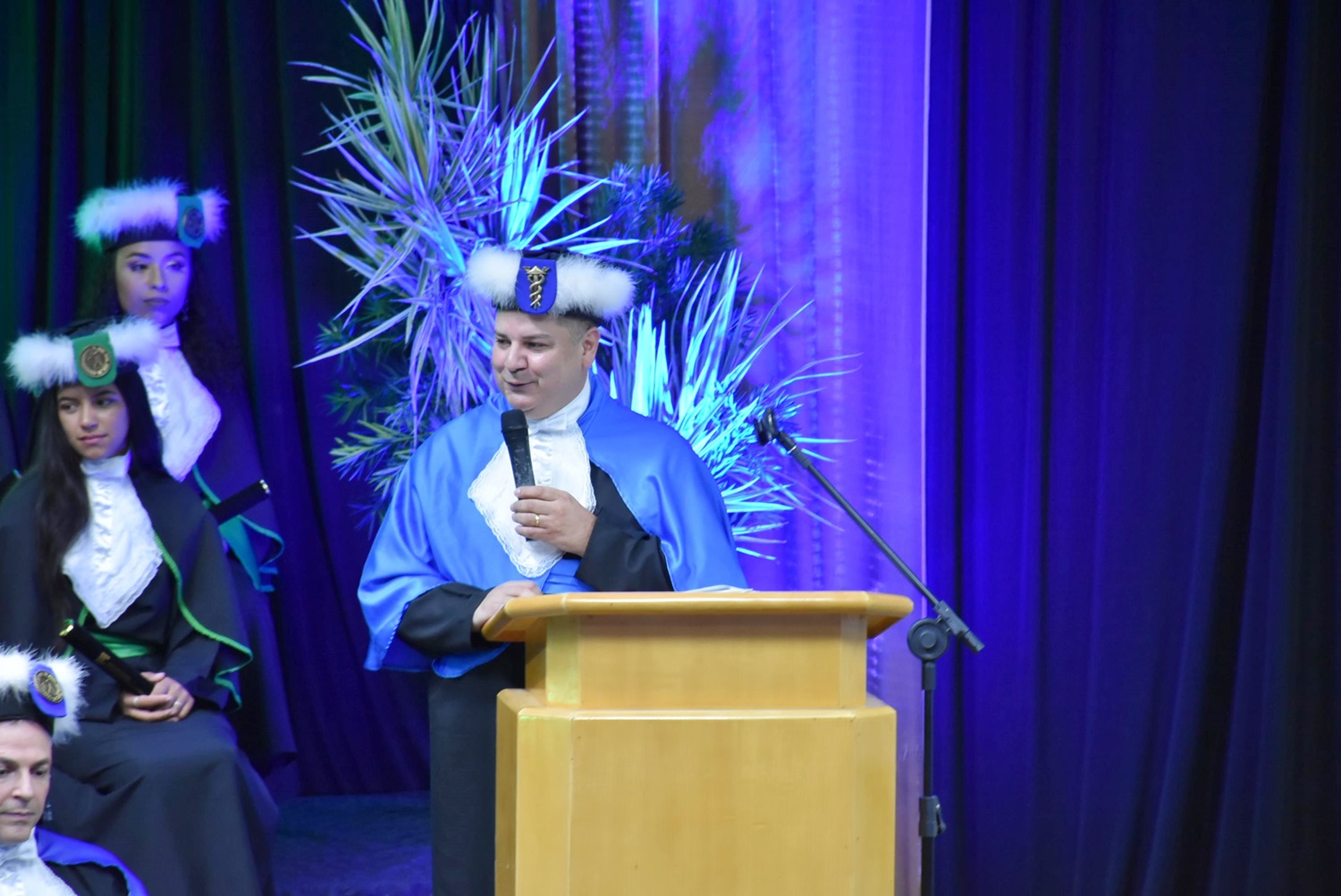 Na quinta-feira (21), a maratona de cerimônias foi finalizada com a diplomação de quatro turmas do Curso Técnico em Agropecuária. Na ocasião, durante discurso, prof. Deivid destacou a integralidade do ensino oferecido na instituição, que prima pela qualidade técnica e humana de seus egressos: “Nós somos excelentes formadores de profissionais, mas, além da questão técnica, nós buscamos o desenvolvimento humano como um todo dos jovens que aqui estão se compreendendo como integrantes da sociedade, do mundo e de uma comunidade”.