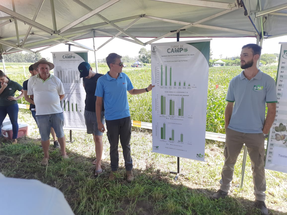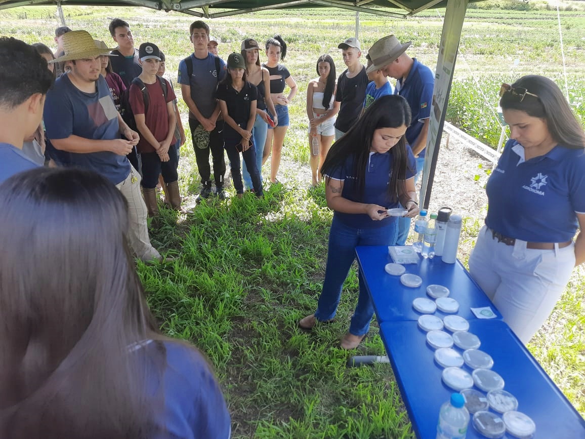 - Estação 2 - Manejo de plantas daninhas e doenças na cultura da soja: foi debatido o manejo preventivo de doenças e manejo químico de plantas daninhas no pré-plantio, pré-emergentes e pós-emergentes na cultura da soja;