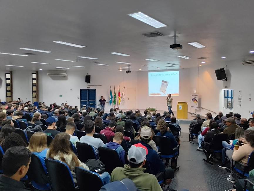 Na última quarta-feira, dia 4 de setembro, aconteceu no Campus São Vicente do Sul um evento voltado ao compartilhamento de estratégias para o combate do carrapato bovino, cuja infestação causa graves consequências à saúde dos animais e, assim, impactos negativos na produtividade do rebanho. A atividade aconteceu no auditório central da instituição, reunindo cerca de 350 pessoas, entre estudantes do Eixo de Recursos Naturais, produtores rurais e profissionais extensionistas da região.