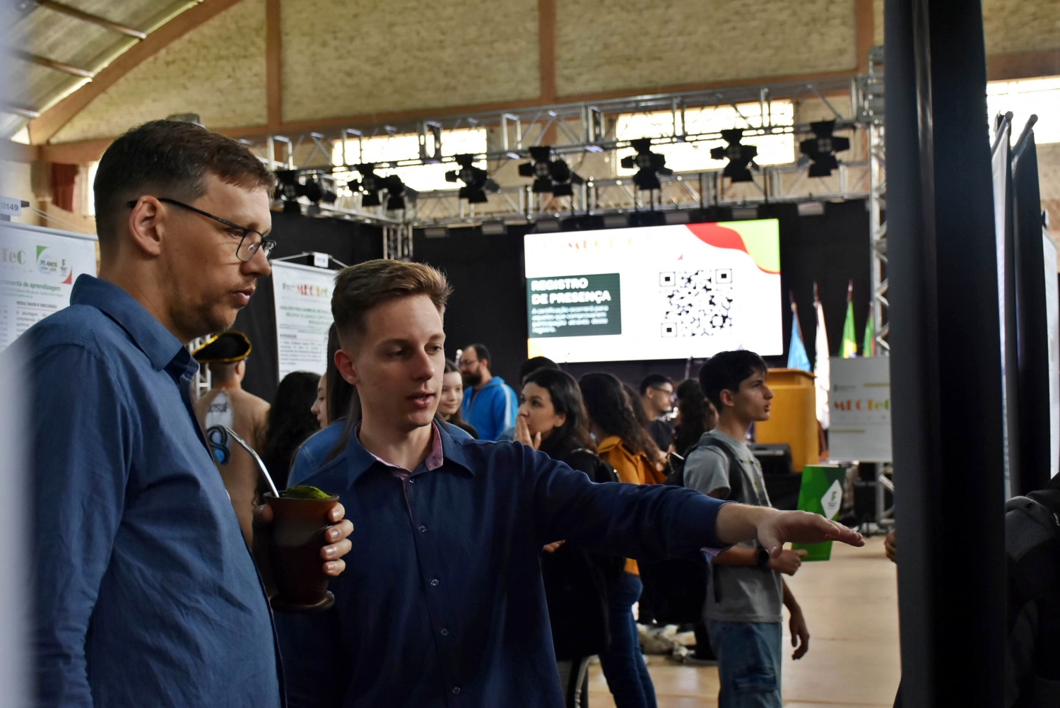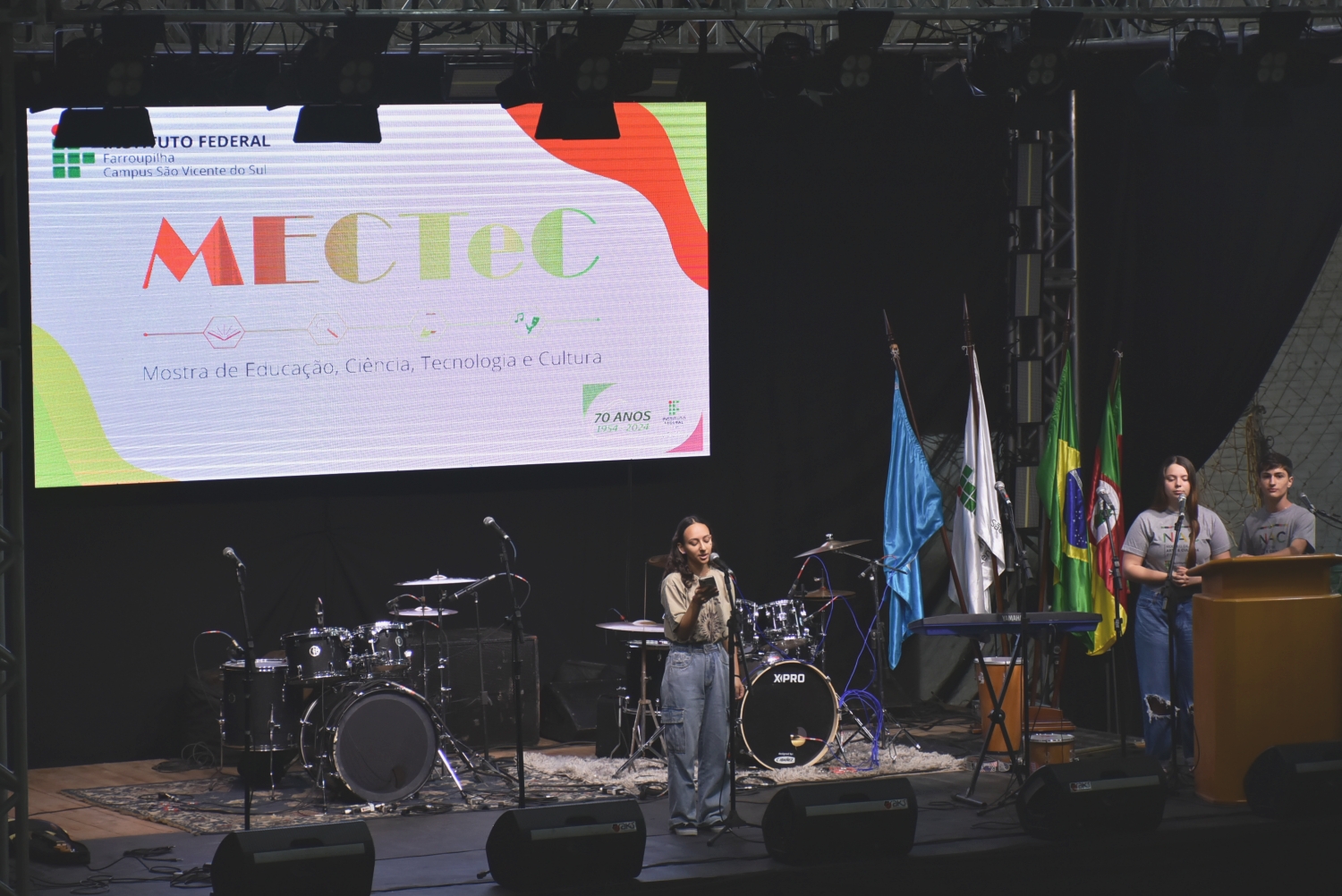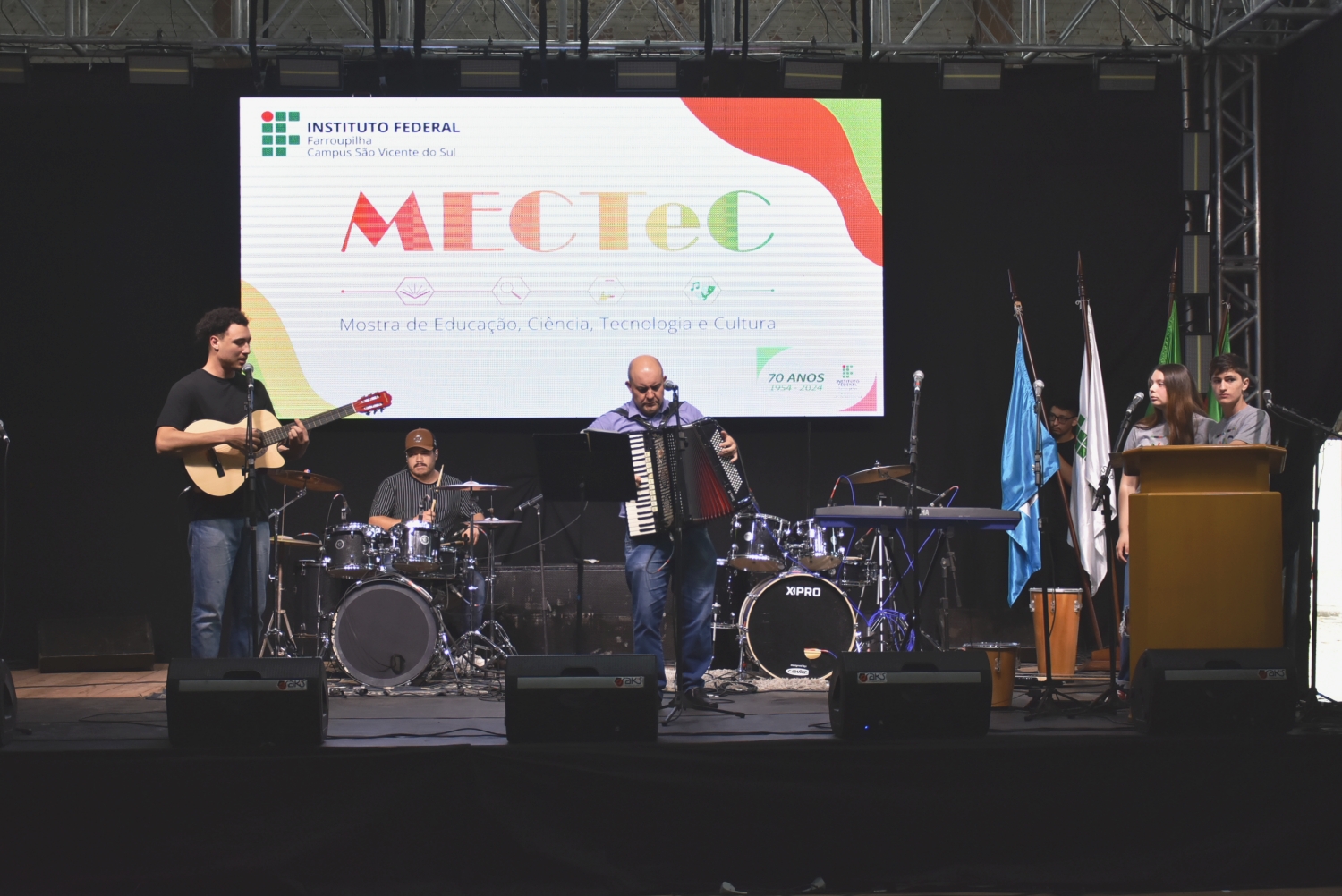 Na quarta-feira, 2 de outubro, o Campus São Vicente do Sul realizou mais uma edição da Mostra de Educação, Ciência, Tecnologia e Cultura (MECTeC), evento que promove a apreciação e o compartilhamento de ações de Ensino, Pesquisa e Extensão, além de arte e cultura. A Mostra de Banners e de Cultura ocorreram na parte da manhã e, à tarde, os participantes puderam visitar as atrações do Museu Itinerante de Ciência e Tecnologia da PUC.