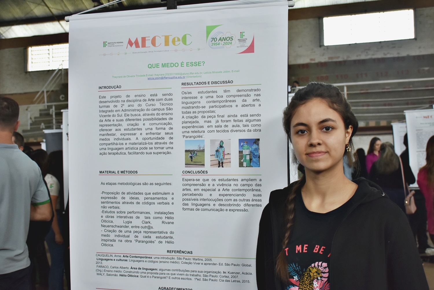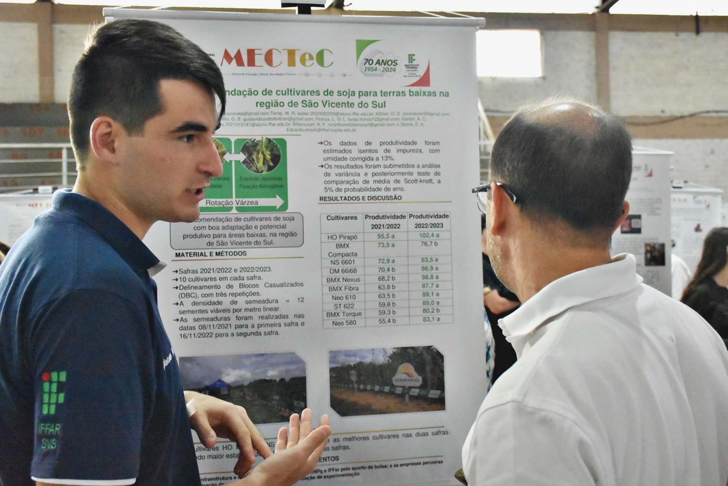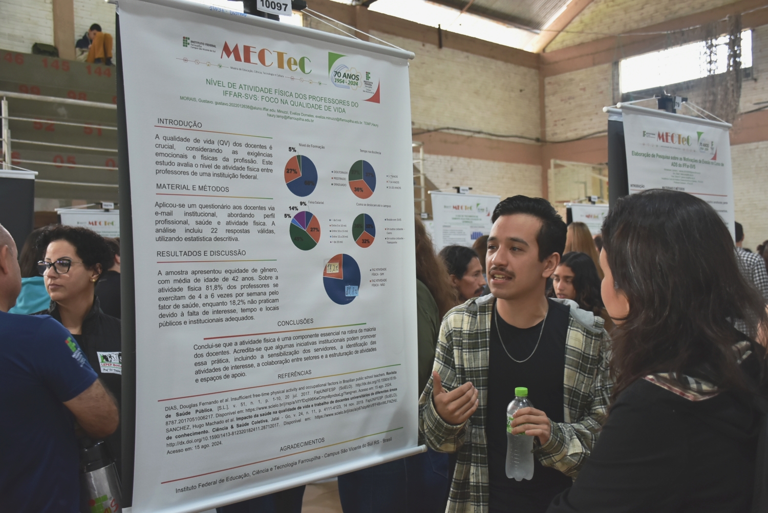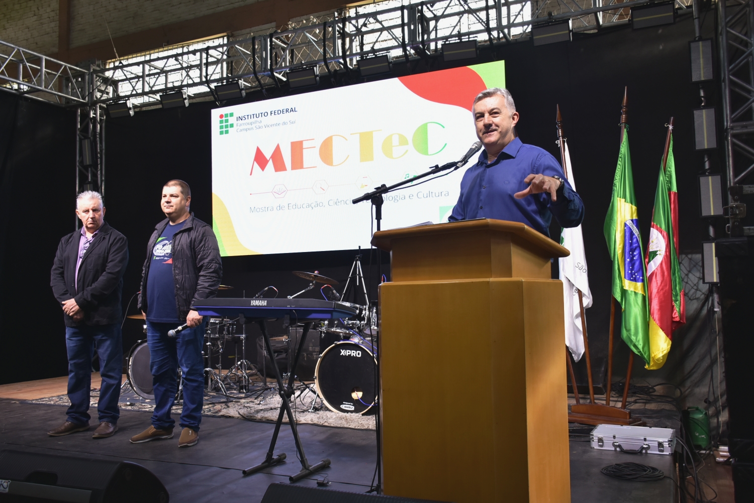 Na quarta-feira, 2 de outubro, o Campus São Vicente do Sul realizou mais uma edição da Mostra de Educação, Ciência, Tecnologia e Cultura (MECTeC), evento que promove a apreciação e o compartilhamento de ações de Ensino, Pesquisa e Extensão, além de arte e cultura. A Mostra de Banners e de Cultura ocorreram na parte da manhã e, à tarde, os participantes puderam visitar as atrações do Museu Itinerante de Ciência e Tecnologia da PUC.