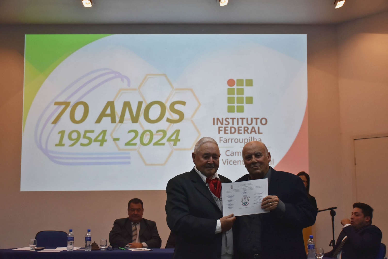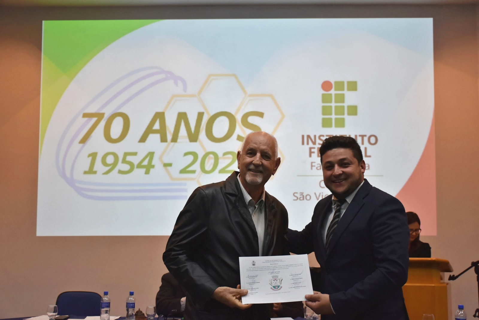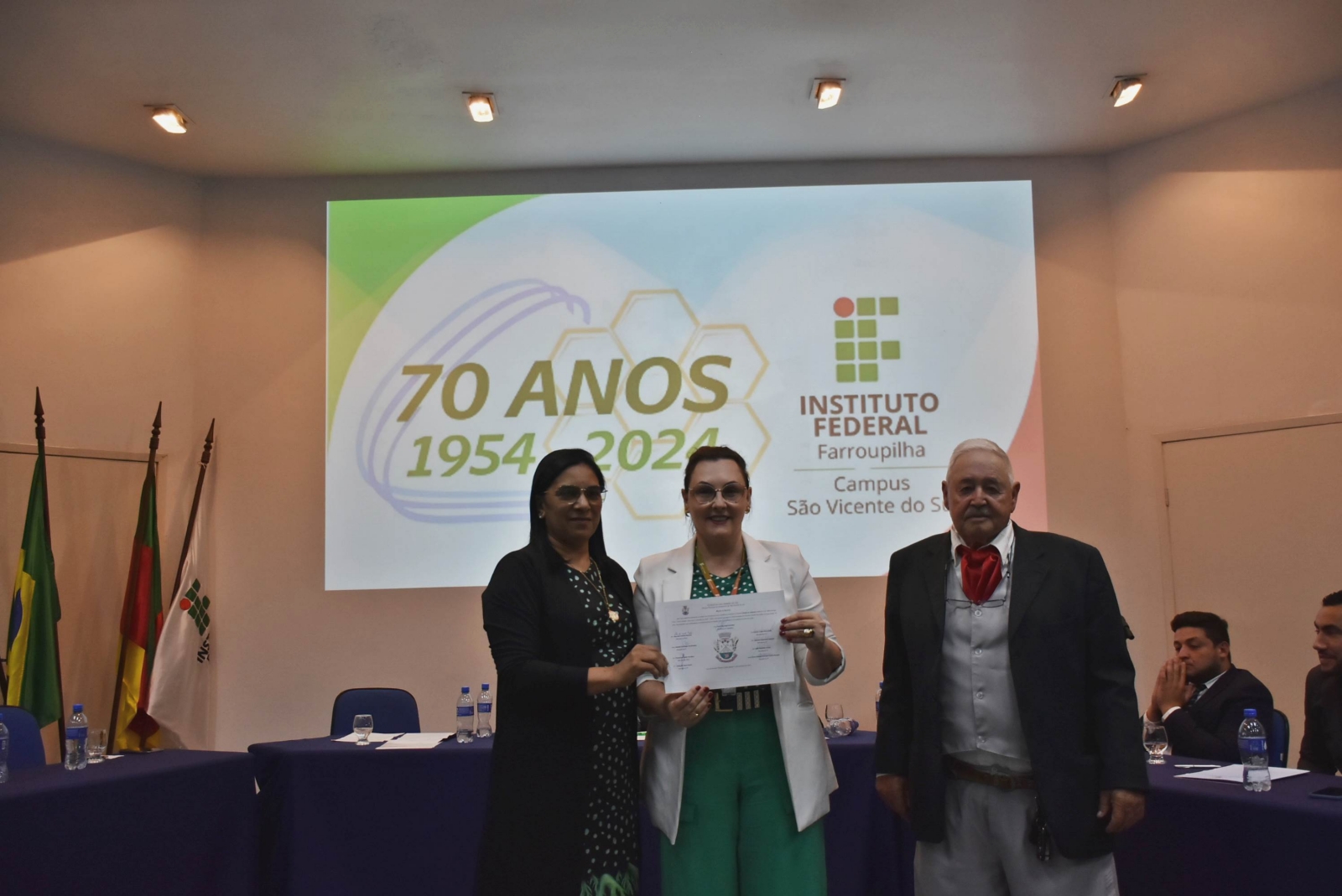 Na noite de 11 de novembro, ocorreu, no Auditório Central, Sessão Solene da Câmara Municipal de Vereadores em homenagem aos 70 anos do Instituto Federal de Educação, Ciência e Tecnologia Farroupilha (IFFar) - Campus São Vicente do Sul. A cerimônia reuniu autoridades locais, servidores e estudantes, além de membros da comunidade.