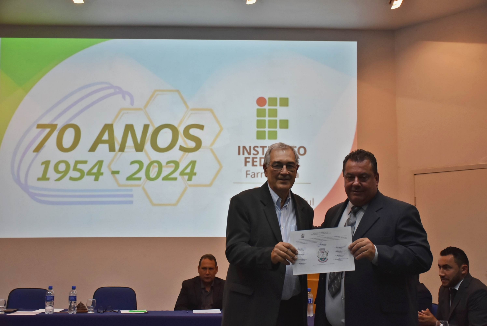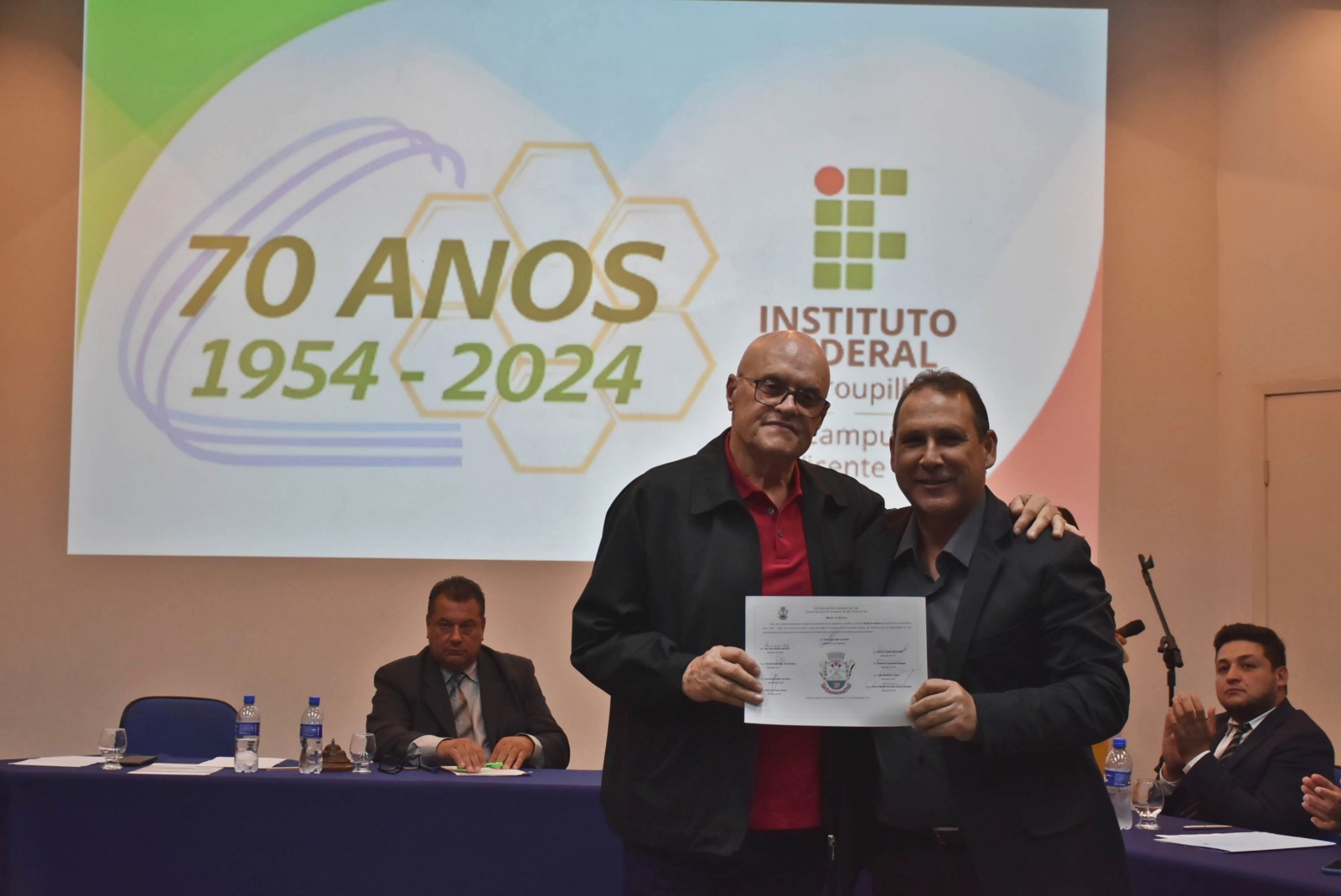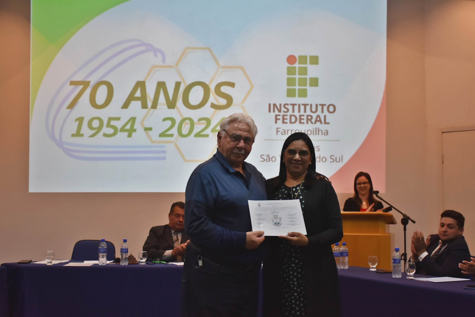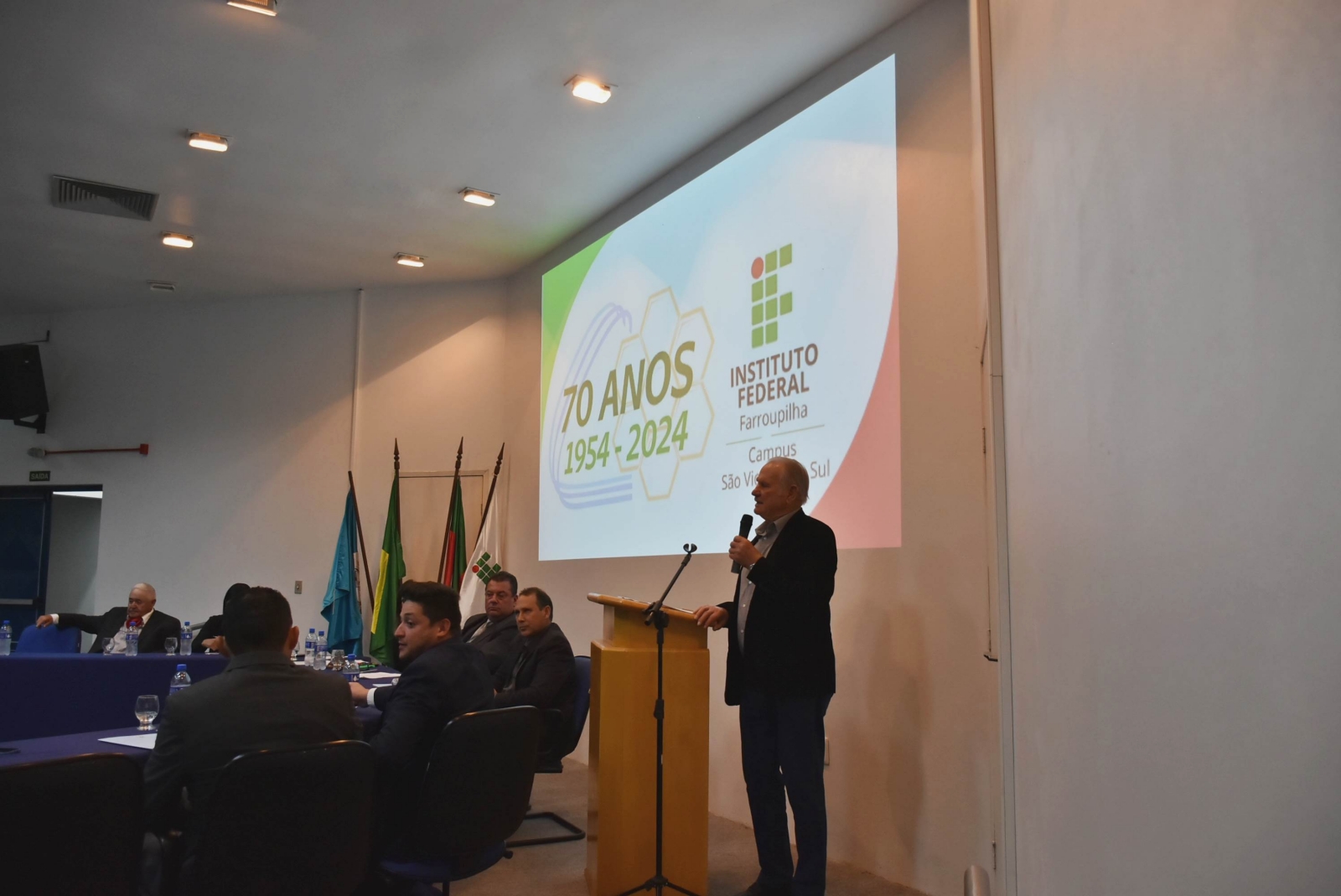 Na noite de 11 de novembro, ocorreu, no Auditório Central, Sessão Solene da Câmara Municipal de Vereadores em homenagem aos 70 anos do Instituto Federal de Educação, Ciência e Tecnologia Farroupilha (IFFar) - Campus São Vicente do Sul. A cerimônia reuniu autoridades locais, servidores e estudantes, além de membros da comunidade.