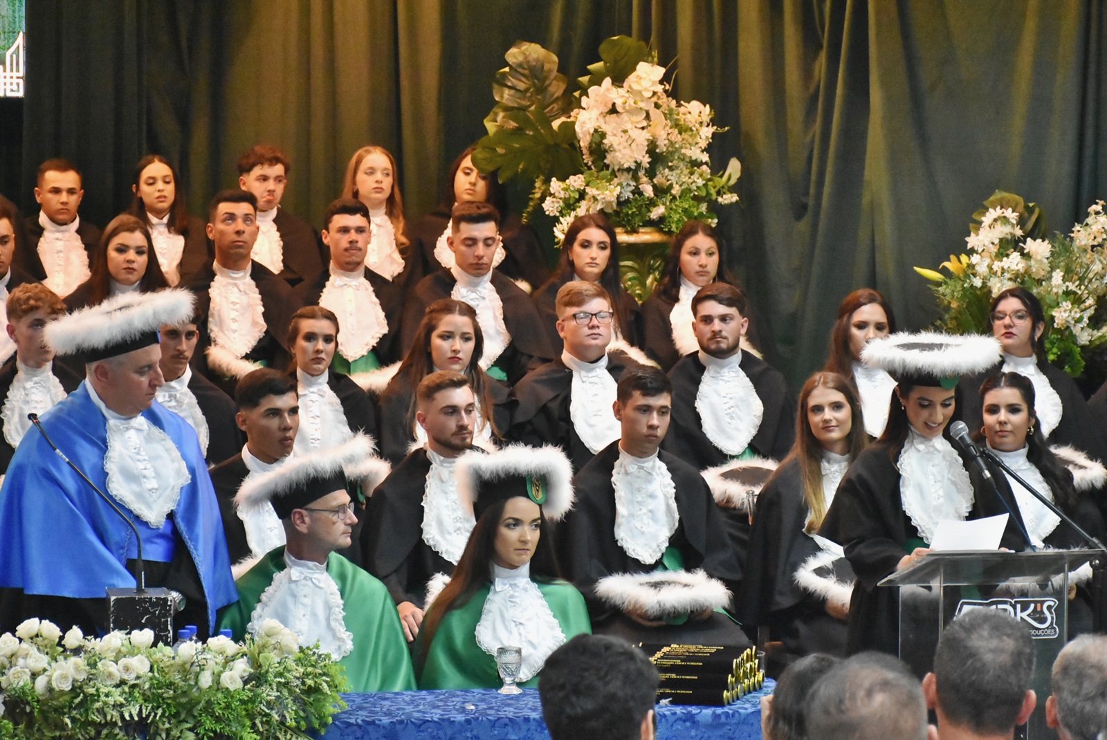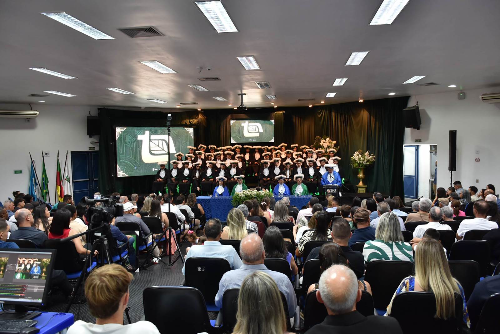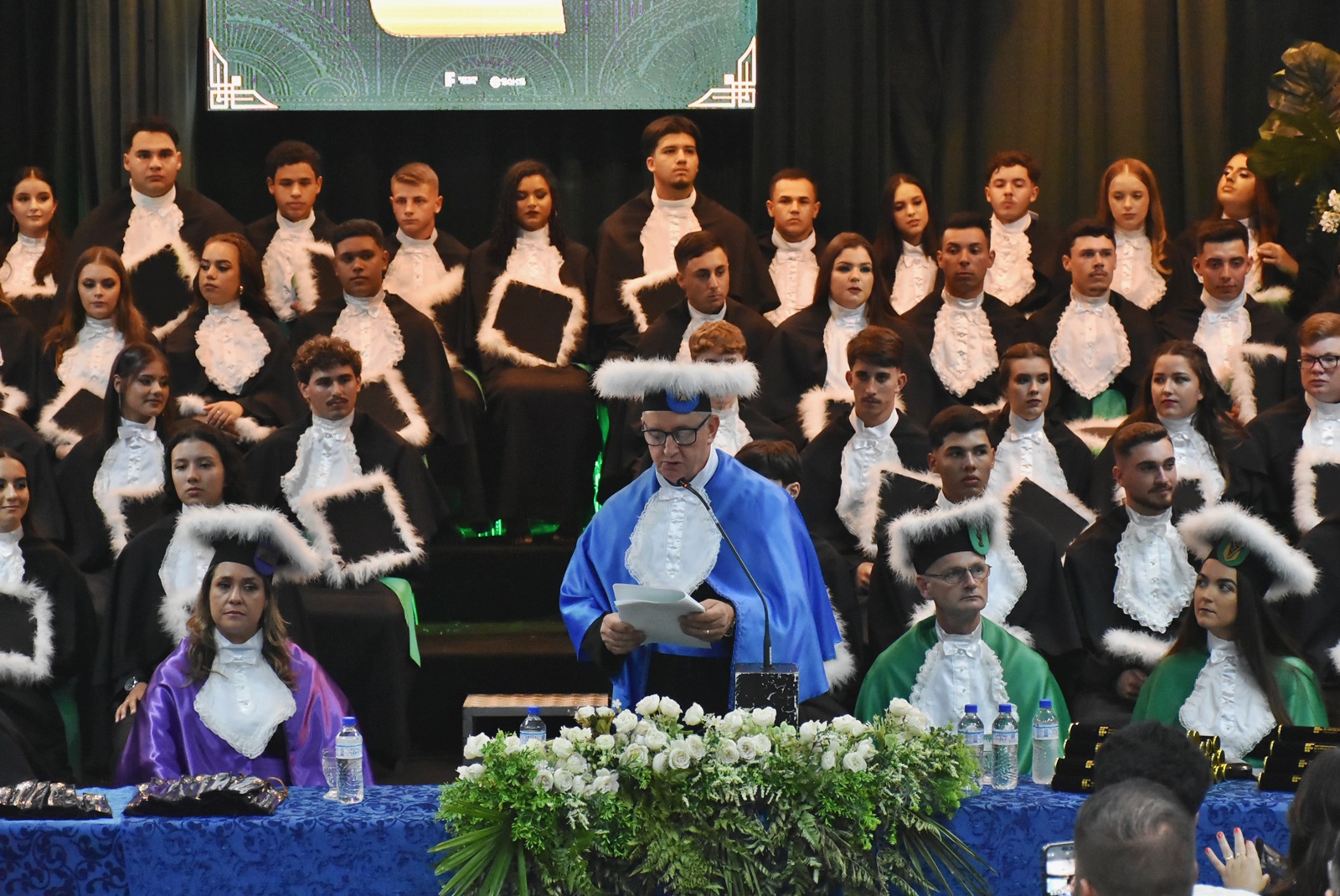 As solenidades ocorreram no Auditório Central da instituição e contaram com a participação do diretor geral, Deivid Buttinger Dutra de Oliveira; e do diretor de Ensino, João Flávio Cogo de Carvalho, na presidência das mesas; dos coordenadores de curso; professores/as homenageados/as, paraninfos/as, patronos e patronesses; além de formandos e formandas, seus amigos e familiares.