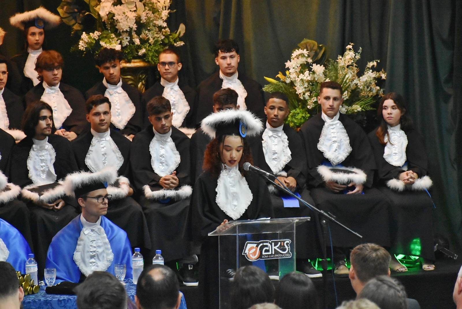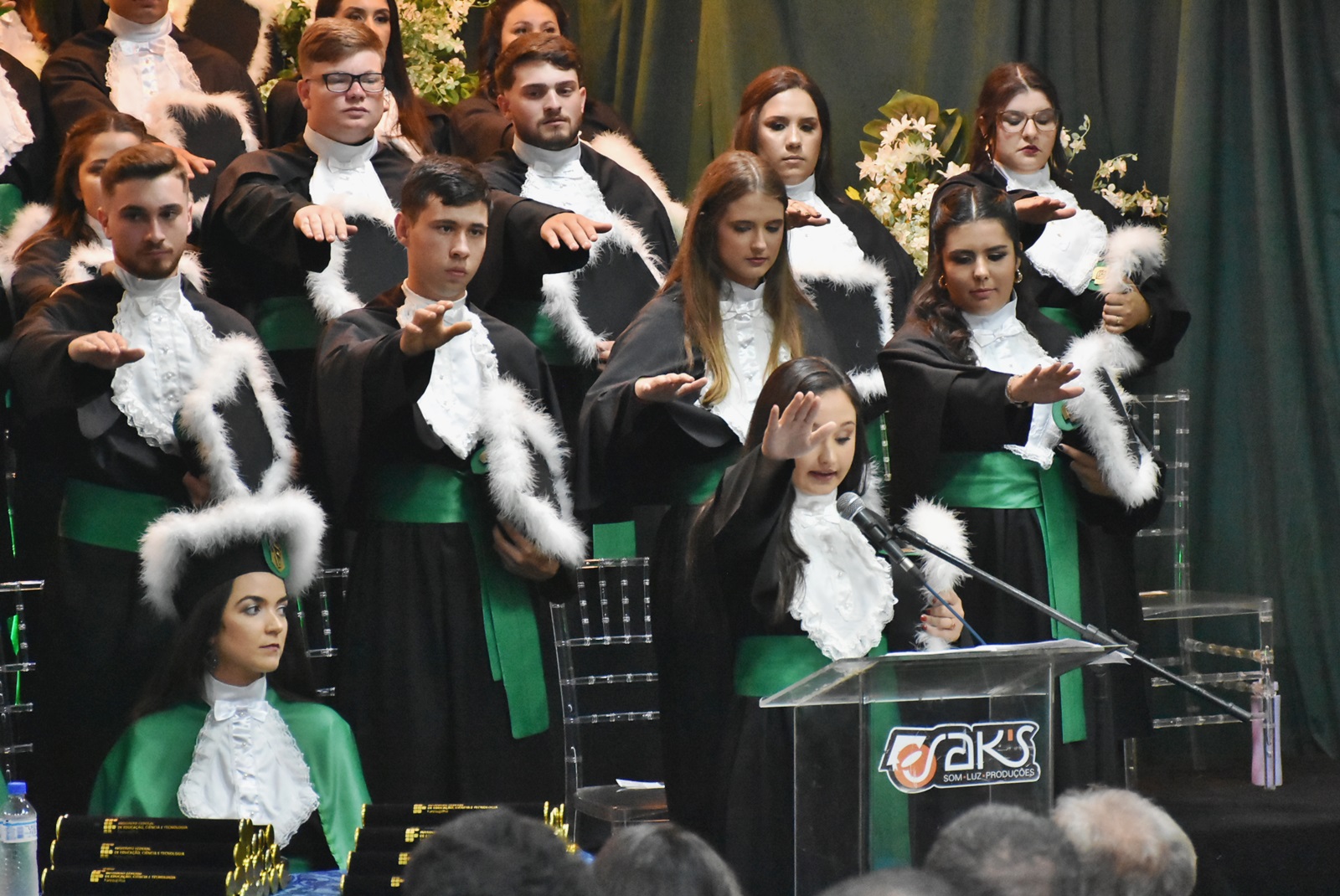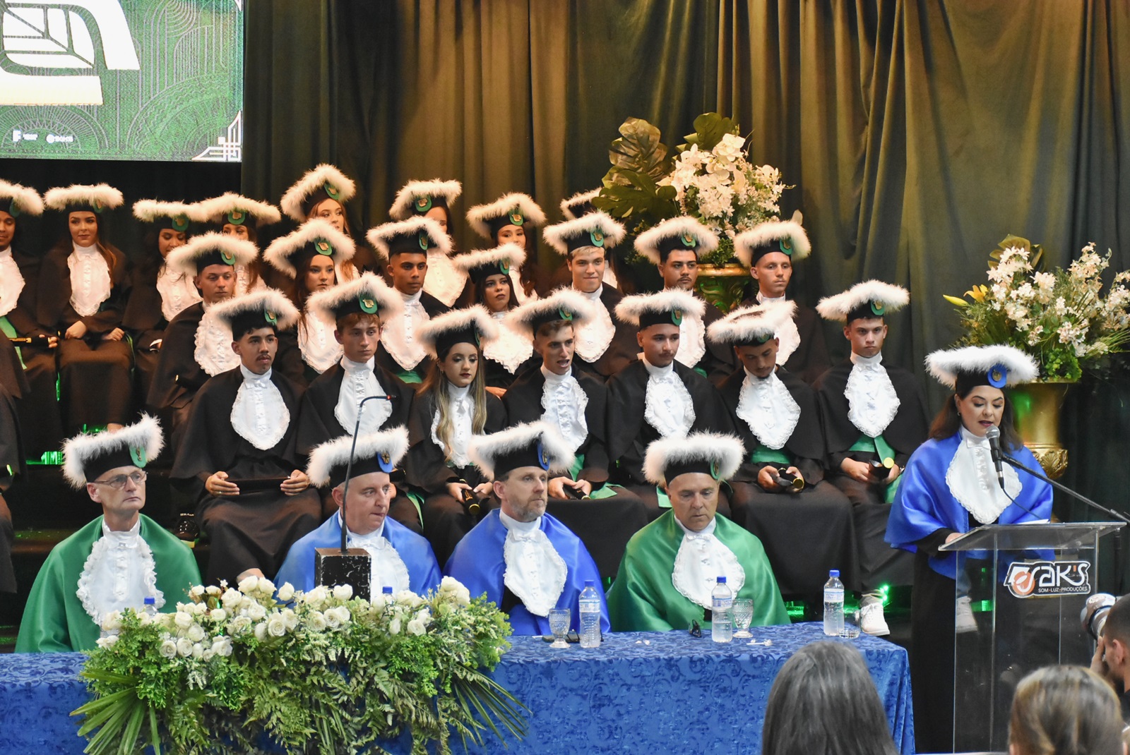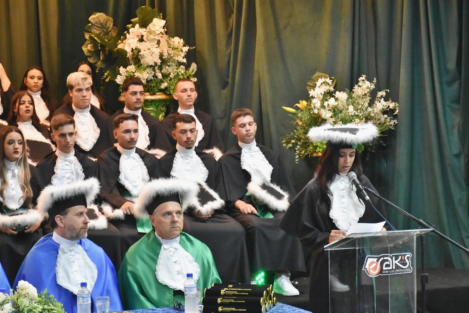 As solenidades ocorreram no Auditório Central da instituição e contaram com a participação do diretor geral, Deivid Buttinger Dutra de Oliveira; e do diretor de Ensino, João Flávio Cogo de Carvalho, na presidência das mesas; dos coordenadores de curso; professores/as homenageados/as, paraninfos/as, patronos e patronesses; além de formandos e formandas, seus amigos e familiares.