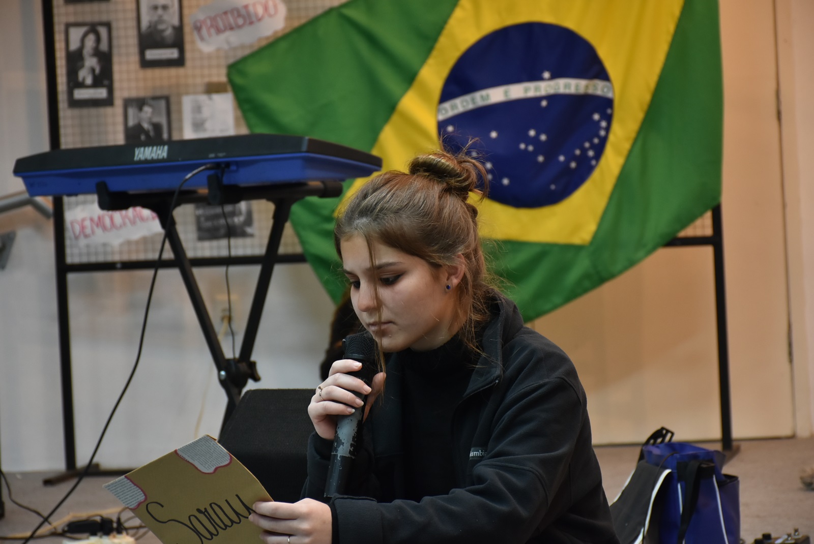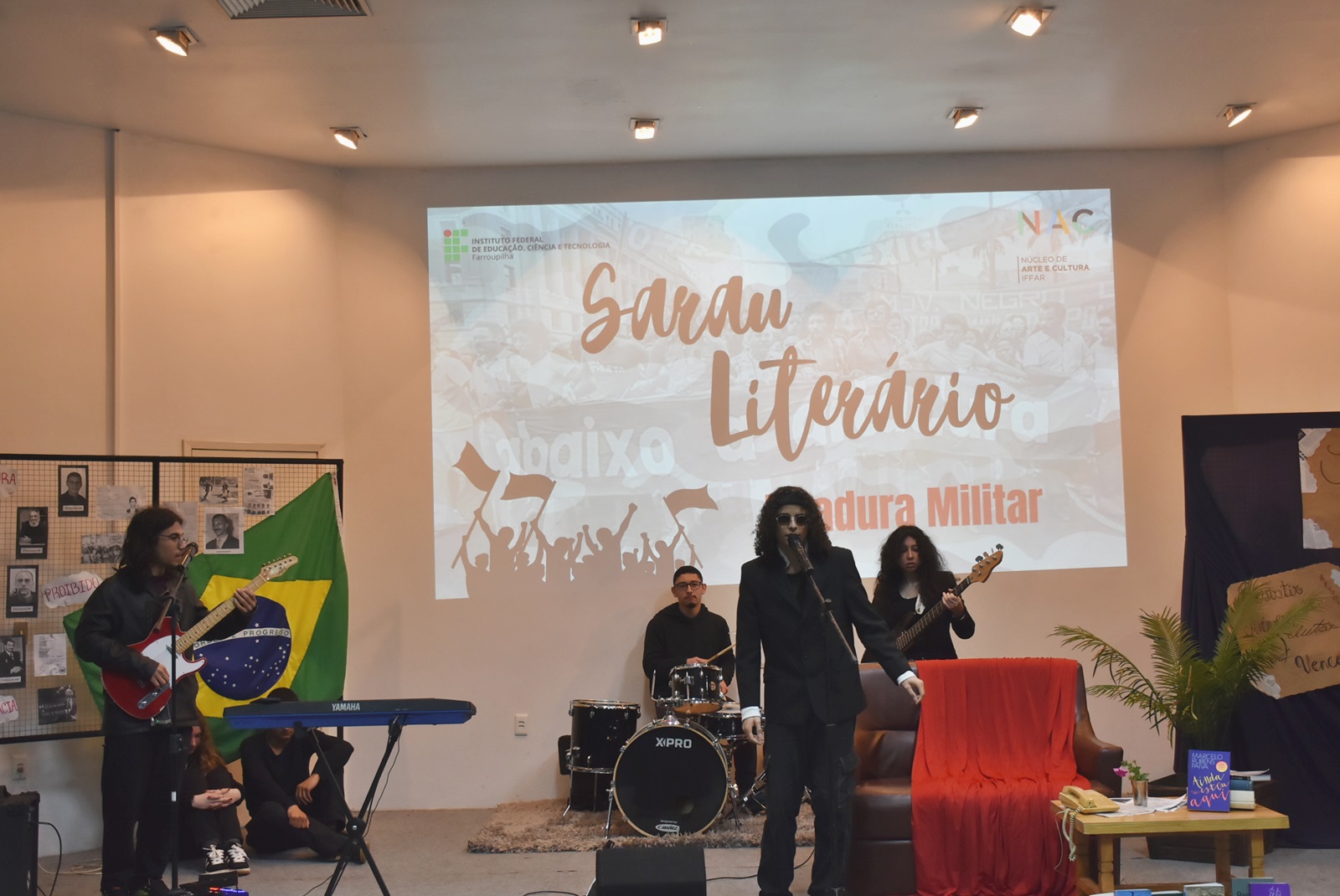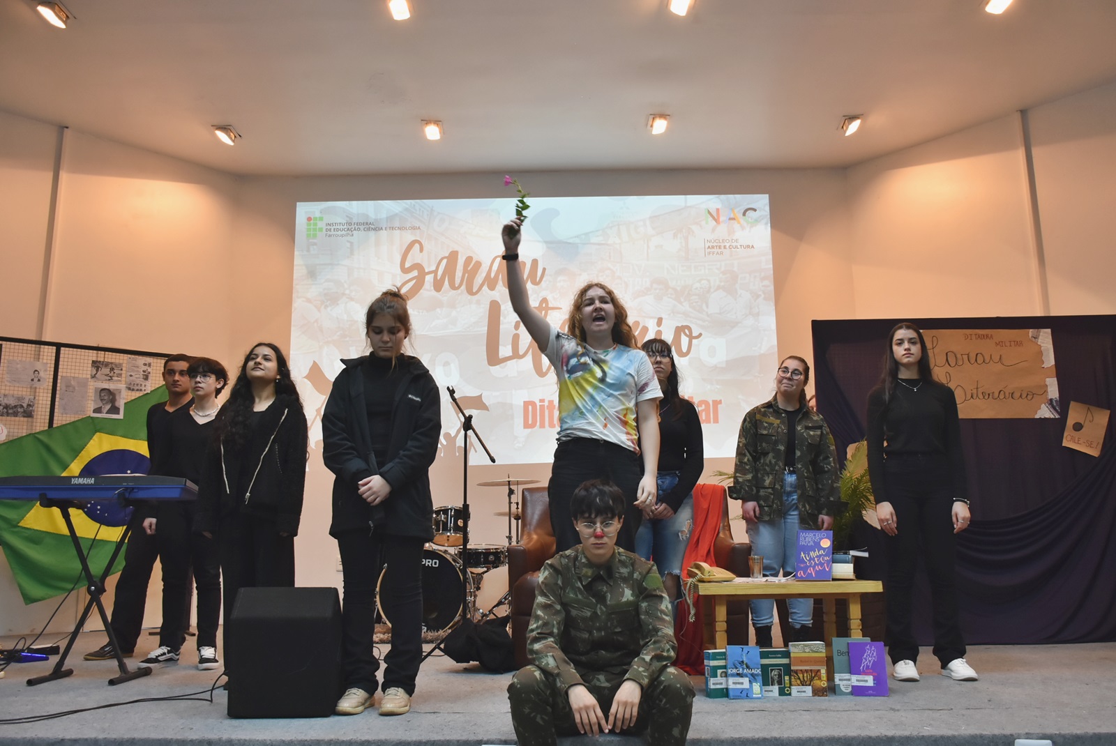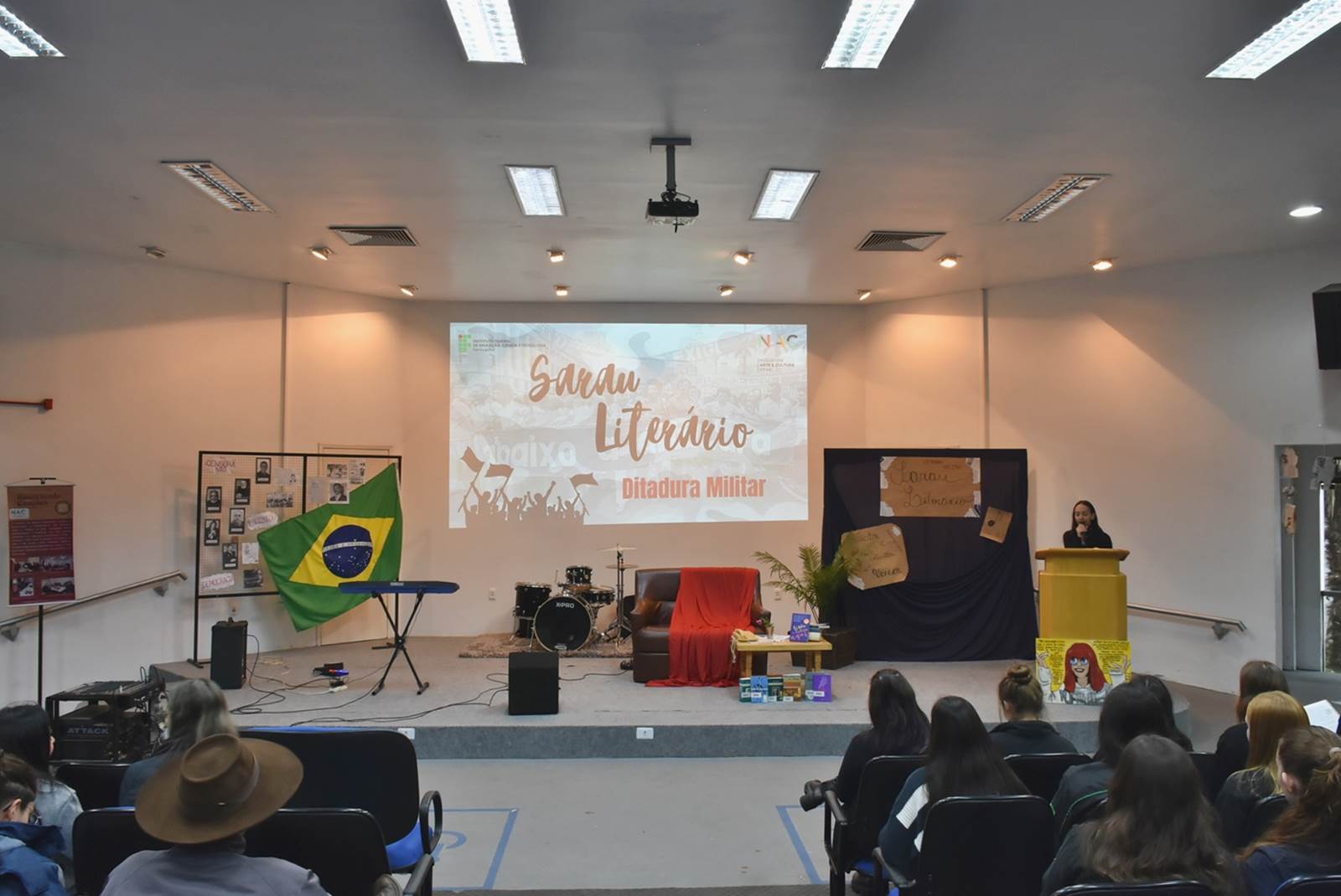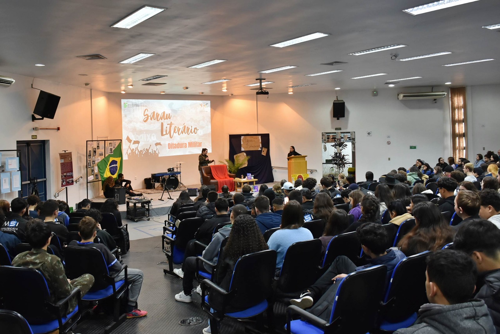 Já no dia 20 de agosto, ocorreu mais uma edição do Sarau Literário, que este ano destacou a leitura e a declamação de poemas e textos literários relacionados à Ditadura Militar. Os materiais foram trabalhados com os estudantes em parceria com o projeto de ensino “Historiando Canções”, utilizando o repositório do Memorial Poético dos Anos de Chumbo. Também houve um espaço dedicado à leitura de poesias autorais, incentivando a escrita e a expressão pessoal dos estudantes.