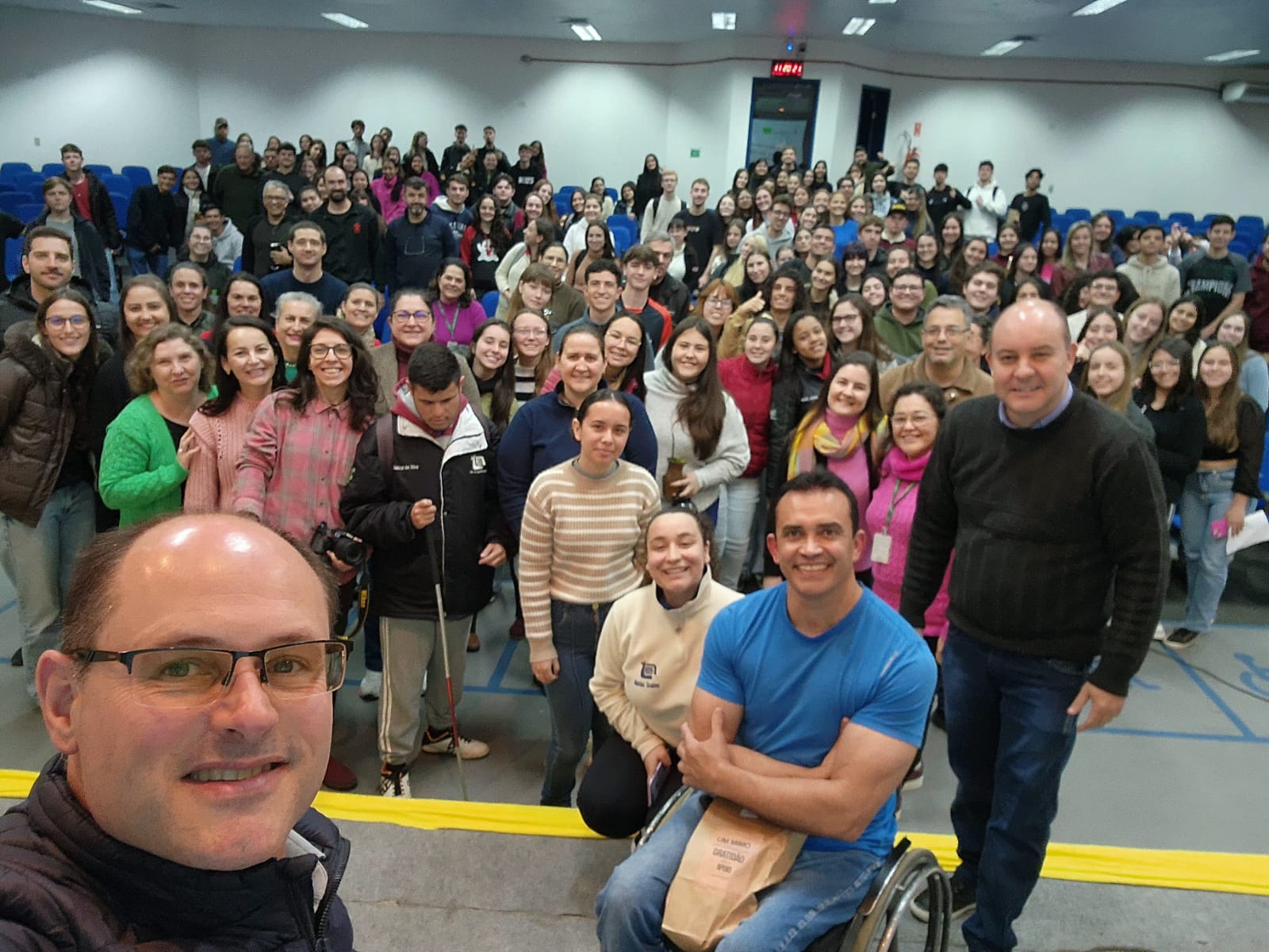 Em sua fala, Denilson utilizou sua própria trajetória como ponto de partida para estimular reflexões sobre a importância da prática esportiva e do cuidado com a saúde física e mental. De forma inspiradora, incentivou os estudantes a acreditar no próprio potencial, reforçando que todos são capazes de superar desafios e alcançar objetivos, independentemente das limitações que enfrentem.