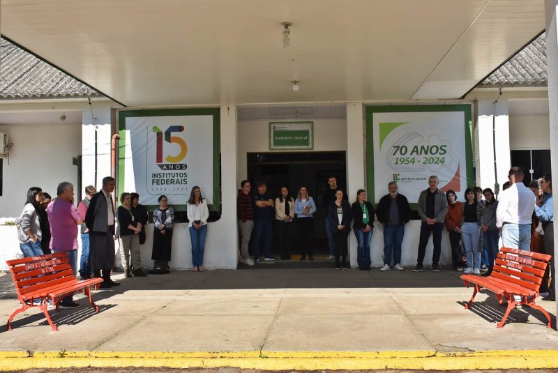No dia 16 de setembro, o Instituto Federal Farroupilha – Campus São Vicente do Sul realizou a inauguração de dois Bancos Vermelhos, localizados na entrada do auditório central da instituição, como símbolo de conscientização e de enfrentamento à violência contra as mulheres.