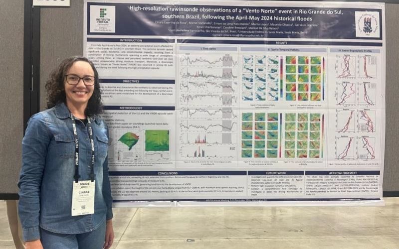Na UCSB, discutiram com a professora do Departamento de Geografia da instituição Leila Carvalho e sua equipe a realização da campanha experimental do Vento Norte de 2025, além de compararem o fenômeno gaúcho com os ventos Sundowners (“ventos do pôr do sol”, em tradução livre, assim chamados por ocorrerem com mais intensidade no fim da tarde), característicos da Califórnia. Já no congresso em Washington, apresentaram trabalhos sobre observações de alta resolução e simulações do Vento Norte, ampliando a visibilidade do IFFar e da UFSM em pesquisas sobre meteorologia e mudanças climáticas.